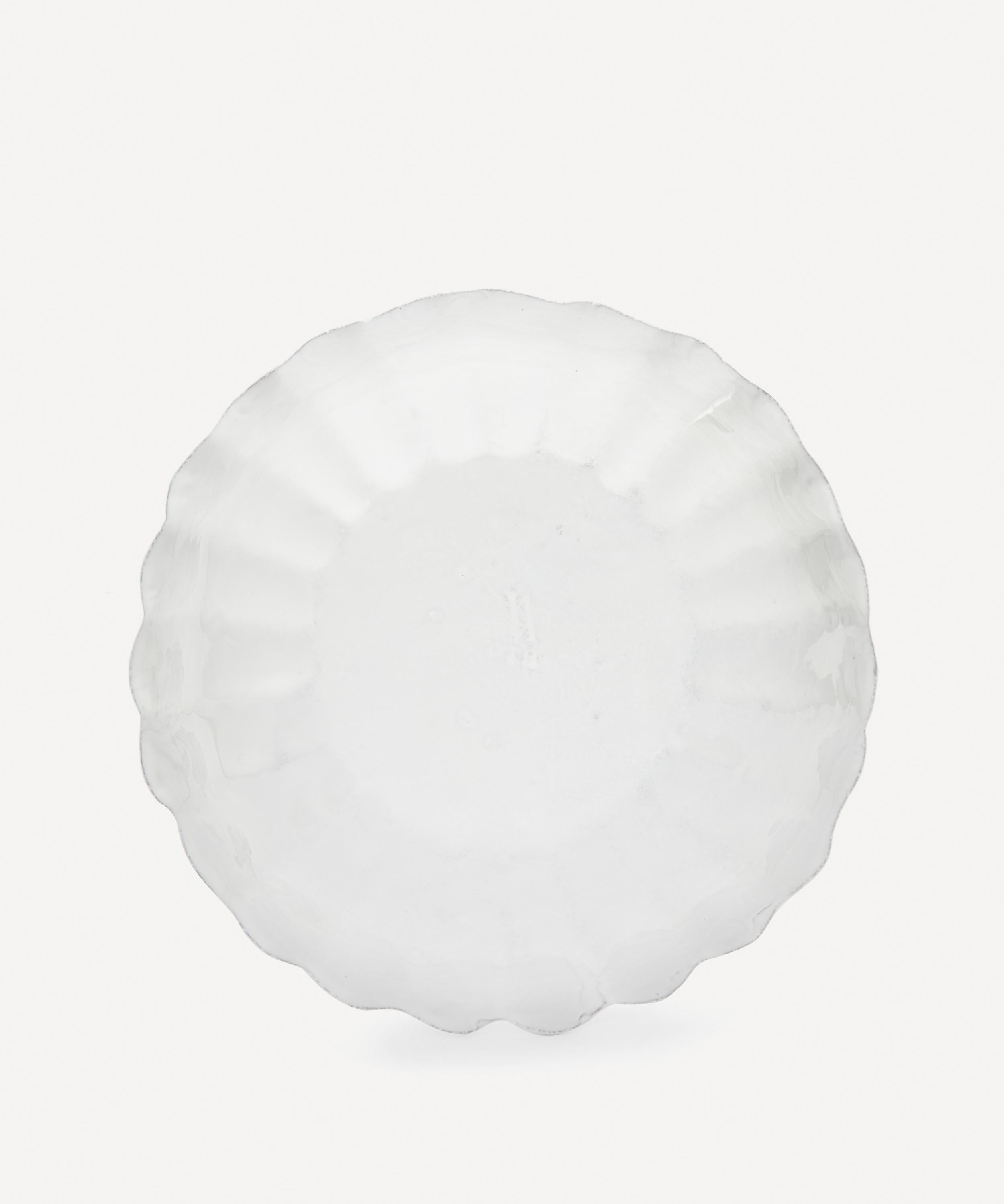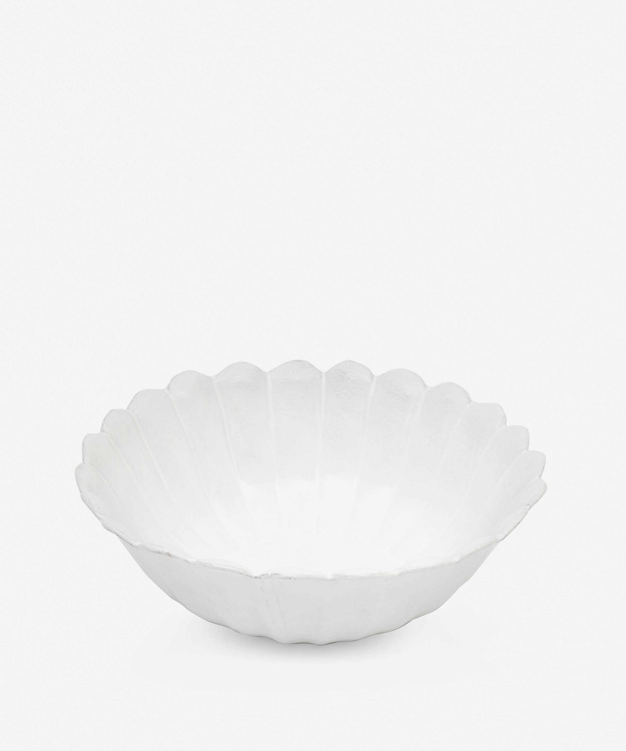 Votary of pre-industrial fabrication, Astier de Villatte is celebrated for being the one and only studio in Paris to hold and harbour the traditions of artisanal ceramic production. Restoring the ancestral systems of moulding and stamping, the large Marguerite salad bowl is made using handcrafting techniques from the Middle Ages which involve moulding a handmade sheet of clay, double firing the ‘biscuit’ piece and glazing the product in white enamel – a lengthy process that involves a drying time of up to one month. Characterised by an opulent scalloped rim, the salad bowl is engraved with the brand’s signature crest - depicting an interlacing A & V - alongside the initials of one of the 40 master artisans who created it. Each handmade piece tells a beautiful story, it romances and imparts a sense of nostalgia into its owner. Arrange with other serveware in the collection to breathe an air of authenticity into your dining collection.