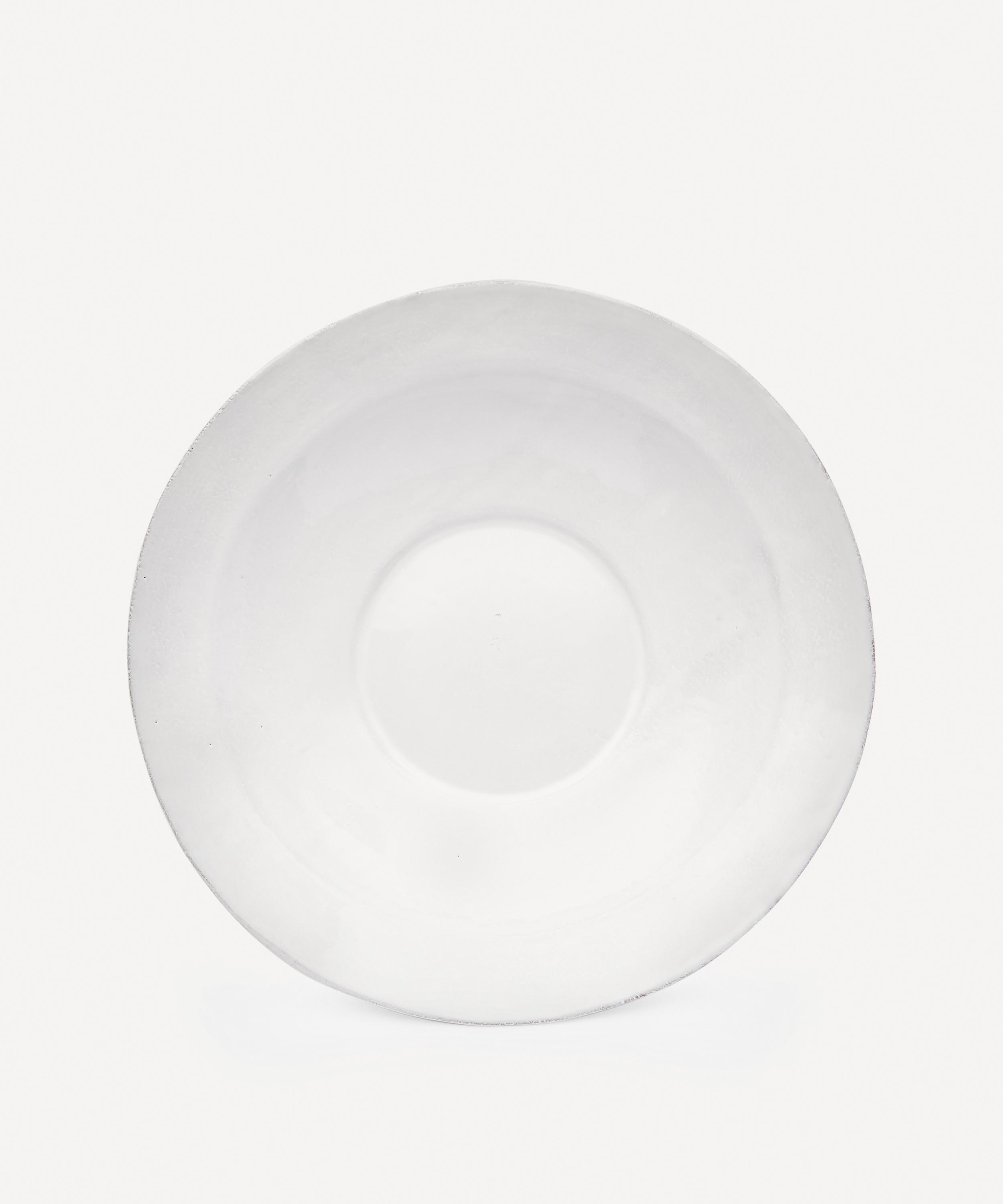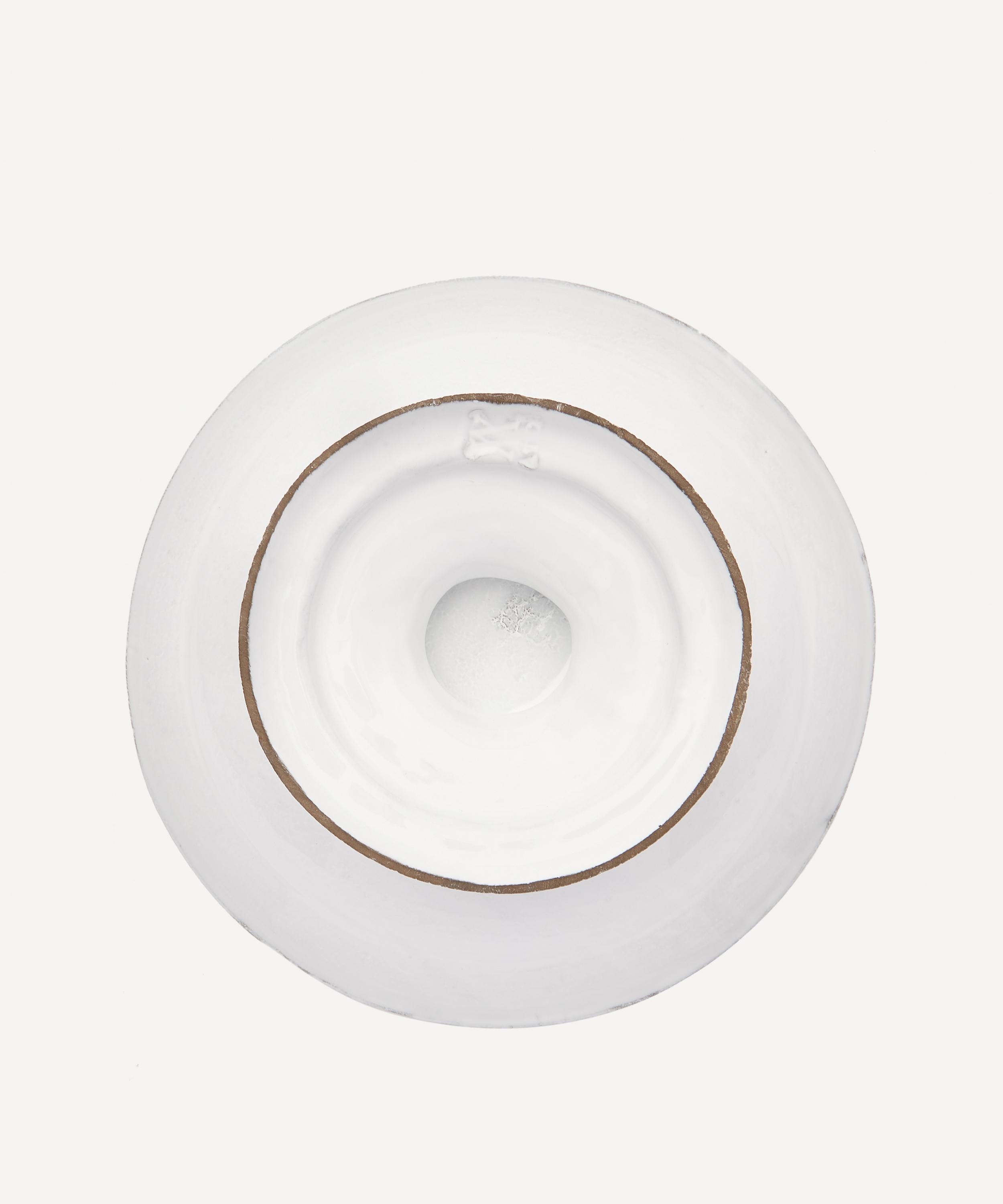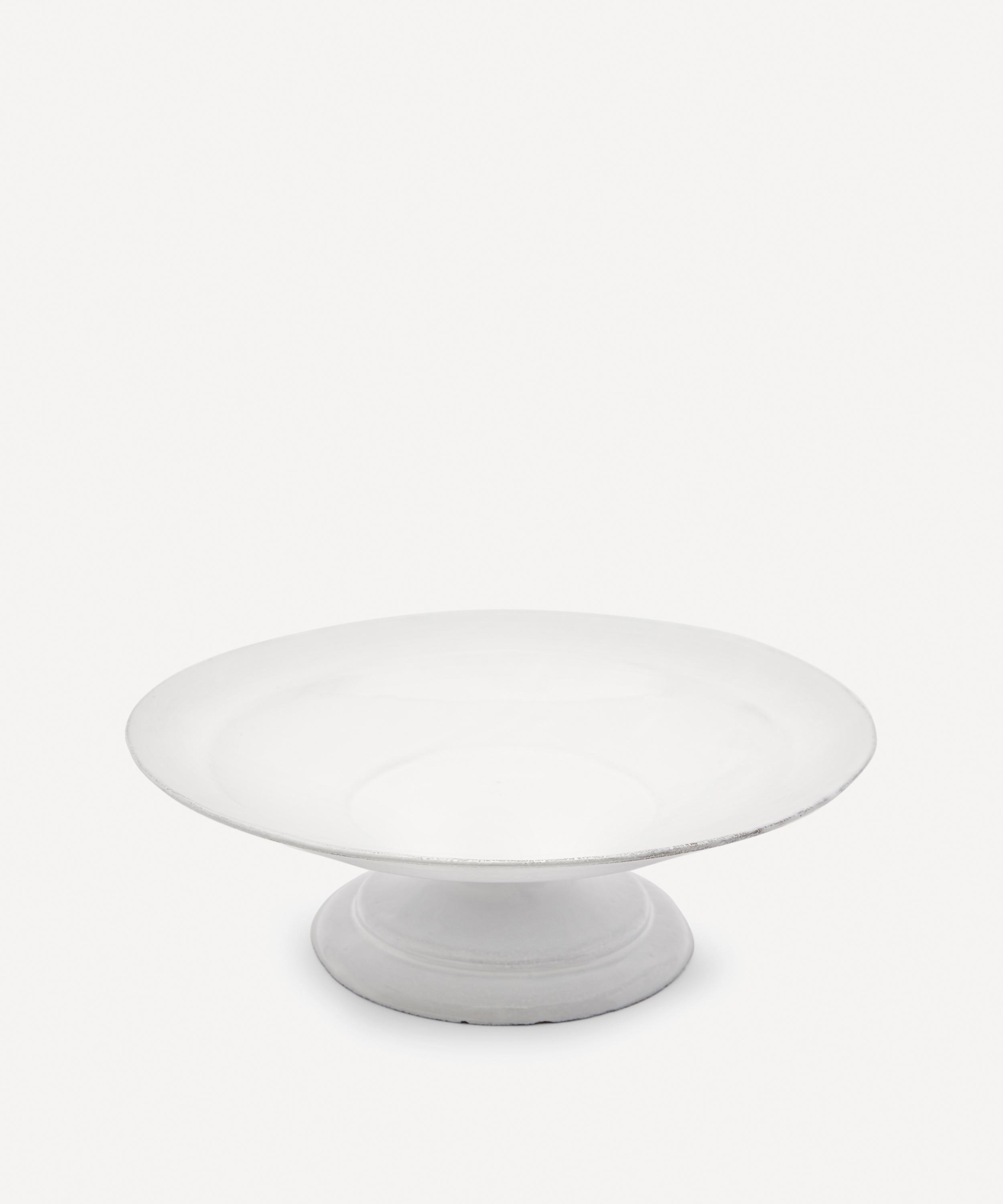 Votary of pre-industrial fabrication, Astier de Villatte is celebrated for being the one and only studio in Paris to hold and harbour the traditions of artisanal ceramic production. Restoring the ancestral systems of moulding and stamping, the Simple fruit stand is made using handcrafting techniques from the Middle Ages which involve moulding a handmade sheet of clay, double firing the ‘biscuit’ piece and glazing the product in white enamel – a lengthy process that involves a drying time of up to one month. Teeming with old-world charm, the large fruit stand is engraved with the brand’s signature crest - depicting an interlacing A & V - alongside the initials of one of the 40 master artisans who created it. Each handmade piece tells a beautiful story, it romances and imparts a sense of nostalgia into its owner. Arrange with other serveware in the collection to breathe an air of authenticity into your table setting.