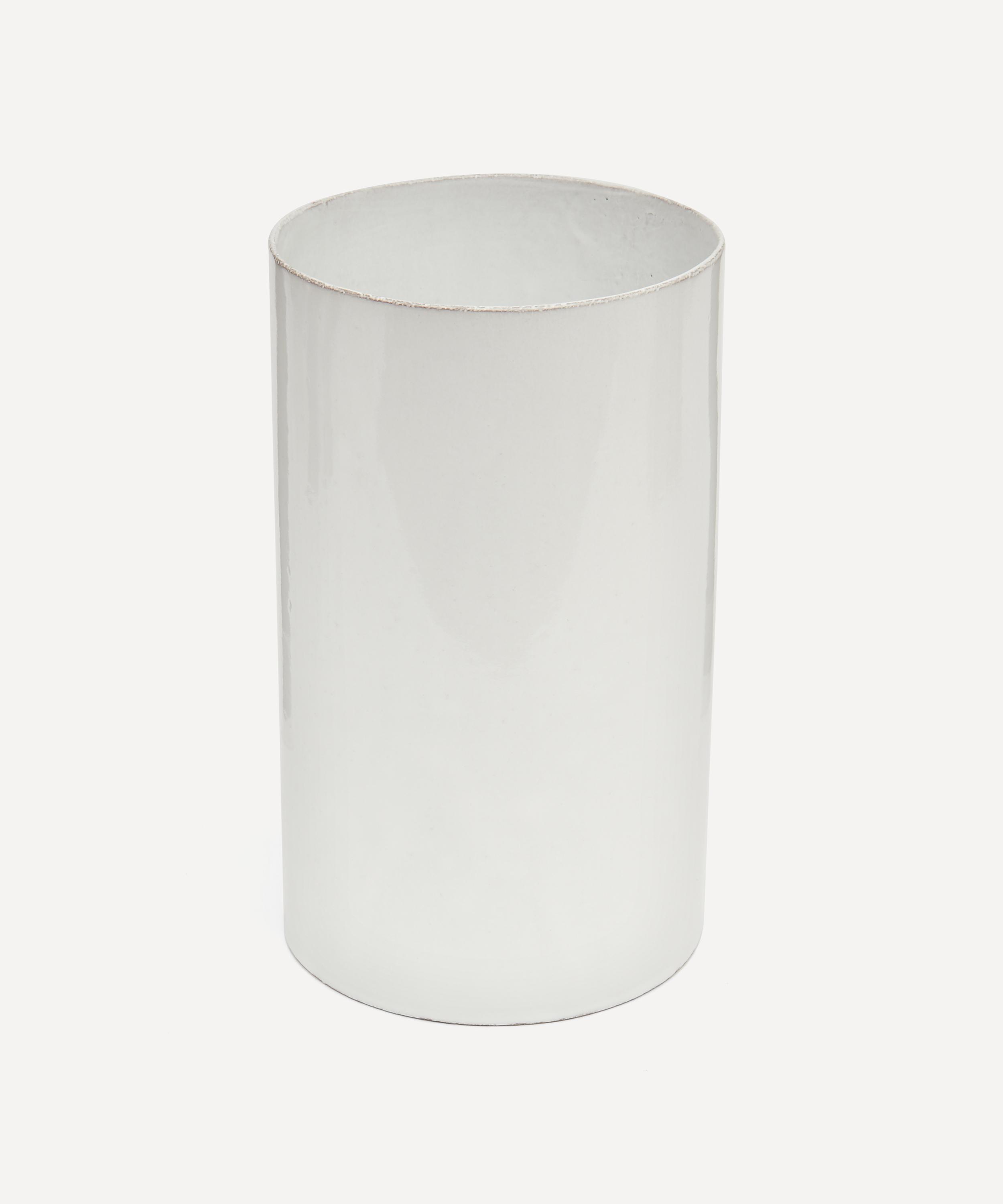 Votary of pre-industrial fabrication, Astier de Villatte is celebrated for being the one and only studio in Paris to hold and harbour the traditions of artisanal ceramic production. Restoring the ancestral systems of moulding and stamping, the Large Tube vase is made using techniques from the Middle Ages which involve moulding a sheet of handmade clay, double firing the ‘biscuit’ piece and glazing the product in white enamel – a lengthy process that requires a drying time of up to one month. Characterised by a sleek cylindical form, the smooth vase is engraved with the brand’s signature crest - depicting an interlacing A & V - alongside the initials of one of the 40 master artisans who created it. Each handmade piece tells a beautiful story, it romances and imparts a sense of nostalgia into its owner. Use this perfectly imperfect vase to display verdant fronds or vibrant bouquets.