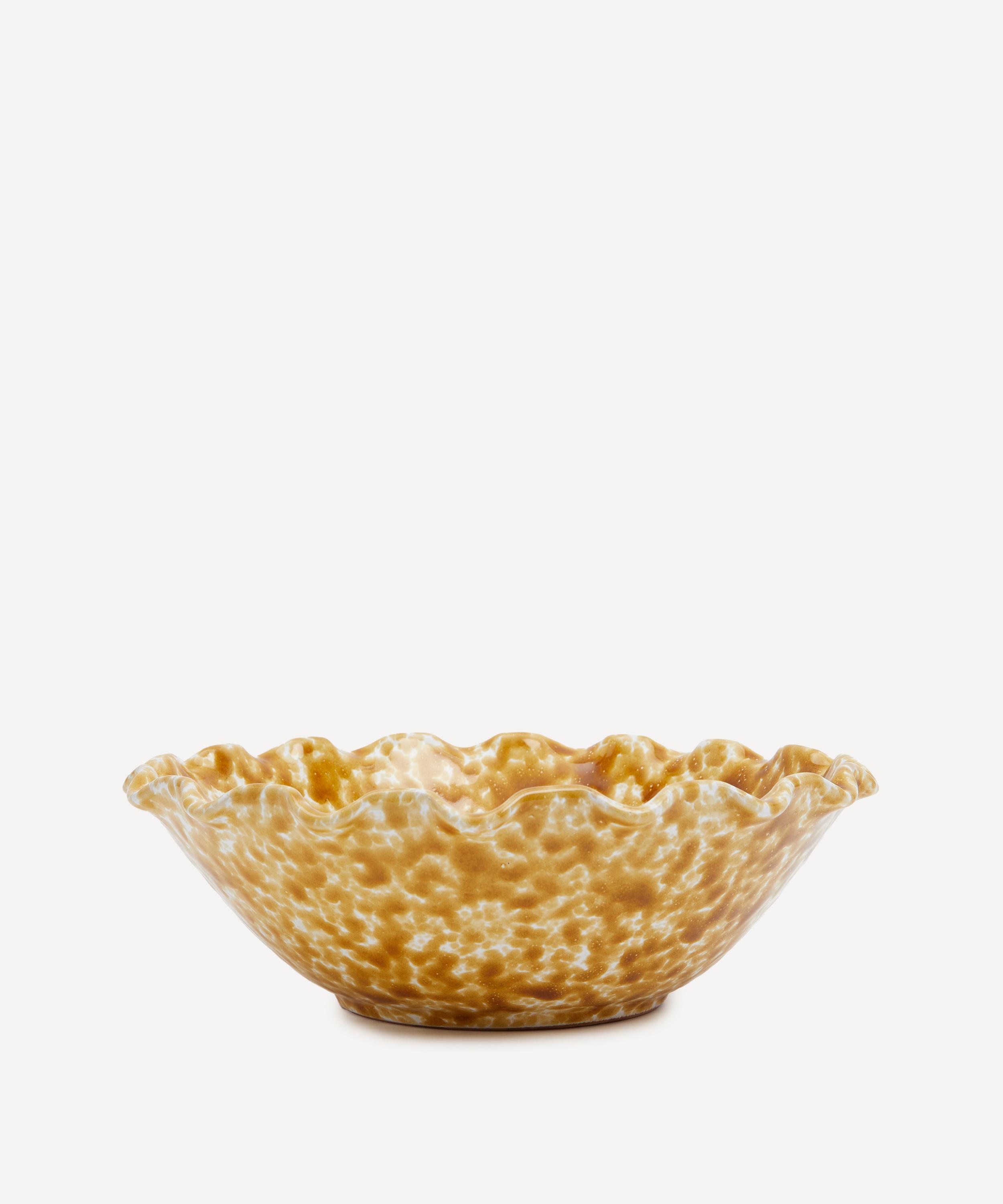 Reflecting the sun-soaked palette of the southern Italian region where it was crafted, this bowl presents an abstract splatter design in a bright, bold hue, spanning its silhouette. Traditionally handmade and glazed in a nod to classic ceramic artistry, its waved edges will ensure it stands out as the focal point of your kitchen countertop.
