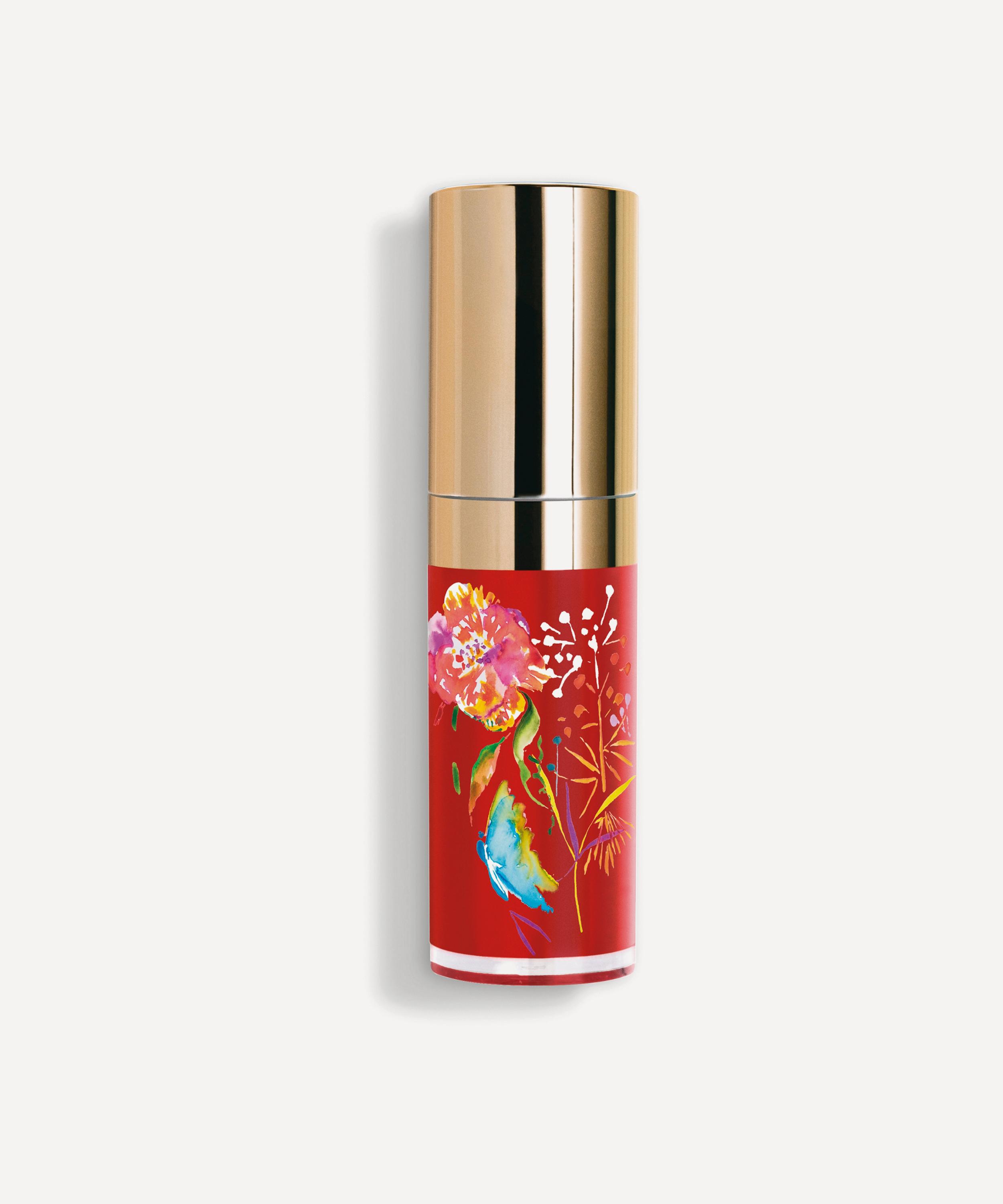 Formulated with the "Hydrobooster" complex, blending Hyaluronic Acid and Konjac Glucomannas, this non-sticky gloss envelops lips in a sumptuous creamy, soothing film that glides on comfortably for an immediate nourishing, plumping and protective effect, while revealing a light veil of lip-loving colour.
