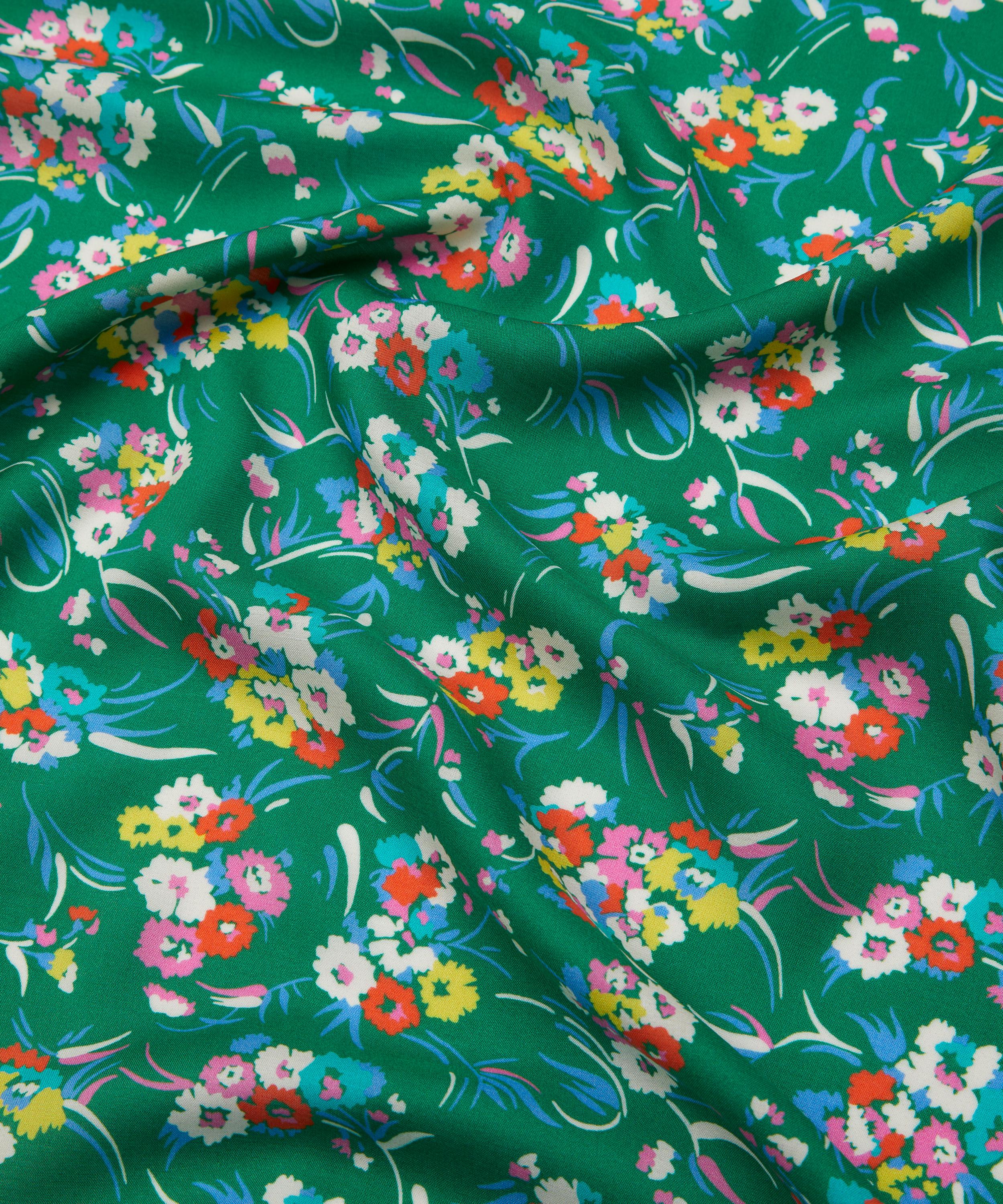 Leah draws inspiration from a Liberty design first created in 1978. Balancing vintage charm with a contemporary touch, its loosely painted daisy bouquets evoke the nostalgia of 1970s summer dresses. Scattered in an expressive, almost dance-like rhythm across the fabric, its simplified blooms convey a sense of effortless energy and movement.