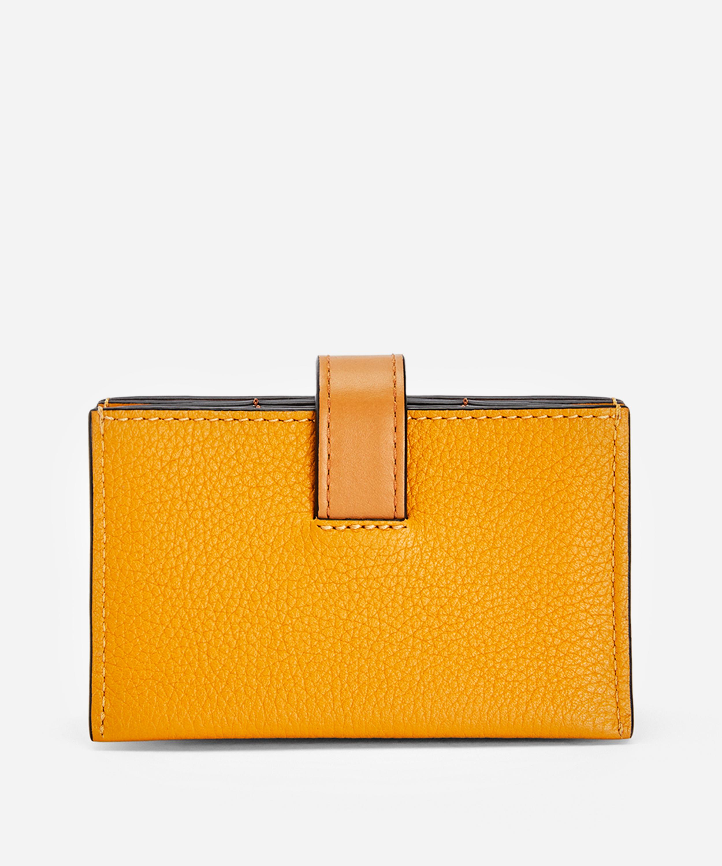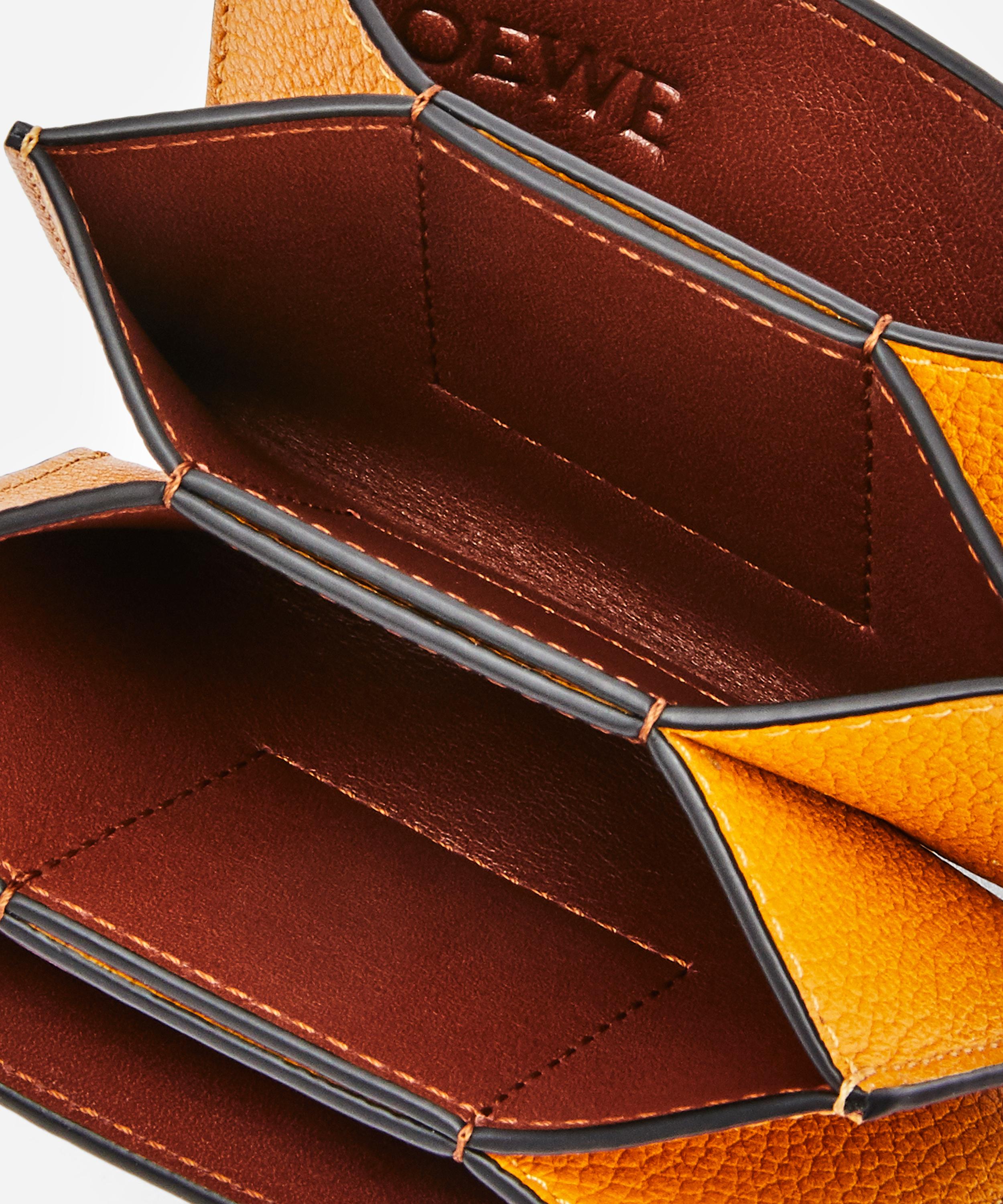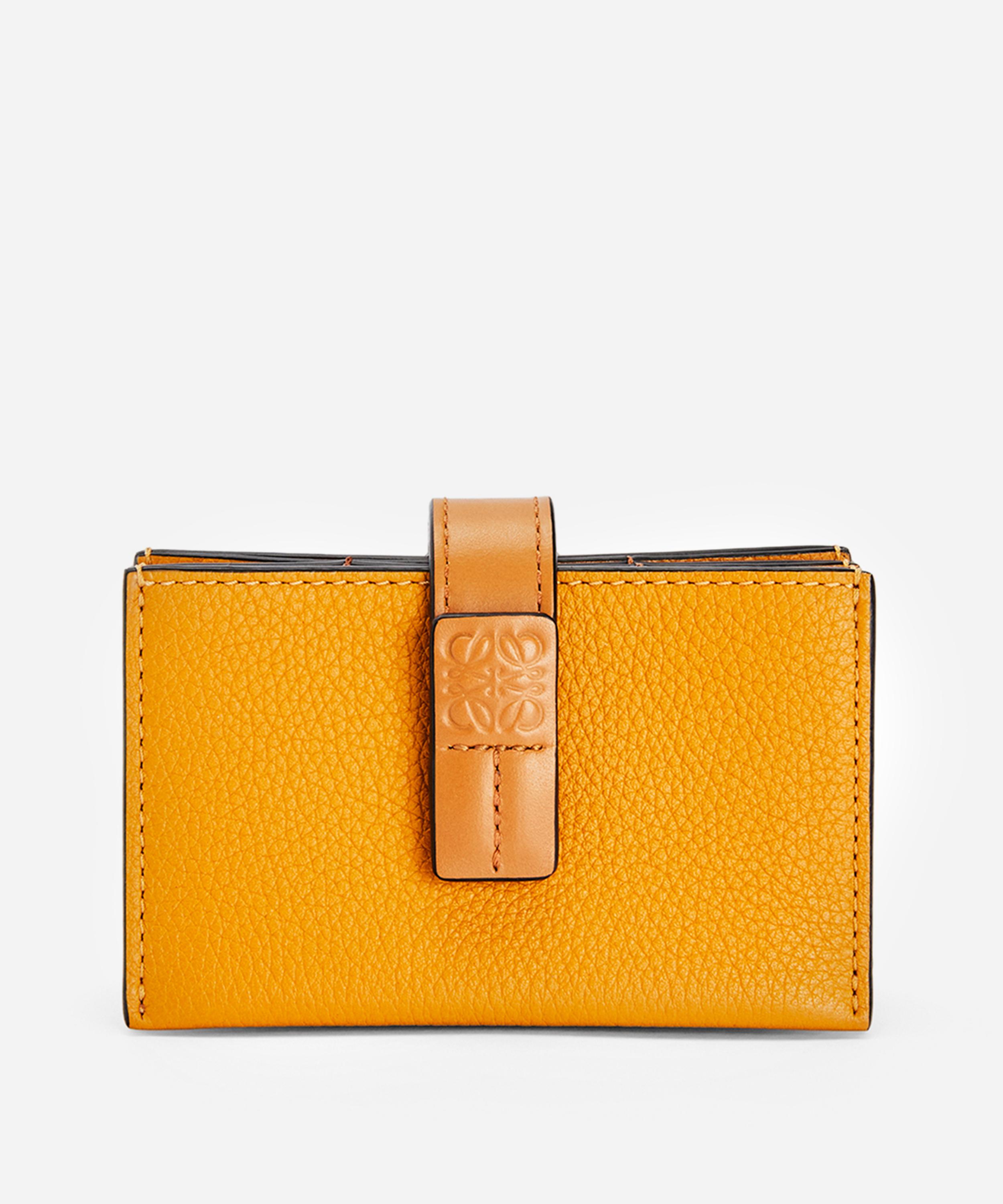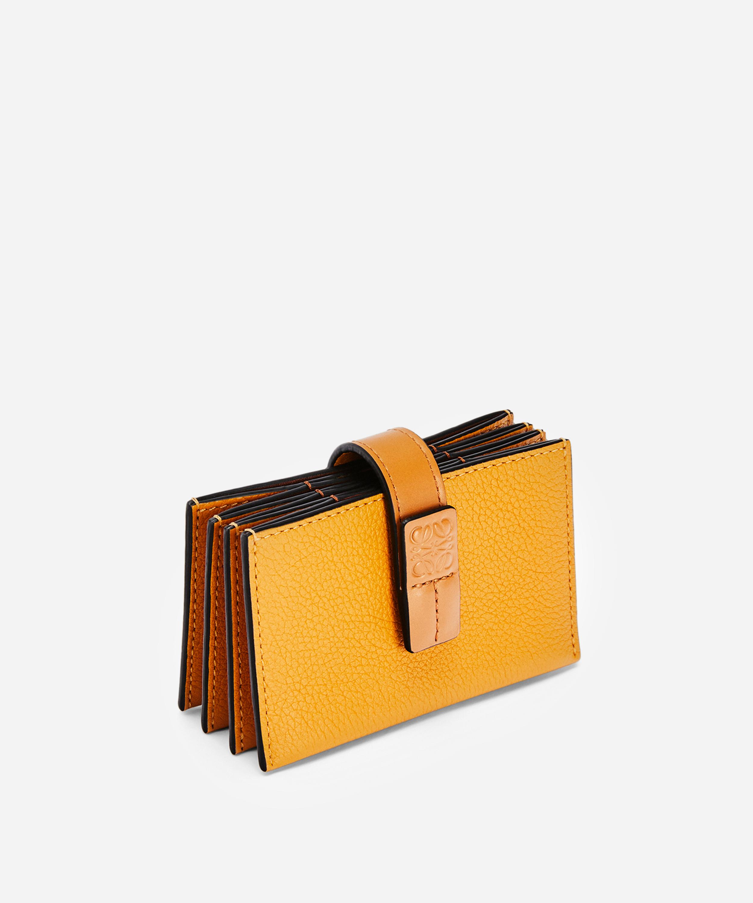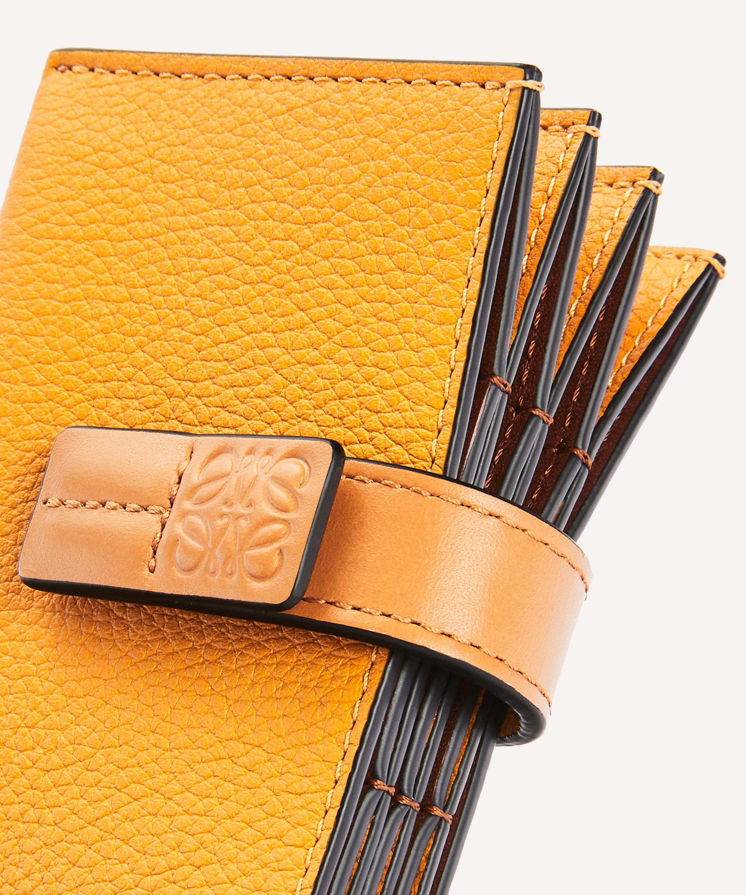 This accordion card holder is cut from a combination of smooth and grained calfskin leather by Spanish fashion house Loewe.