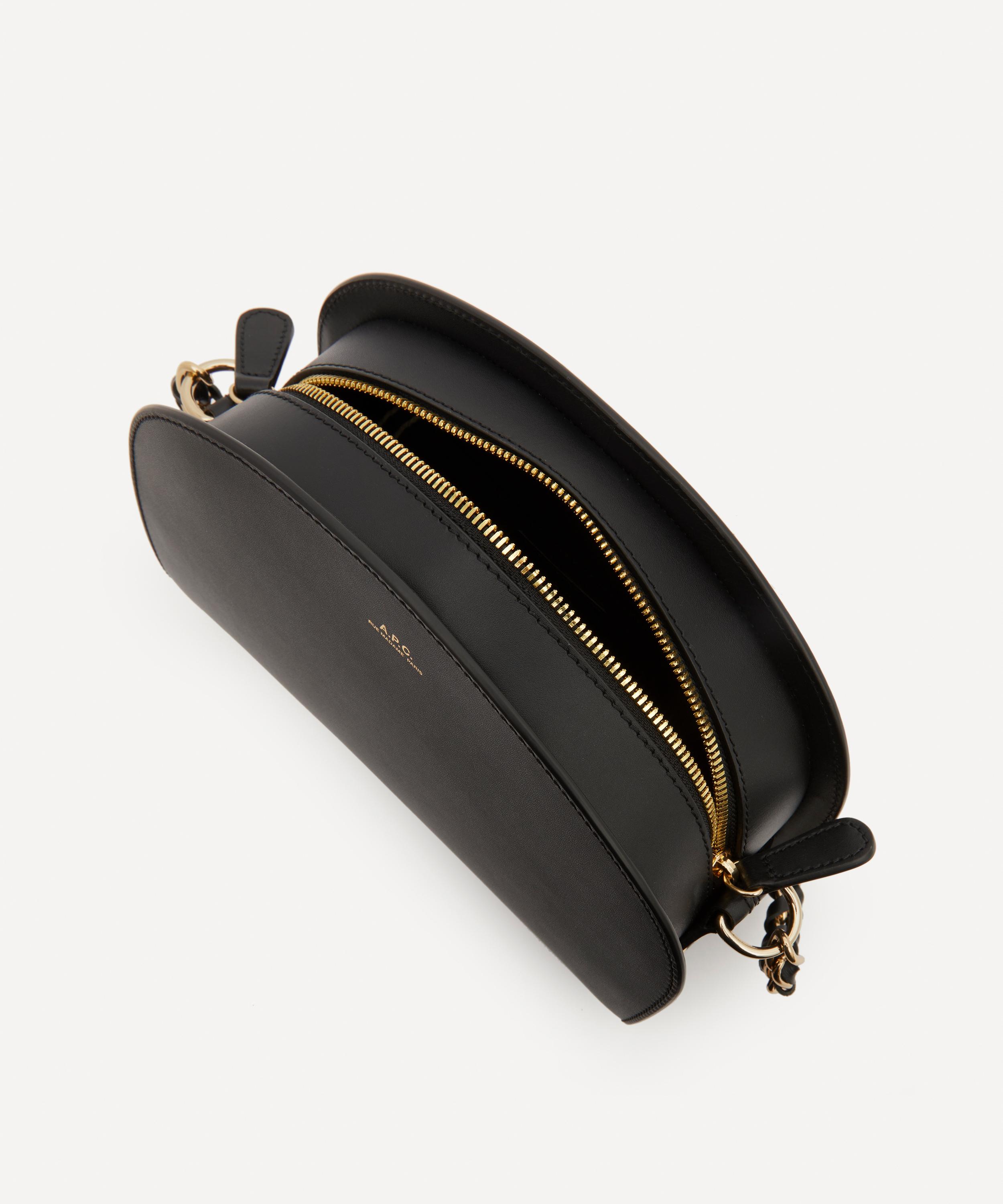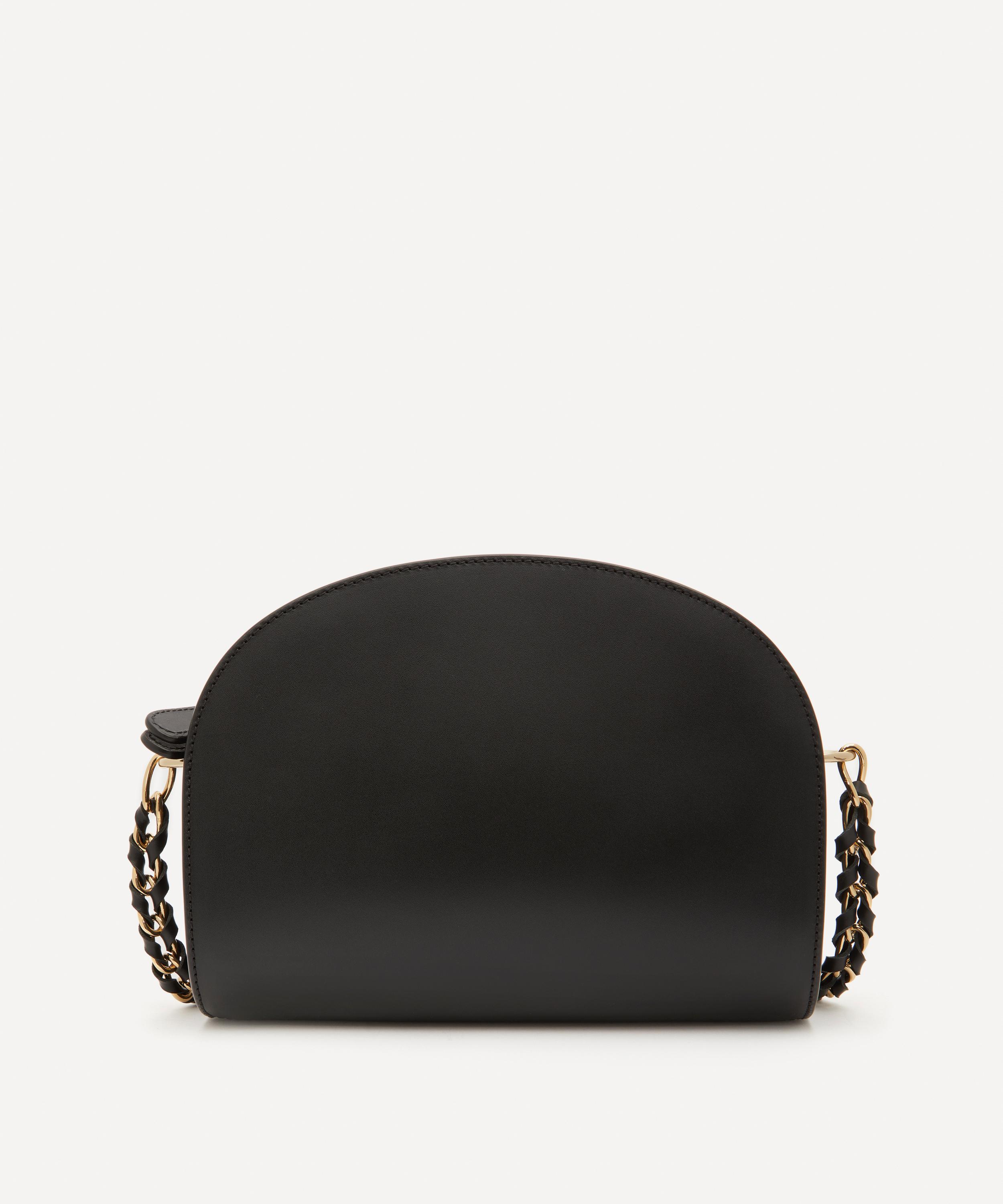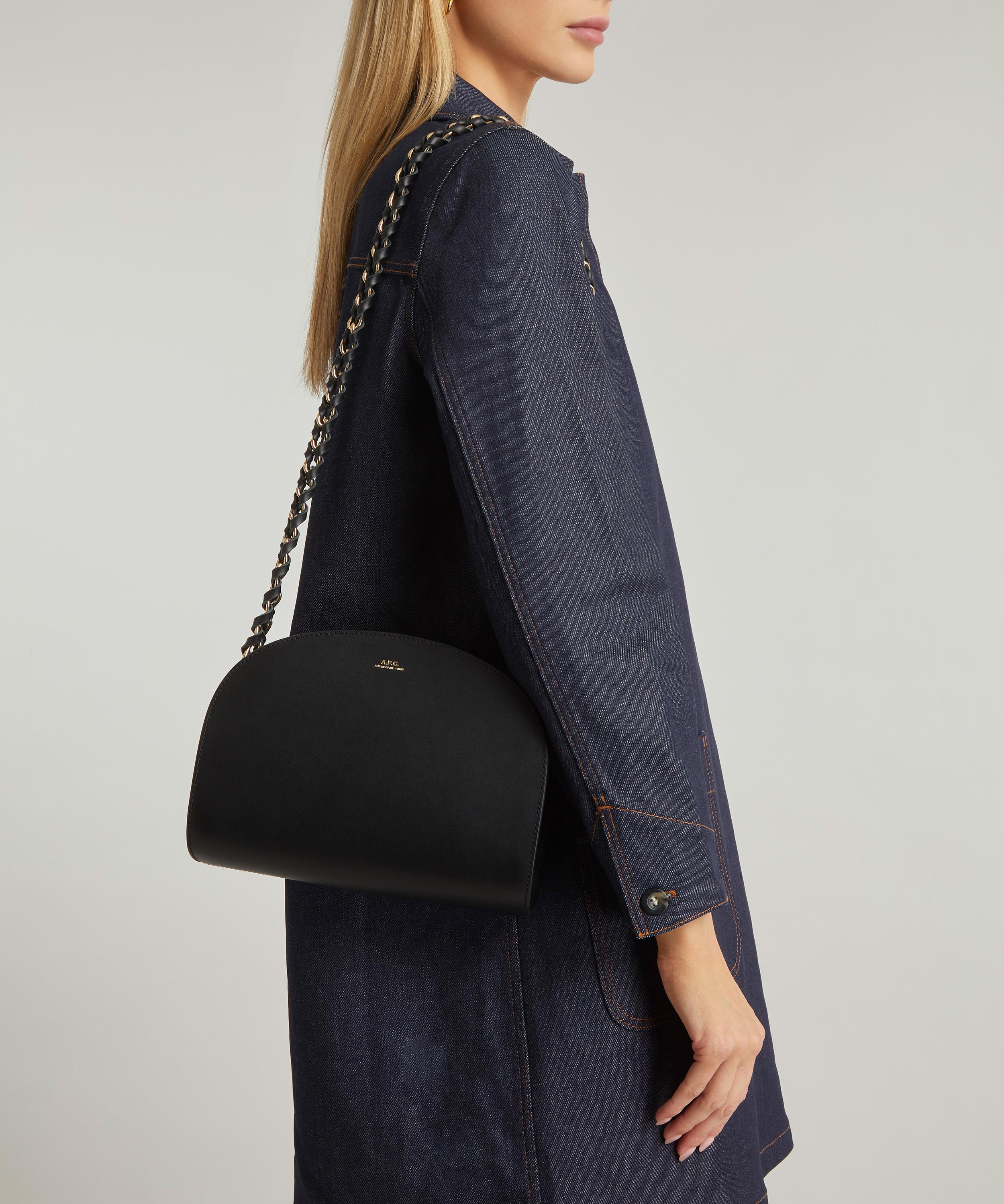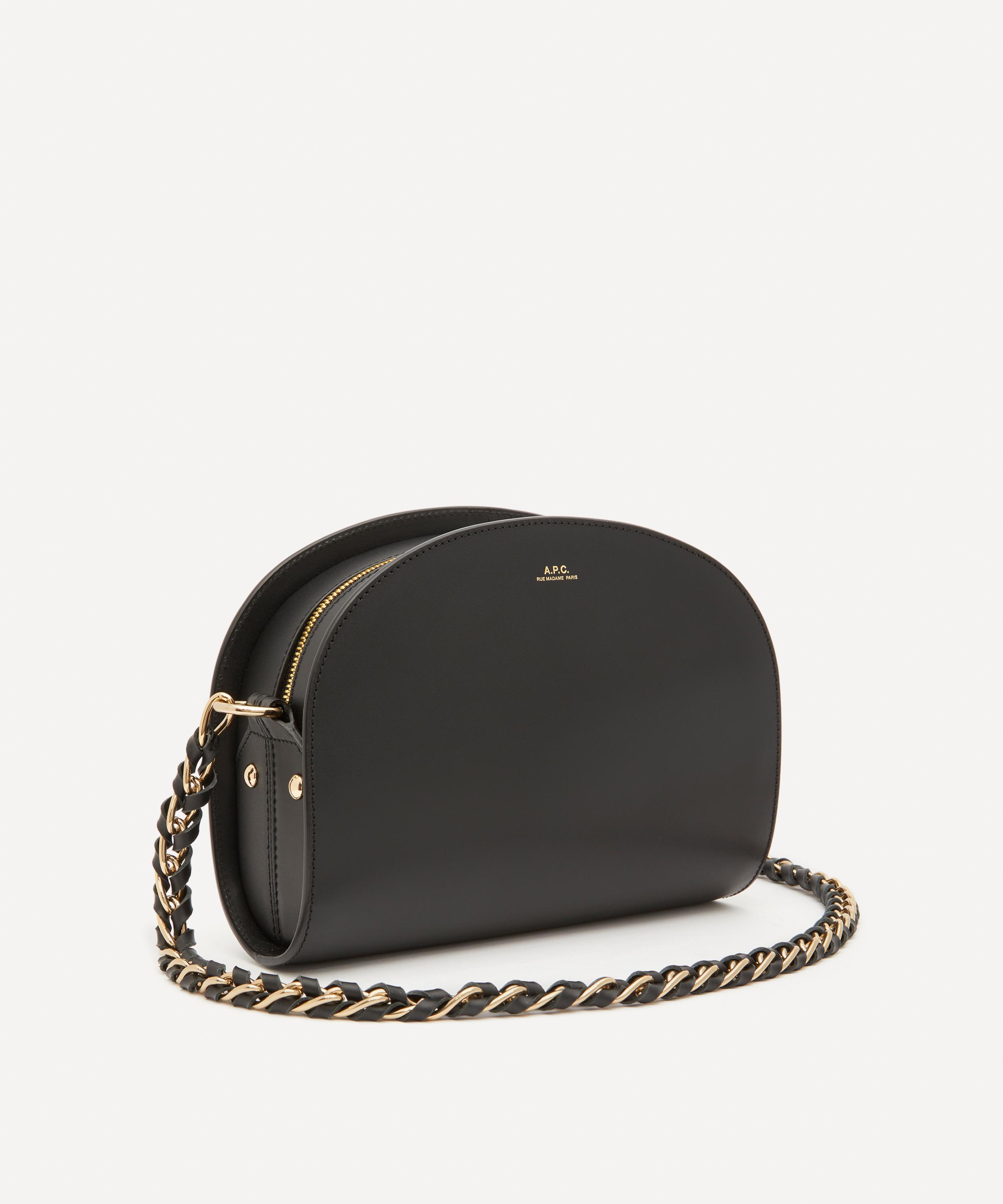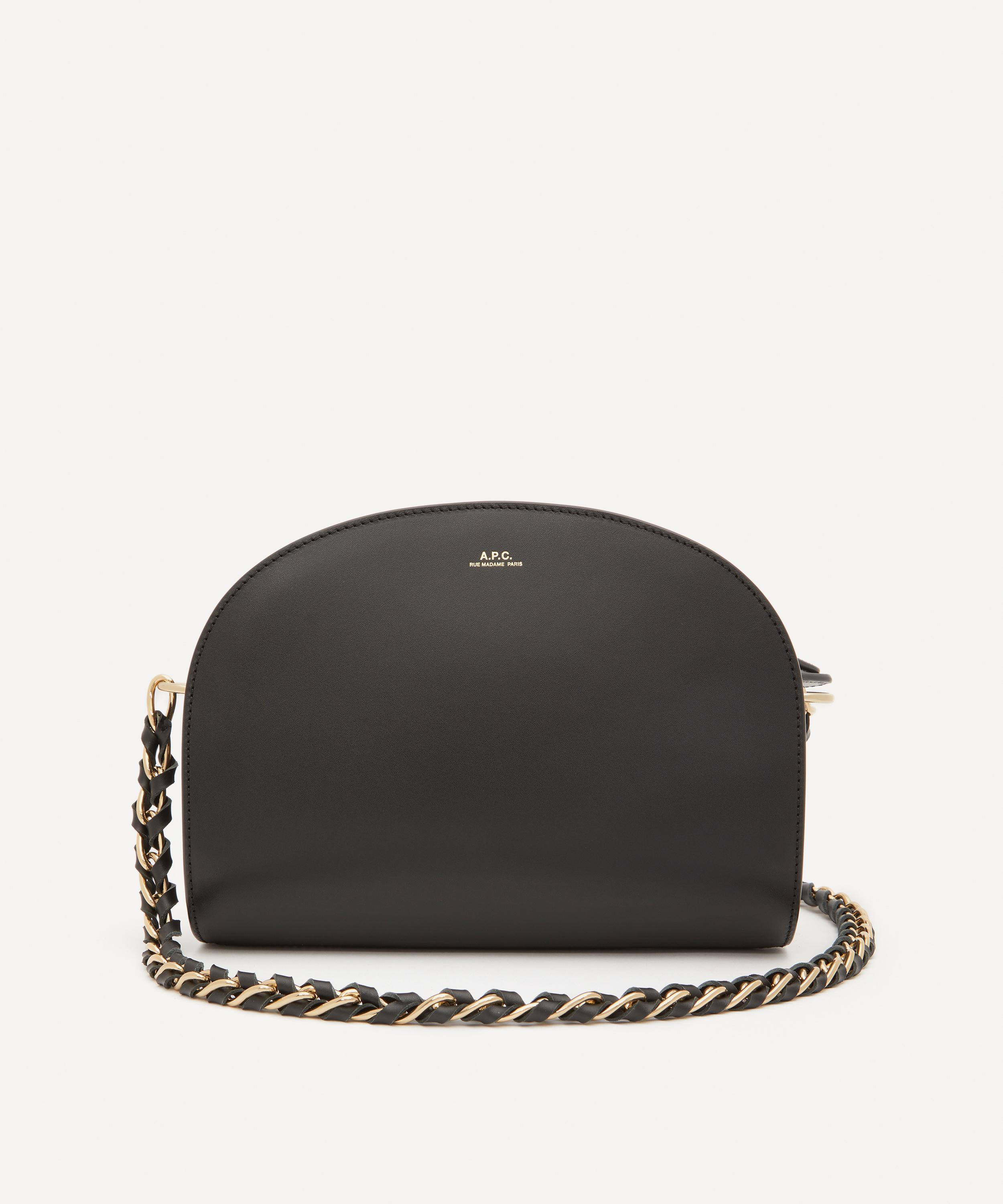 A.P.C.'s iconic Demi-Lune cross-body bag is cut from smooth vegetable-tanned Italian leather. Arguably the Parisian label's most coveted artefact, the Demi-Lune bag is named after its sleek, half-moon silhouette and prized for its practical details. The design features a two-way zip fastening, an internal slip pocket and a single adjustable shoulder strap braided with a gold-tone chain. Sling it over your shoulder or style it cross-body for an effortlessly understated look – perfect for everyday wear.