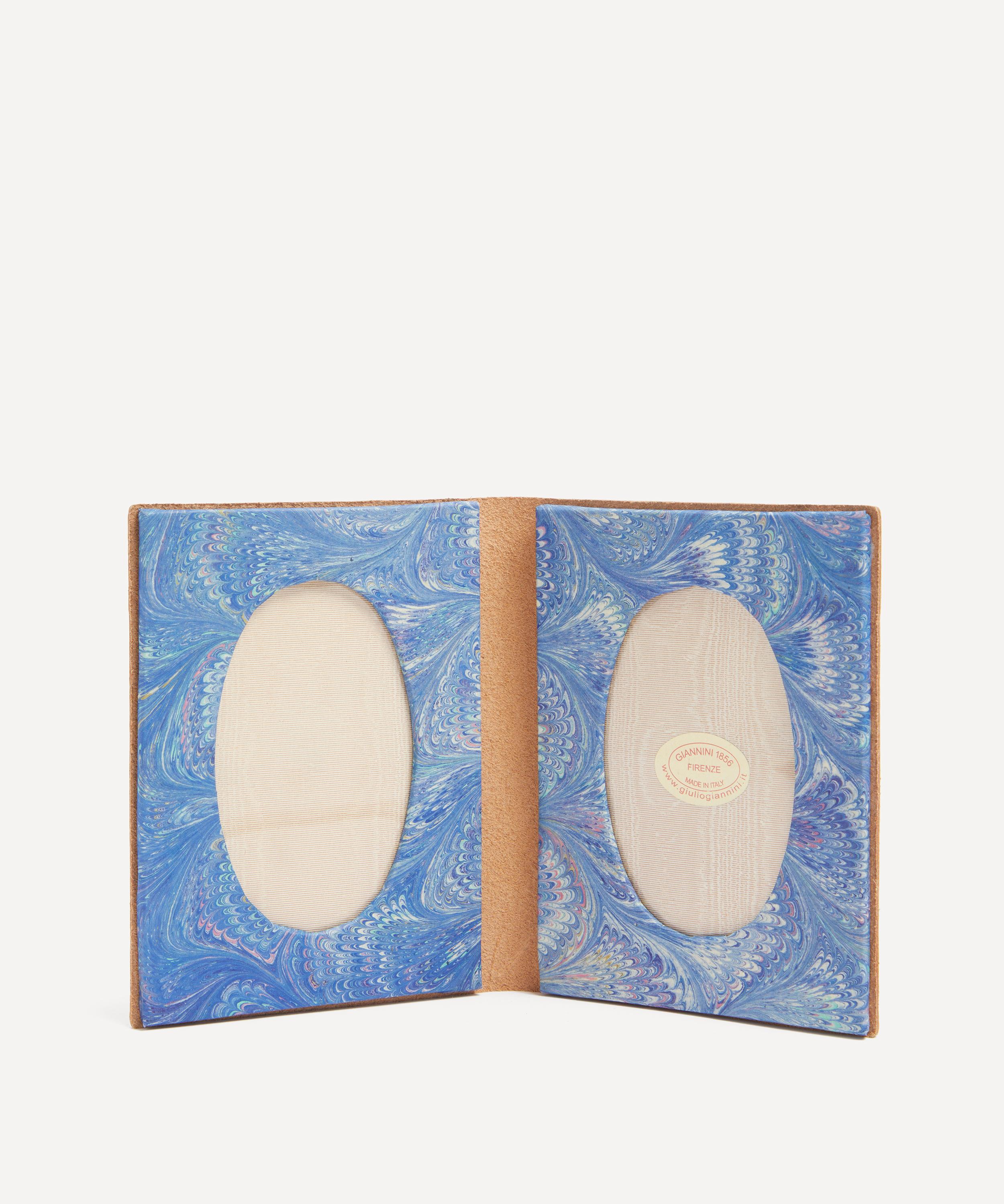 Hand marbled in Florence, this frame has been meticulously crafted using an expertise that has be honed for generations by city natives Giannini at their family-run Bottega d'Arte. Featuring a naturally tanned leather construction and with two oval picture slots, display on your shelfscape for an artful way to display treasures memories.