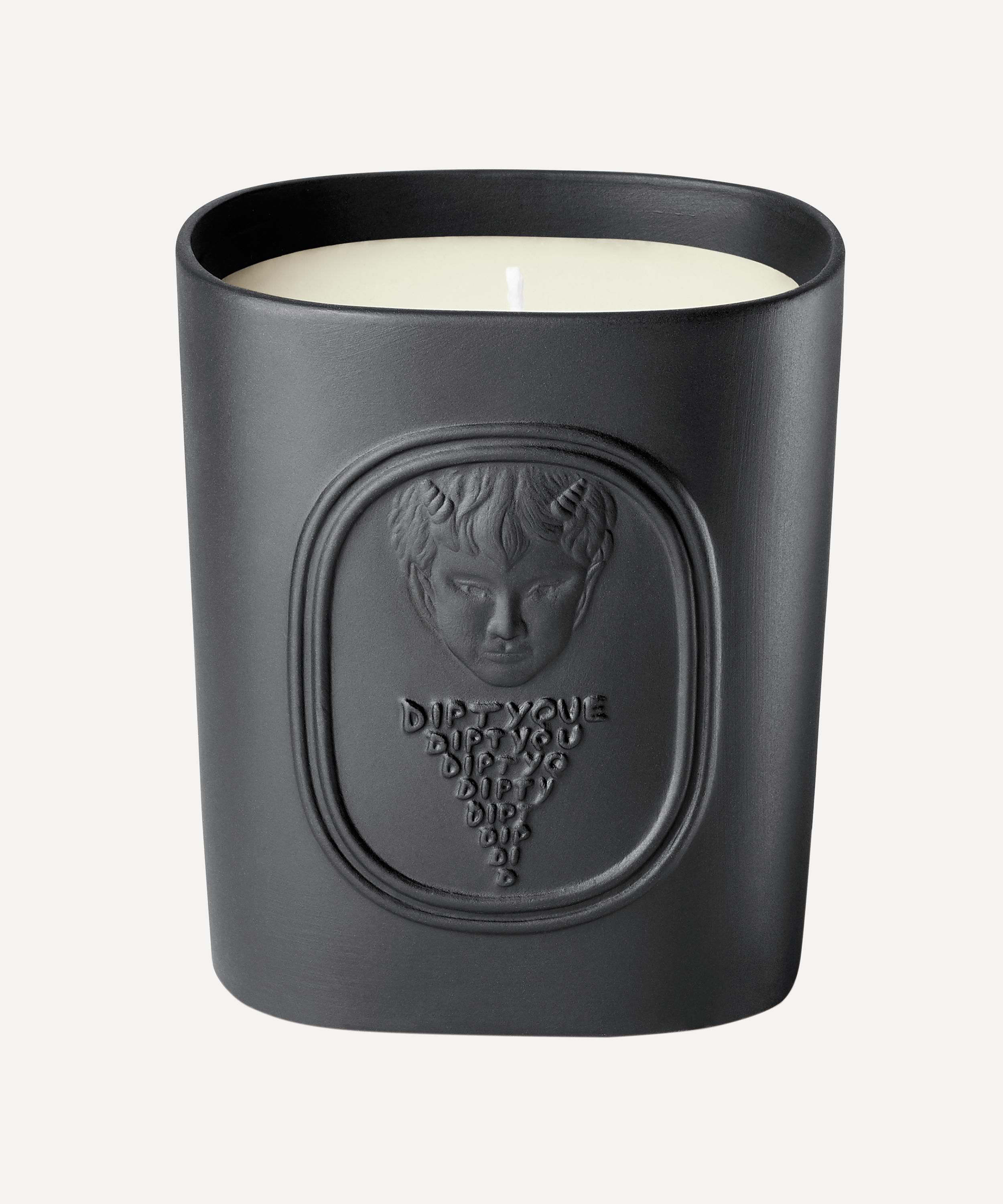 Inspired by one of Diptyque's founders, Desmond Knox-Leet's obsession with the ancient Greek figure, Fauna, The Elide blends essences found in the Greek landscape, such as bitter orange peel, herbaceous plants and aromatic wild lavender. The candle is housed in a matte black biscuit pot emblazoned with the horned head of Fauna.