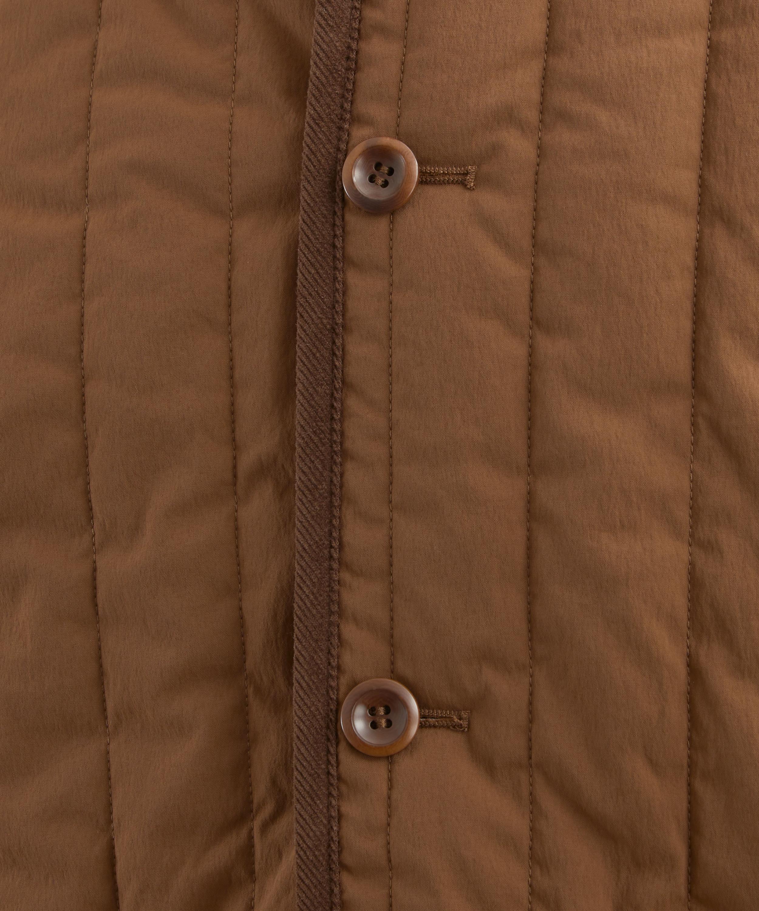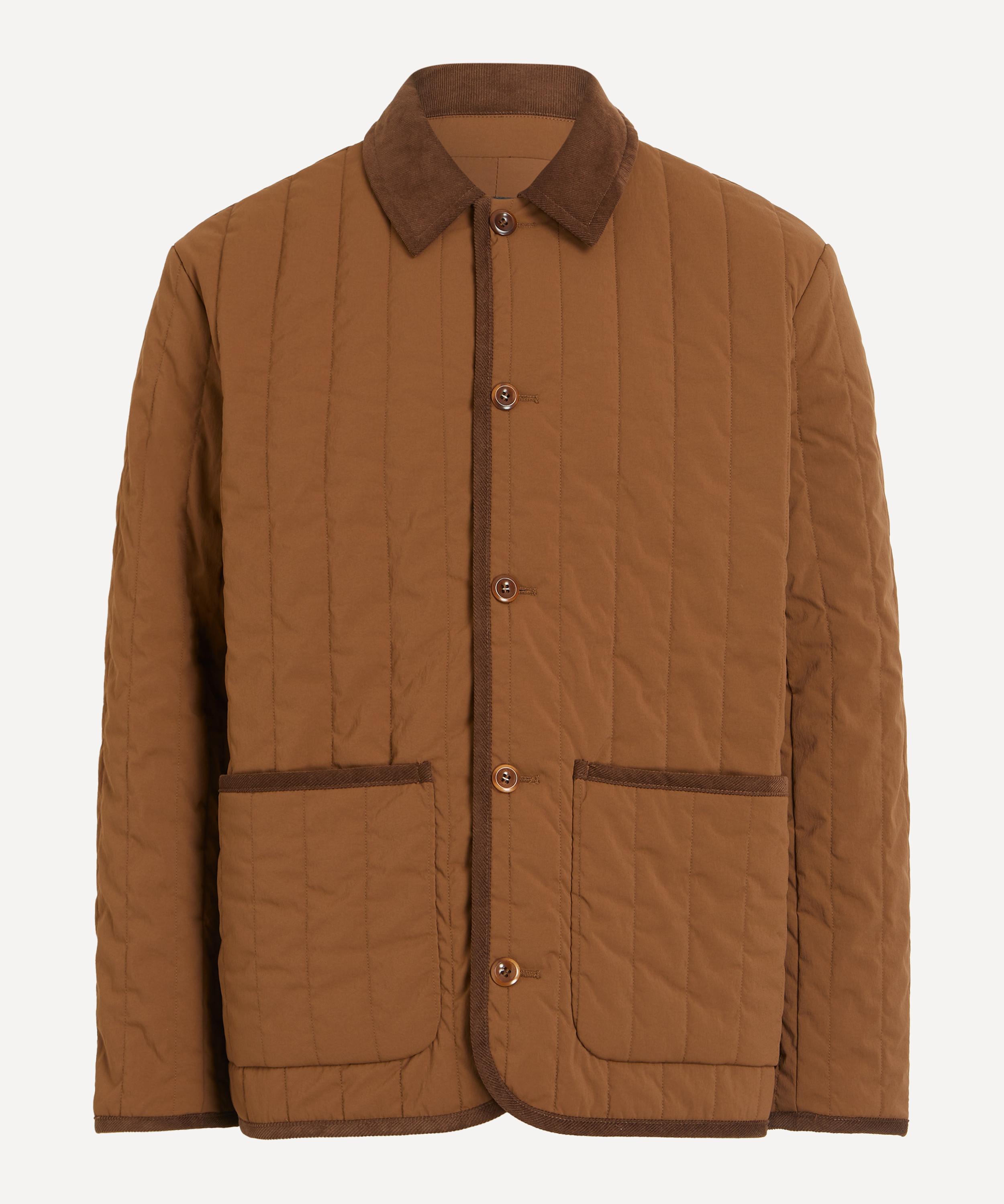 Cut in a classic straight silhouette, this quilted jacket takes inspiration from traditional field styles, featuring a contrast corduroy collar, lower patch pockets, and corduroy-lined trims.