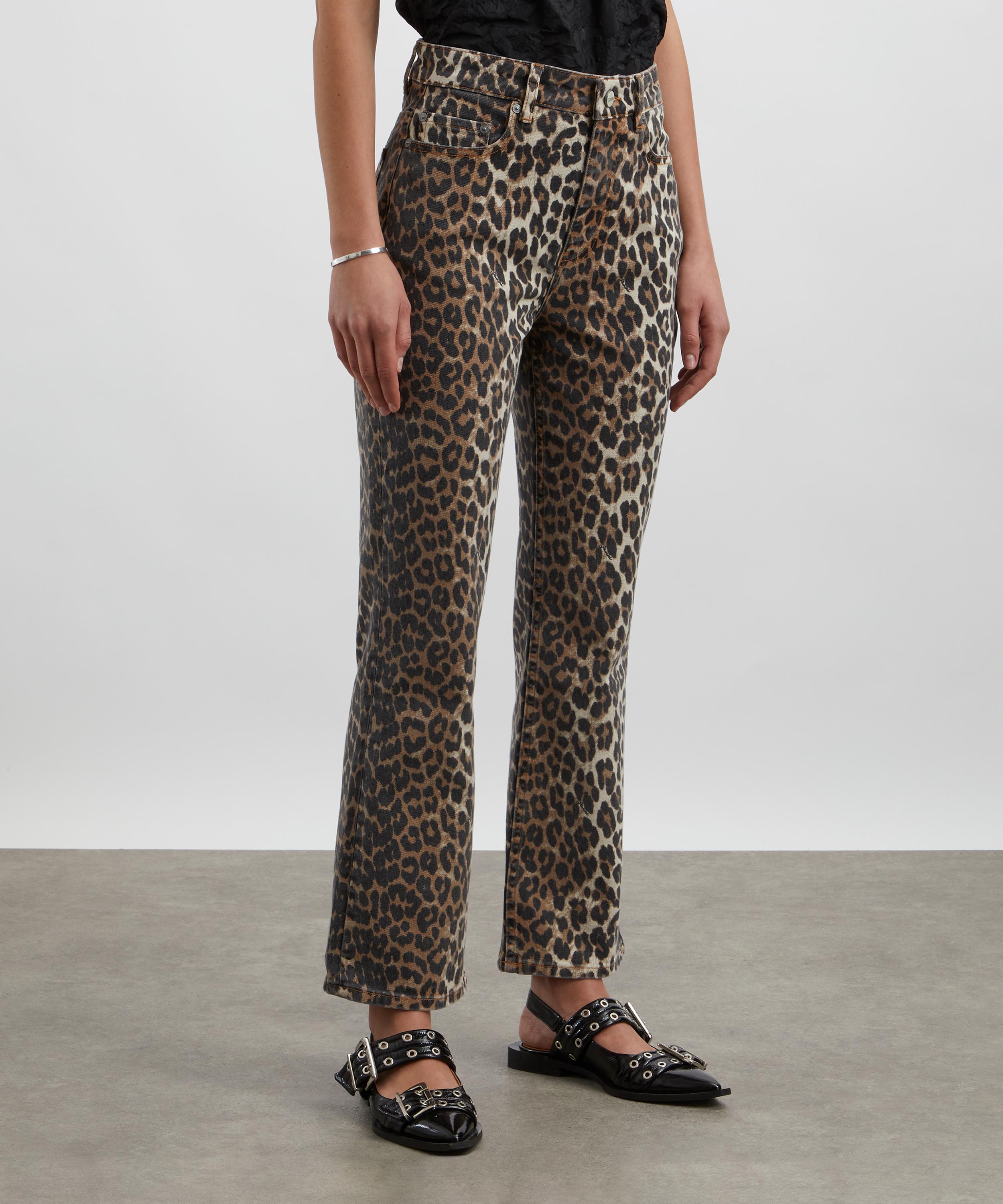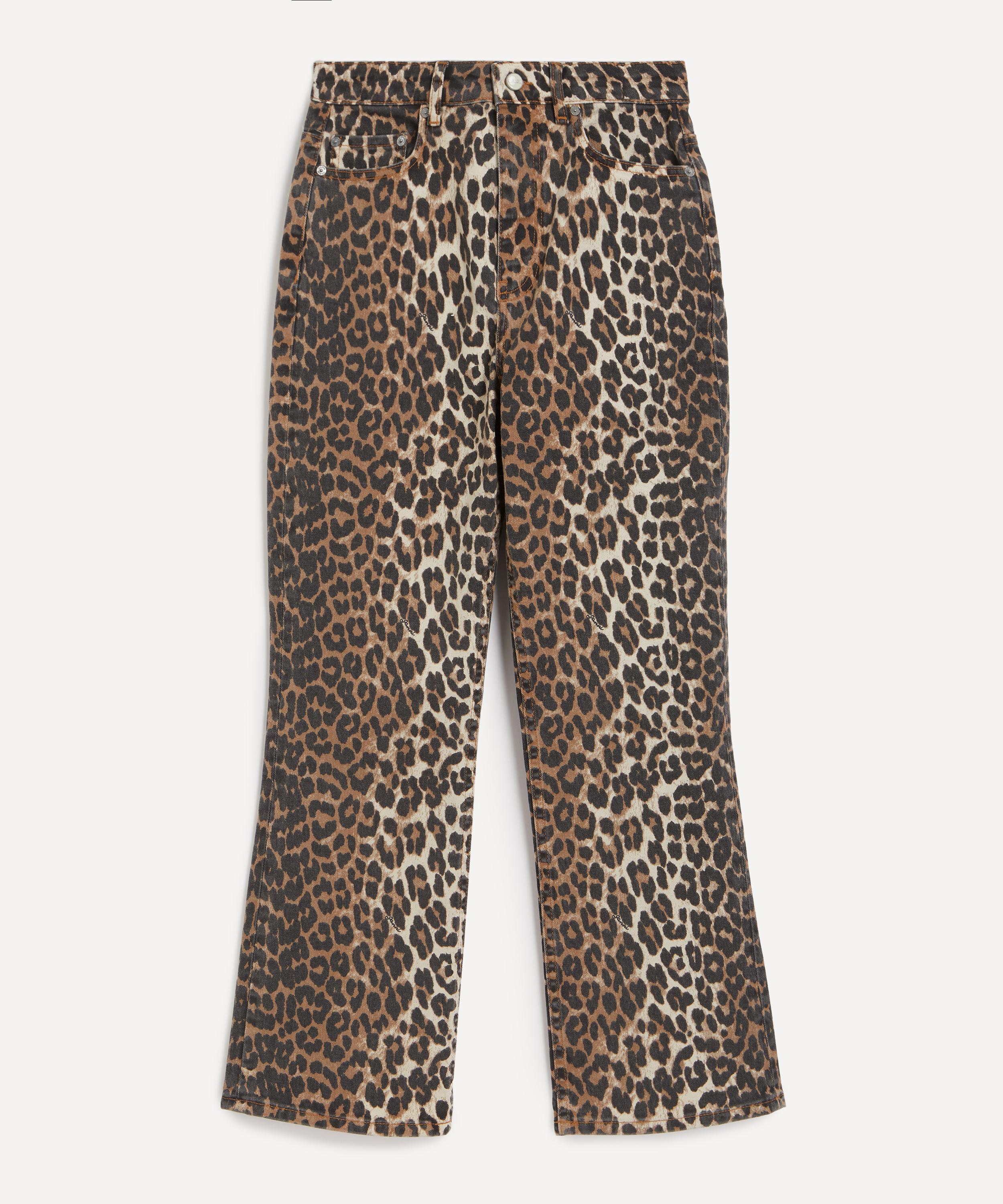 Adorned in GANNI’s signature leopard print, the Betzy jeans are a bold alternative to your timeless blue denim staples. Designed with a classic five-pocket style and a flattering high waist, these jeans flare from the knee and crop just above the ankle for a modern, versatile look.