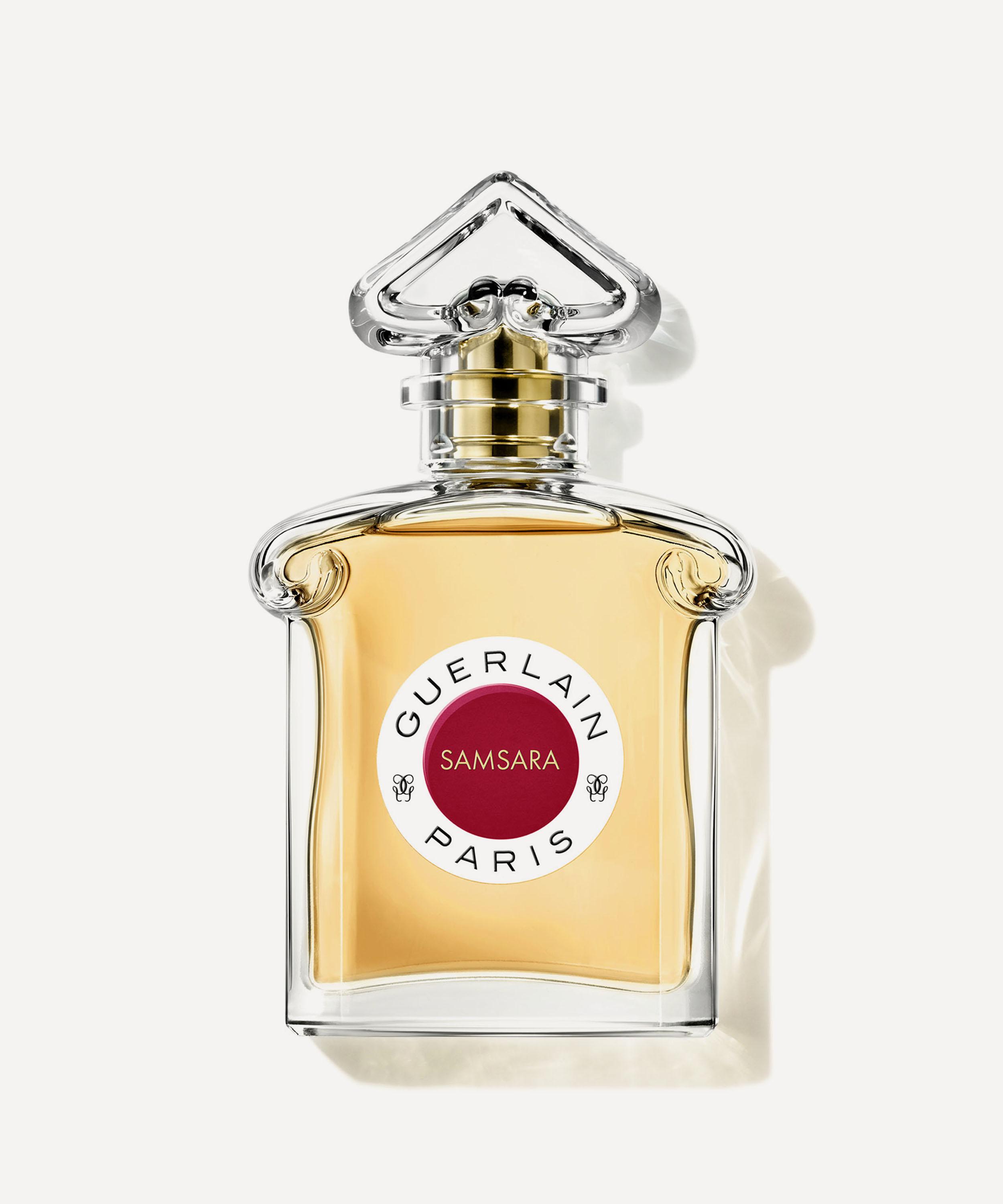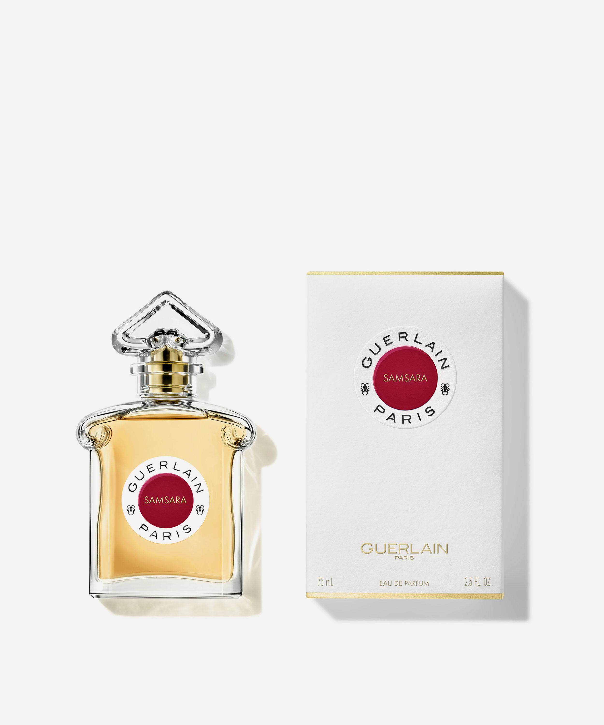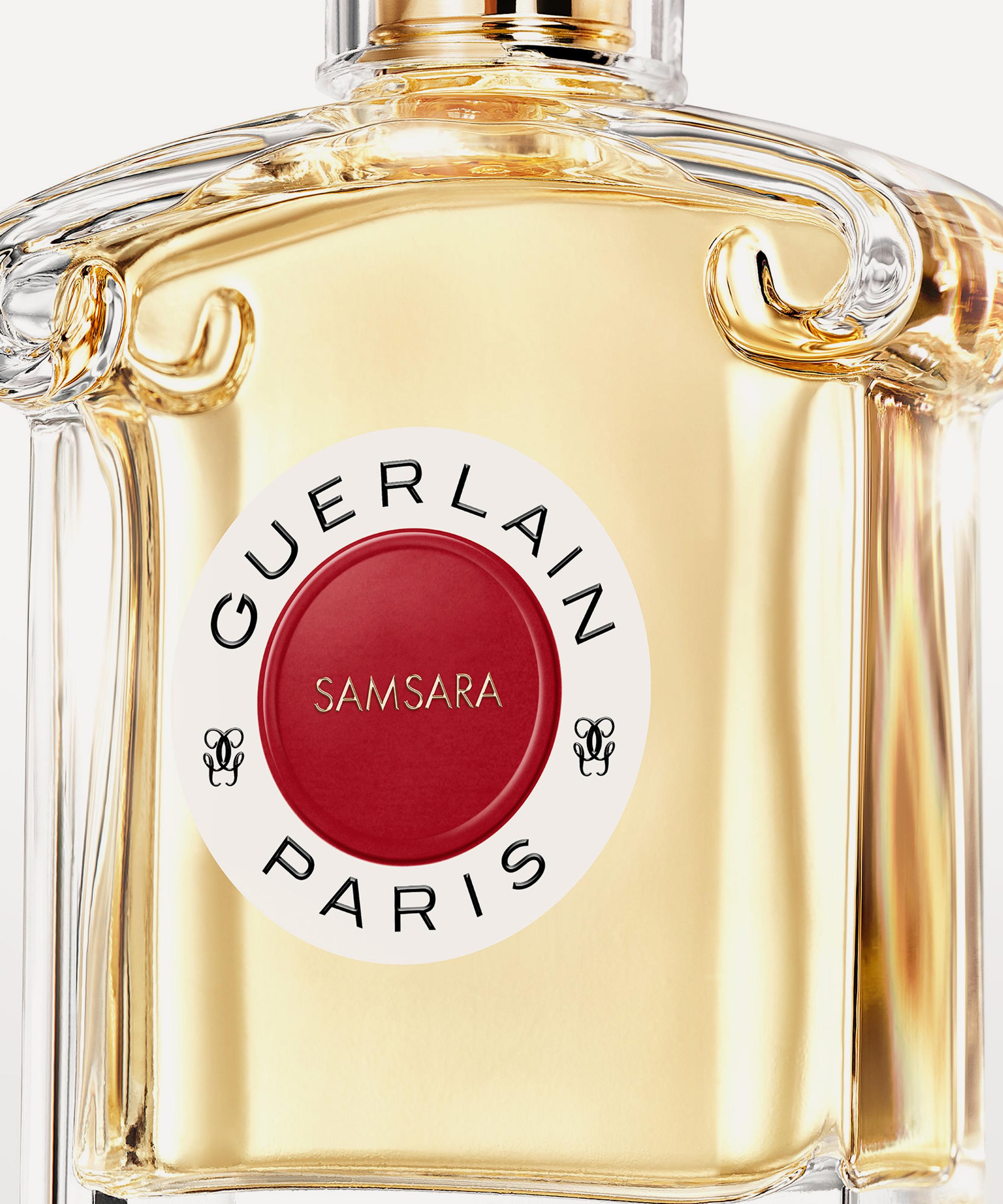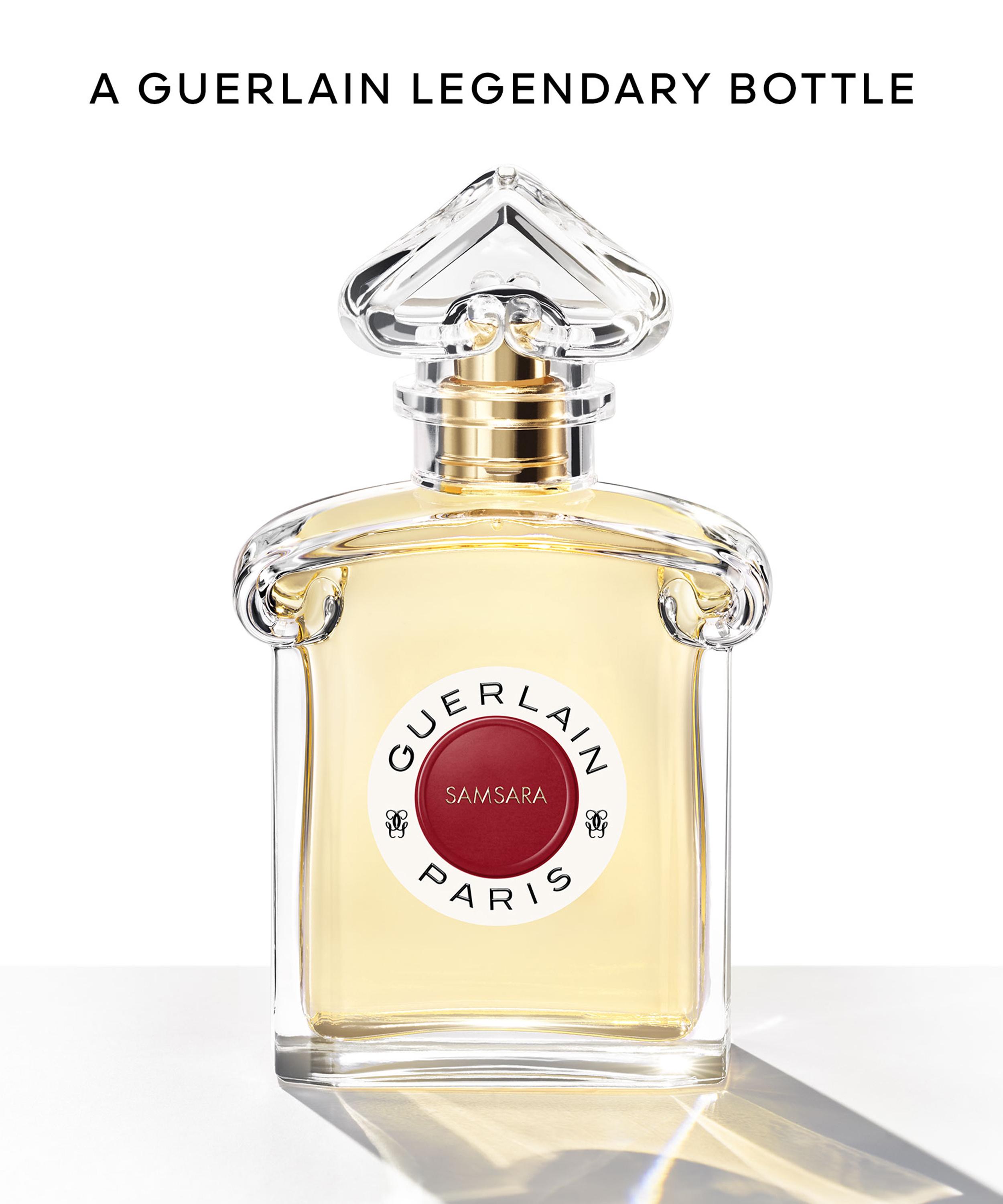 Make a statement with the radiating Les Légendaires Samsara eau de parfum from GUERLAIN. Created for the woman in his life, Jean-Paul GUERLAIN composed this woody, amber fragrance to embody the scent of a true, sacred love. Samsara, a Sanskrit word meaning “eternal rebirth” envelopes with jasmine flowers and sunny ylang-ylang, paired with warm sandalwood, iris, tonka bean and vanilla to create a remarkable scent trail.