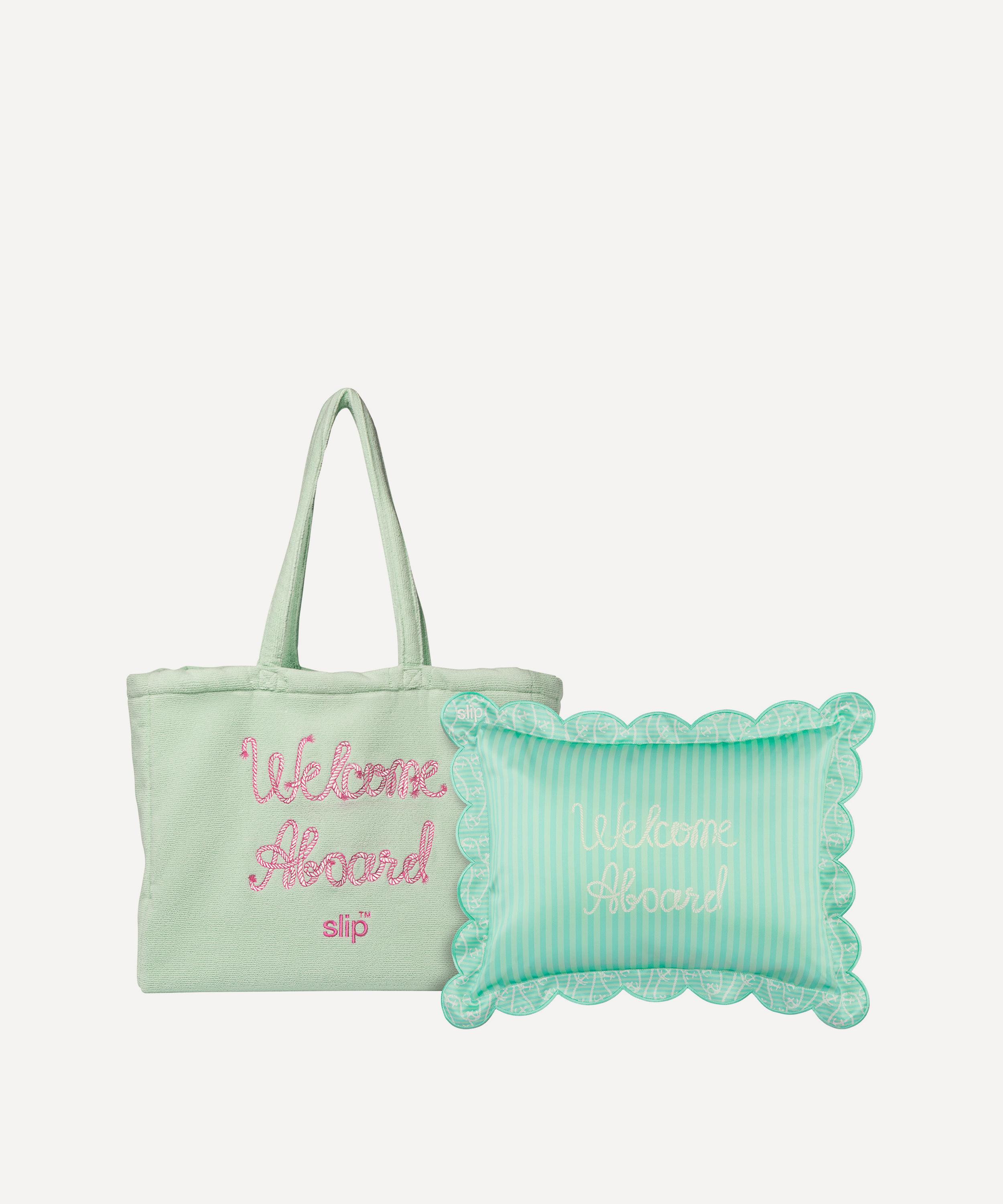 Enhance your on-the-go beauty sleep with Les Vacances Silk Travel Pillow from cult beauty brand Slip, presented in a charming towelling beach bag, it is set to take your holiday line-up to new heights.