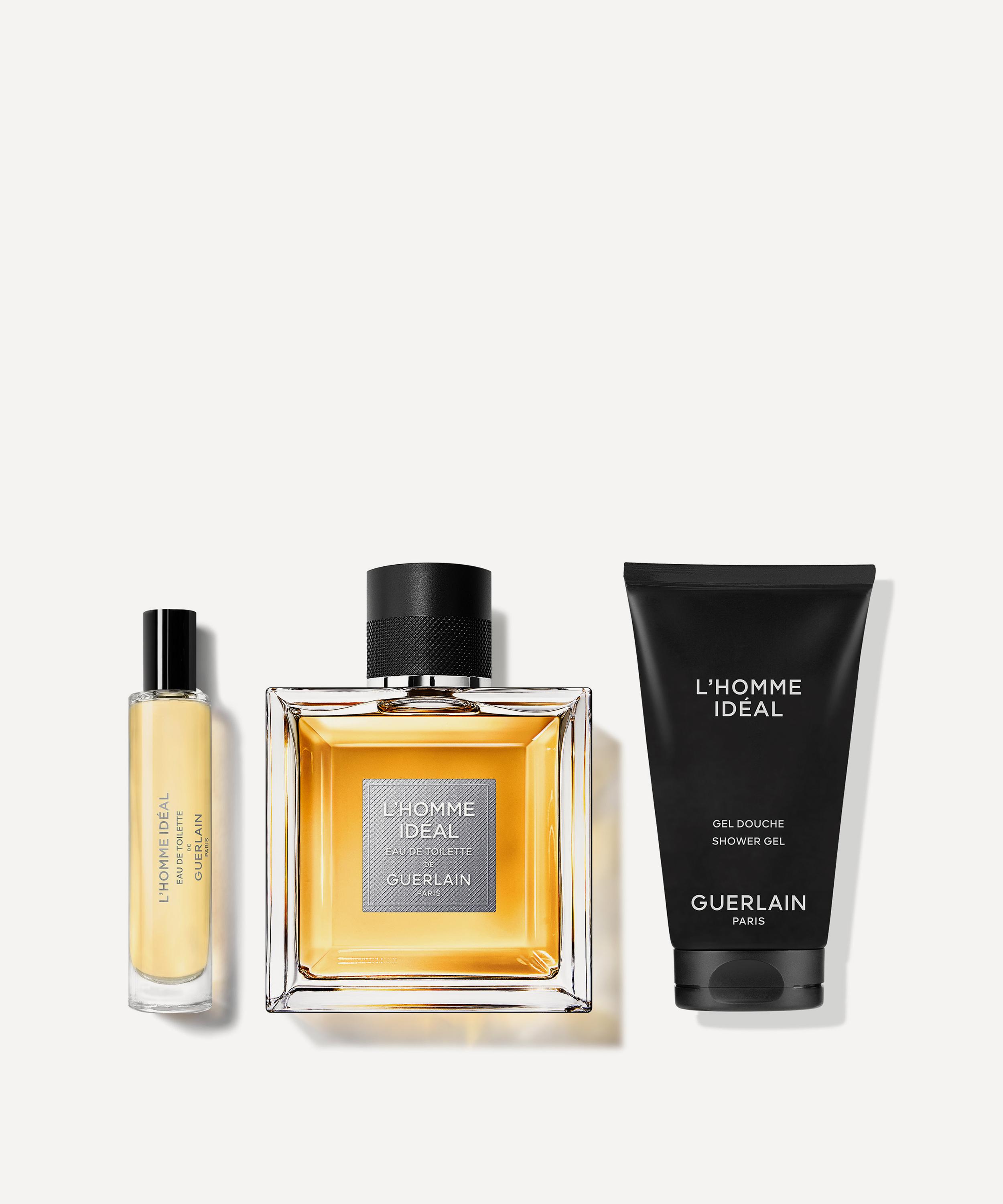 - Includes: L’Homme Idéal de Guerlain Paris Eau de Toilette 10ml, L’Homme Idéal de Guerlain Paris Eau de Toilette 100ml, and L’Homme Idéal de Guerlain Paris Shower Gel 75ml