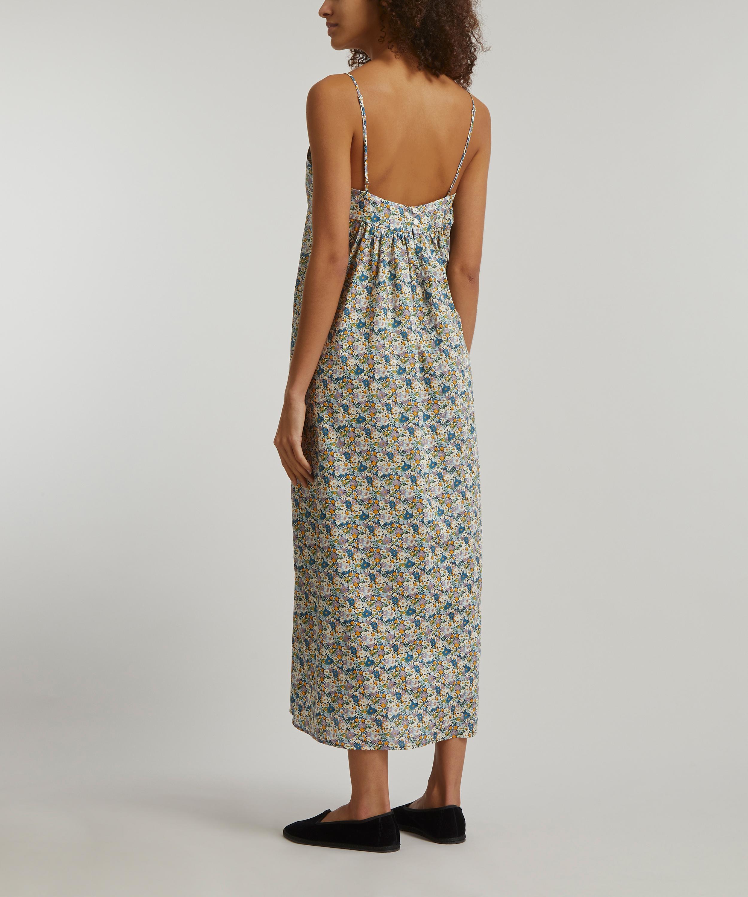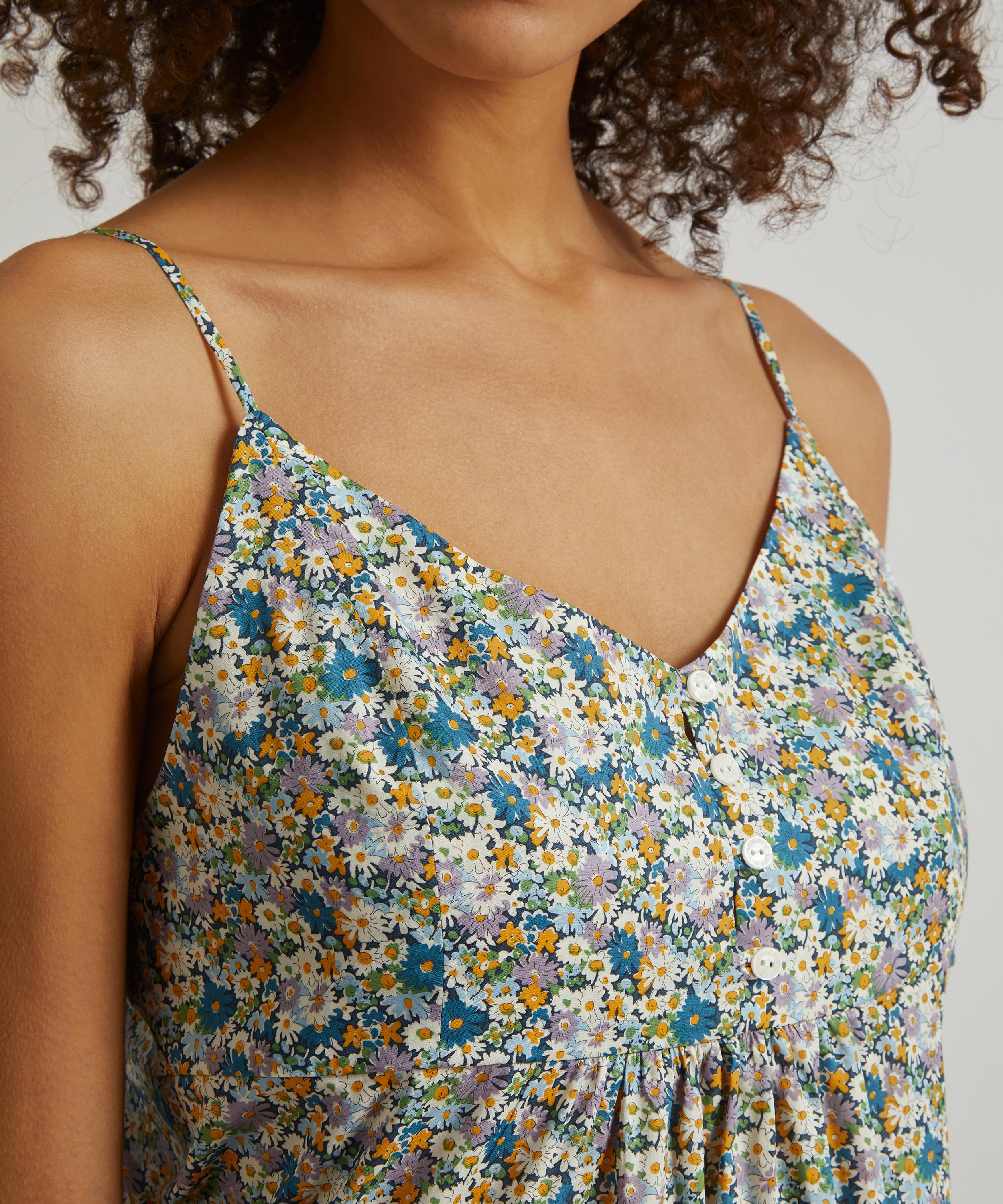 Tana is a true Liberty signature – a light, fluid revelation of a fabric that we’ve been perfecting for over a century, ultra-smooth to the touch and ideal for keeping cosy yet cool at night. Finished with adjustable spaghetti straps and button fastenings at the front and back, this midi length women’s chemise nightie spotlights our Libby print - a layout of dense, simplified daisies, drawn with a very fine outline. Originally hand painted during the 1930s and printed at Liberty’s Merton print works, this all-over repeat pattern pays homage to the most quintessential Liberty floral style.
