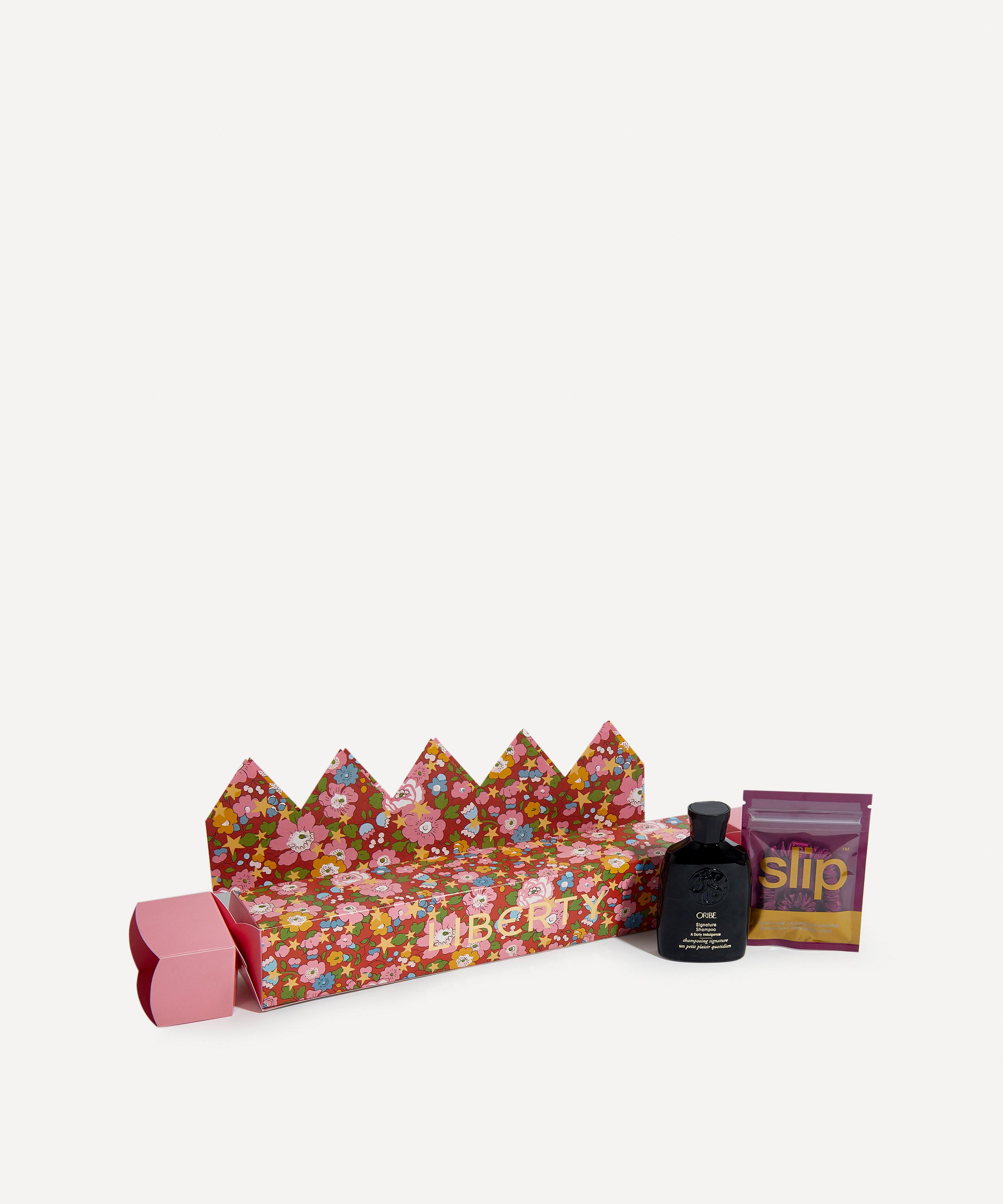 - Hair Care cracker includes: Slip Pure Silk Skinny Scrunchie, Oribe Signature Shampoo 75ml and a Liberty Betsy Star party paper hat