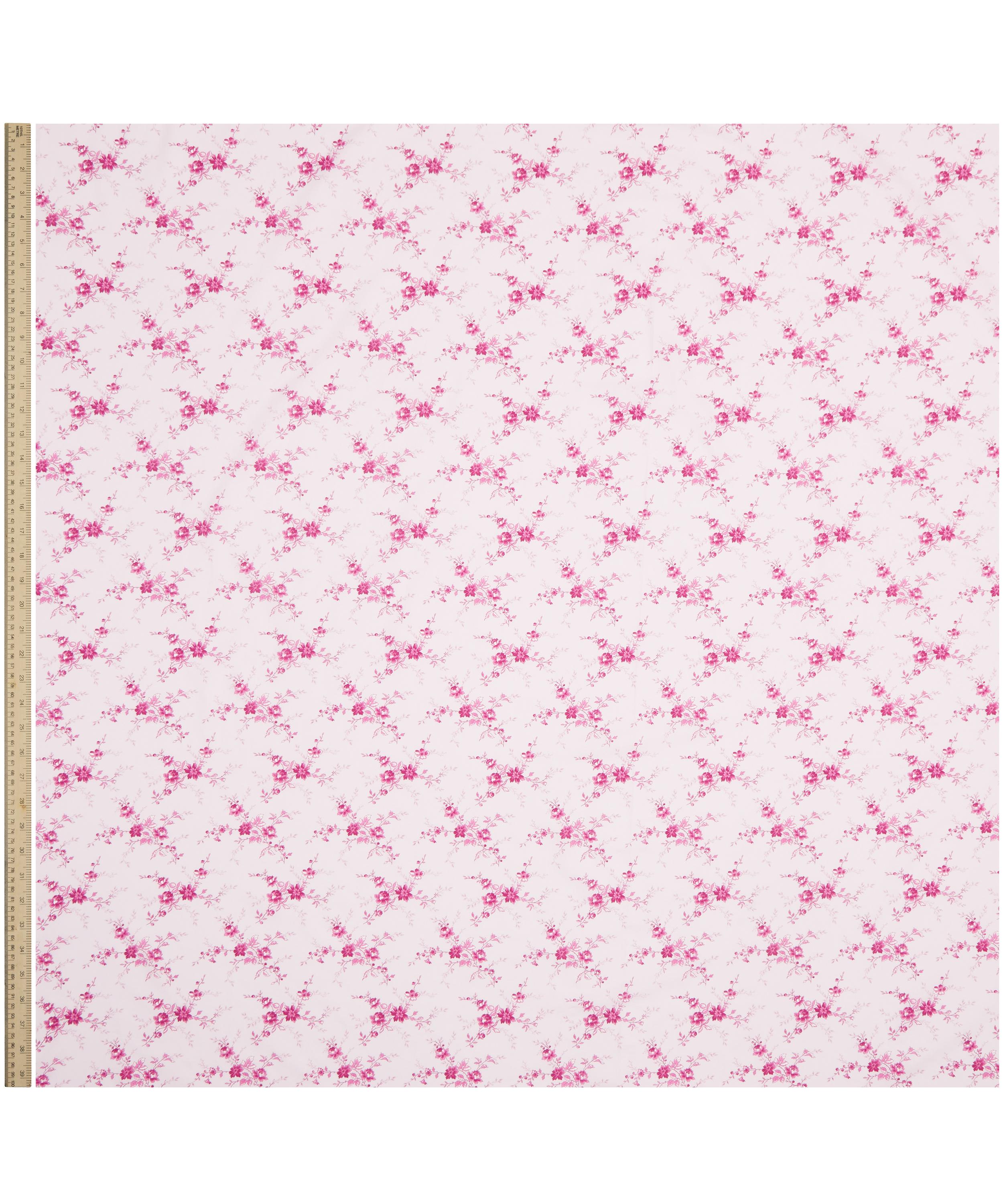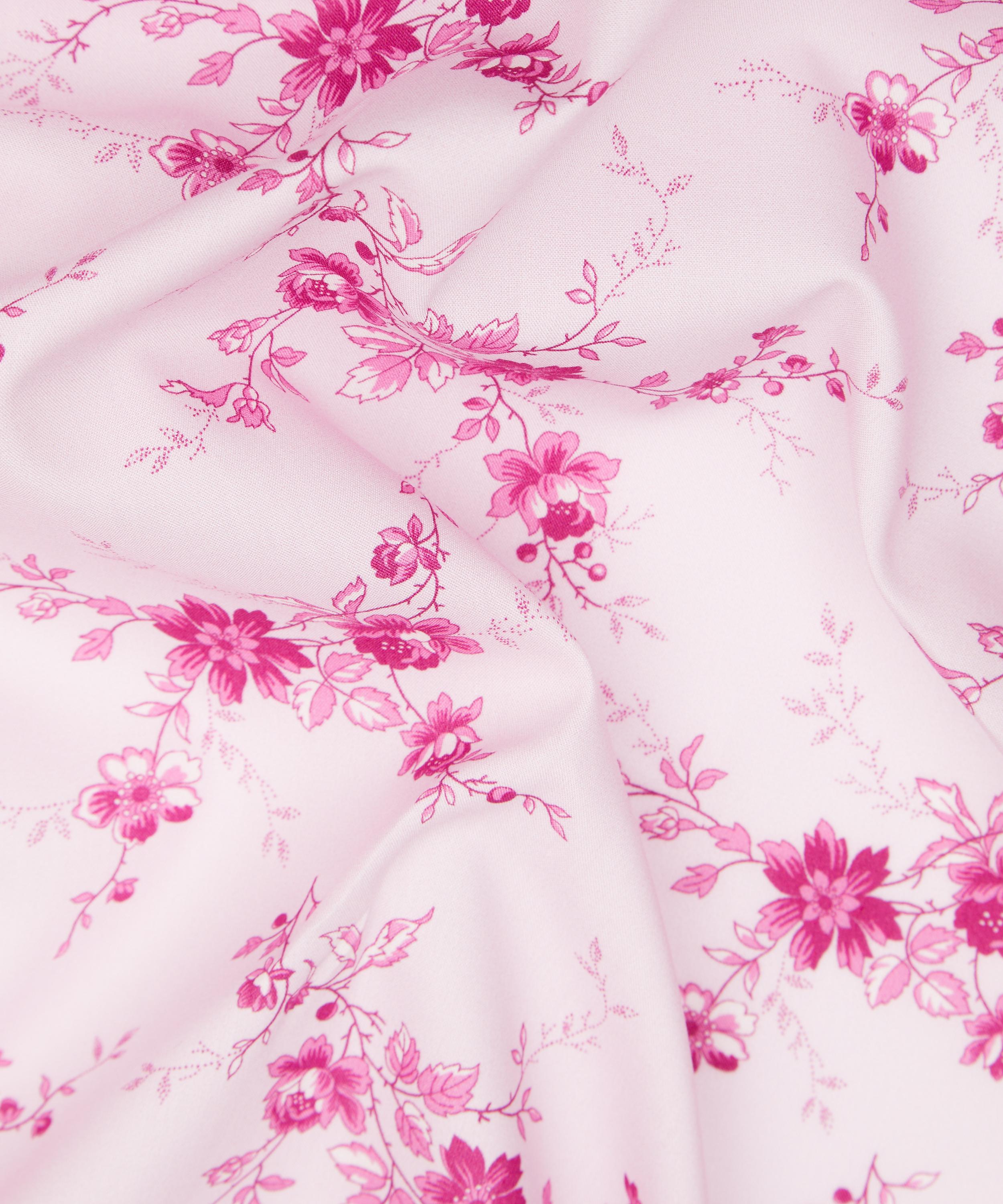 Adapted from a selection of 1860s fabrics found in an archival Liberty book, this charming pattern brims with elaborate floral motifs emphasised by intricate textures. Emulating the effect of copperplate printing widely used during the middle of the 18th century and rendered in crisp, precise outlines, its wispy sprays form loosely undulating trellises embellished with roses, berries, and pinks.