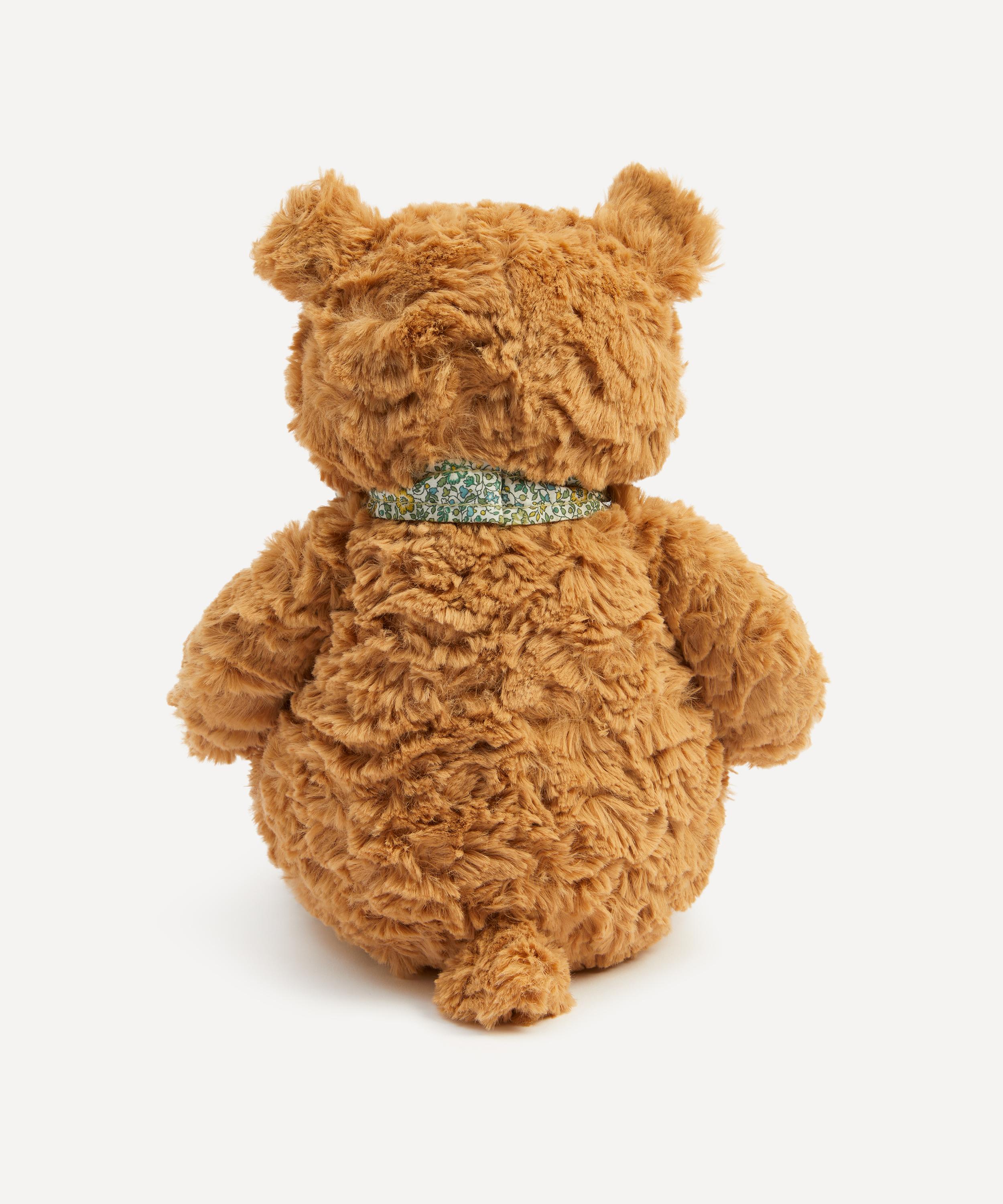 This snuggly toy makes the perfect furry friend for your child – designed to be cuddled into from birth, Bartholomew Bear makes a charming and adorable addition to any playroom. With rounded ears, embroidered nose and kind eyes, he is the best naptime partner – his brown fur is irresistibly soft and will provide comfort to your little one as they grow up. Finished with a cute bow, printed ears and feet in Liberty Fabrics’ Kate and Millie design, take him with you on weekends away, or keep at home for endless hours of laughter and cuddles.