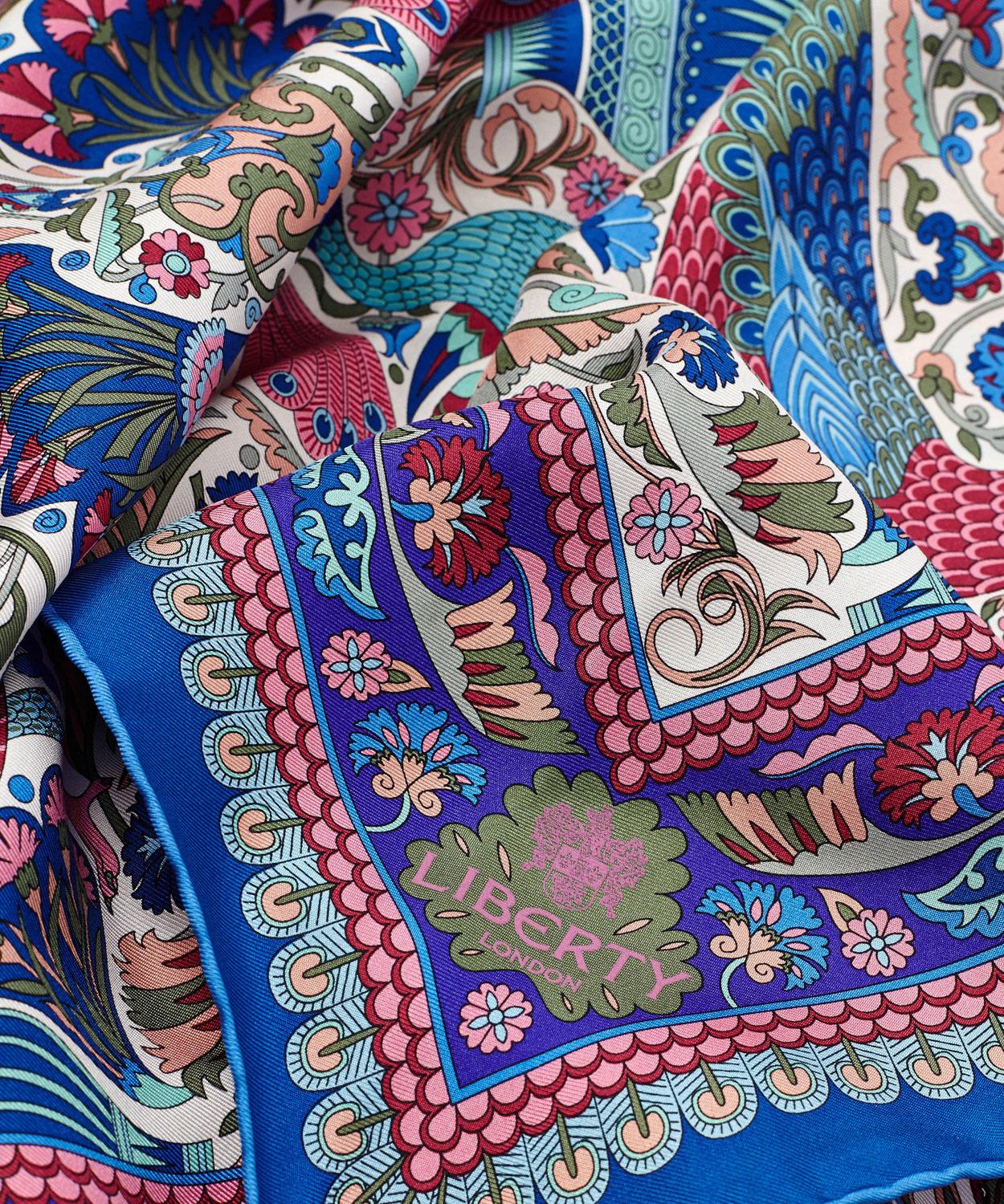 Liberty London Peacock Garden 70 x 70 Silk Twill Scarf