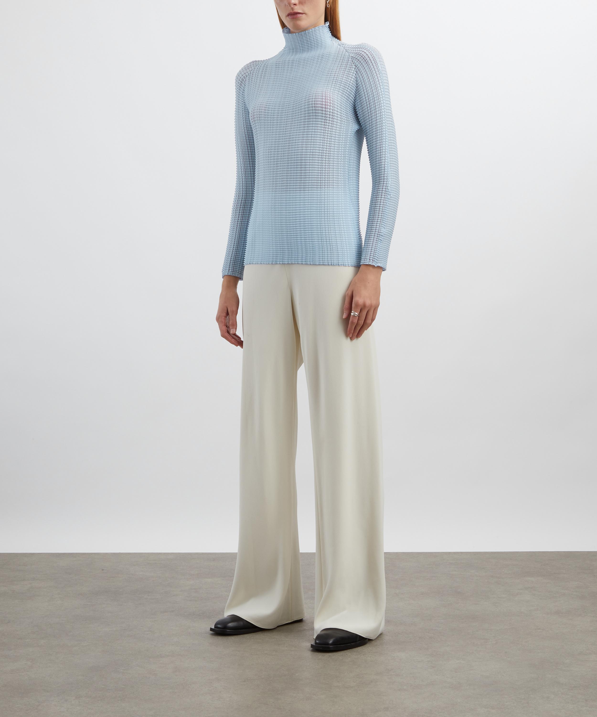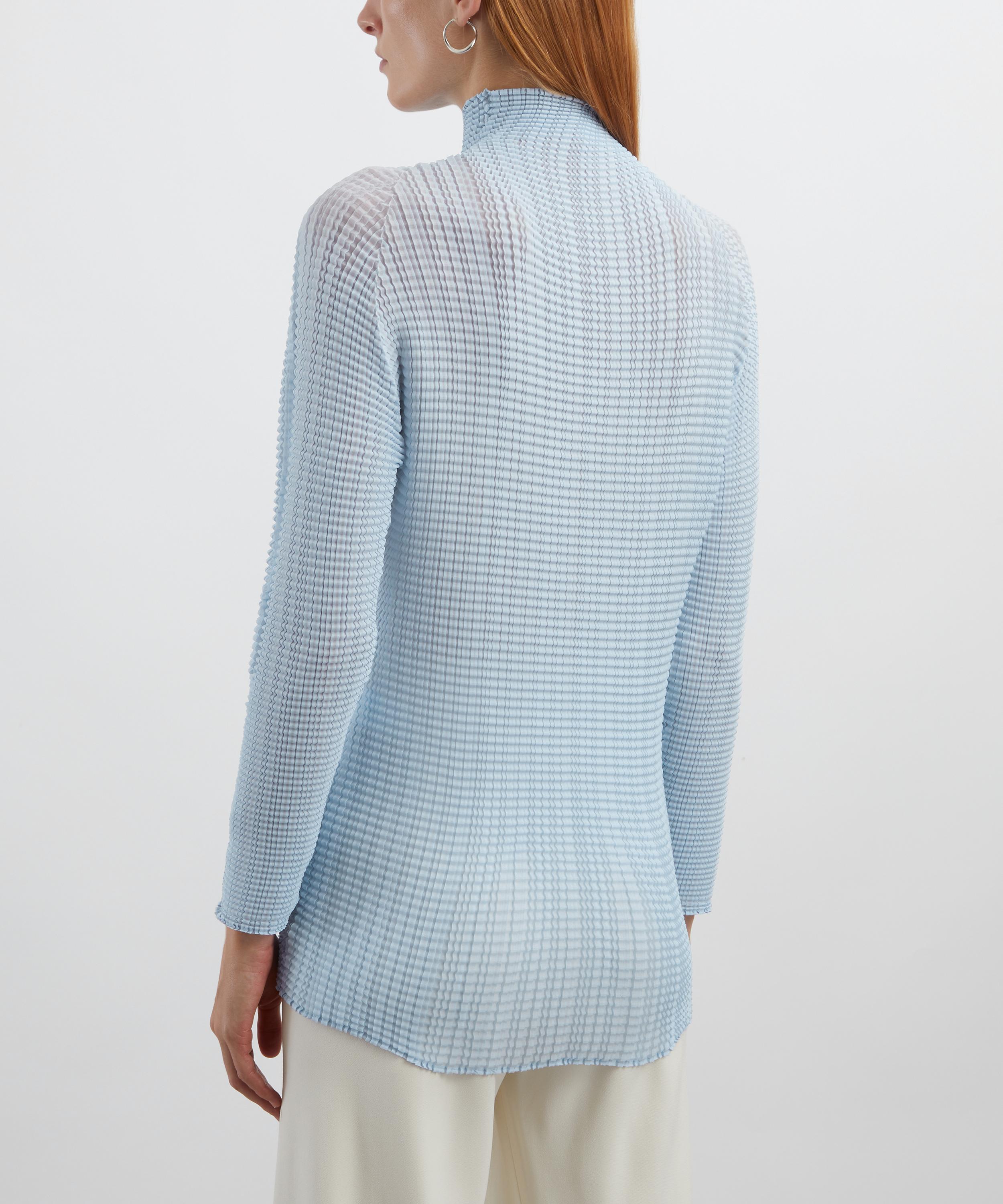 Light Blue Wooly Pleats-58 High-Neck Top