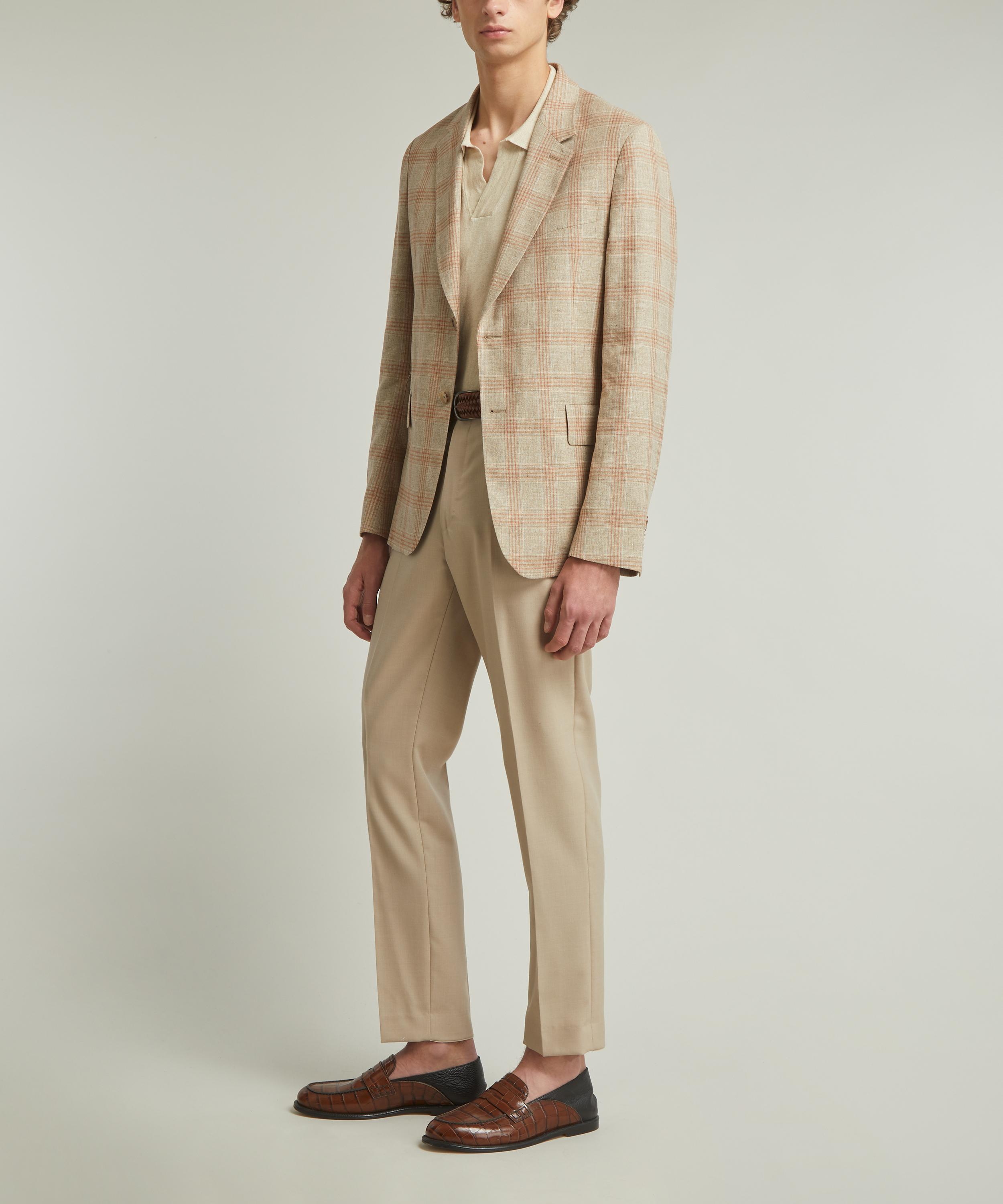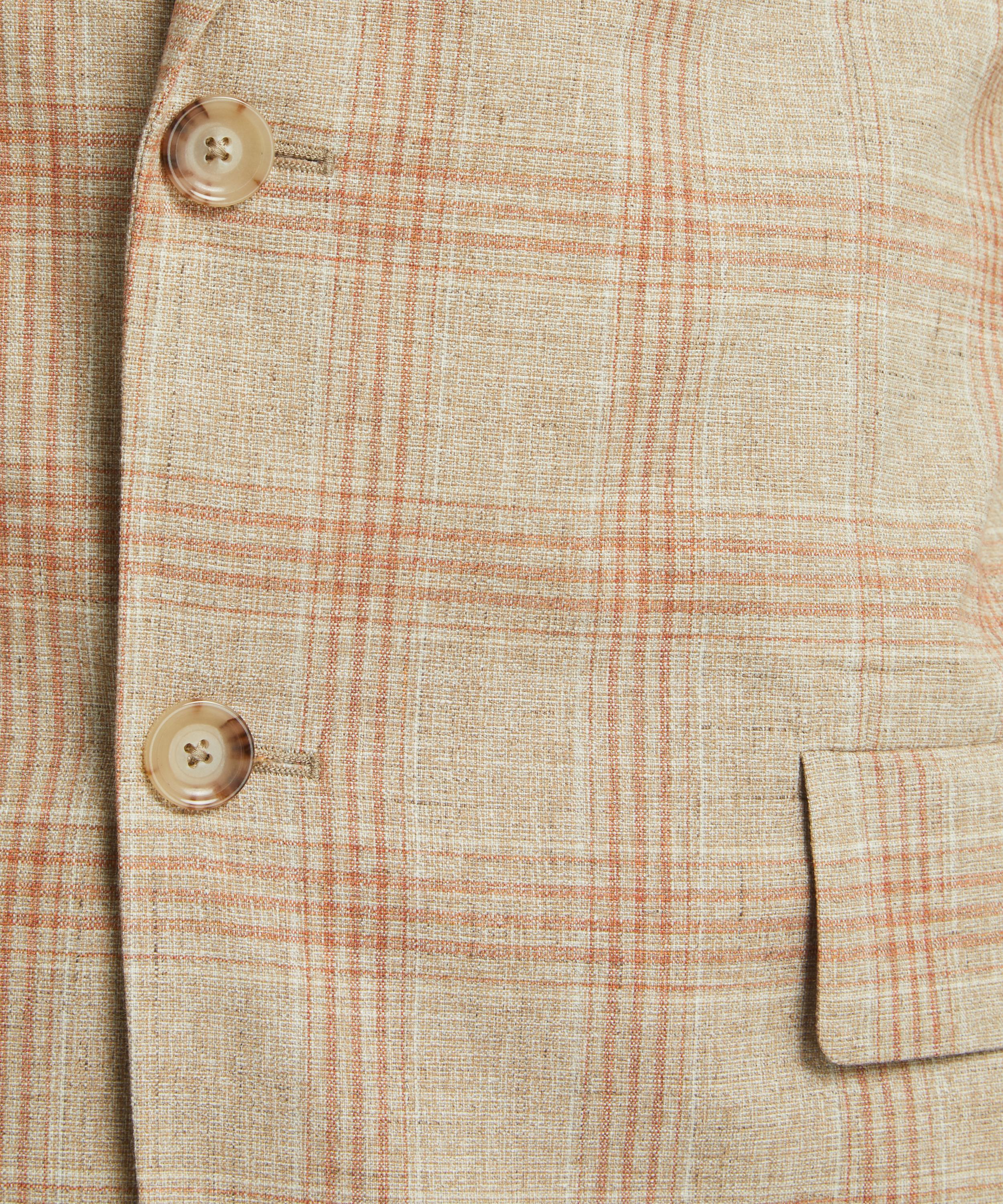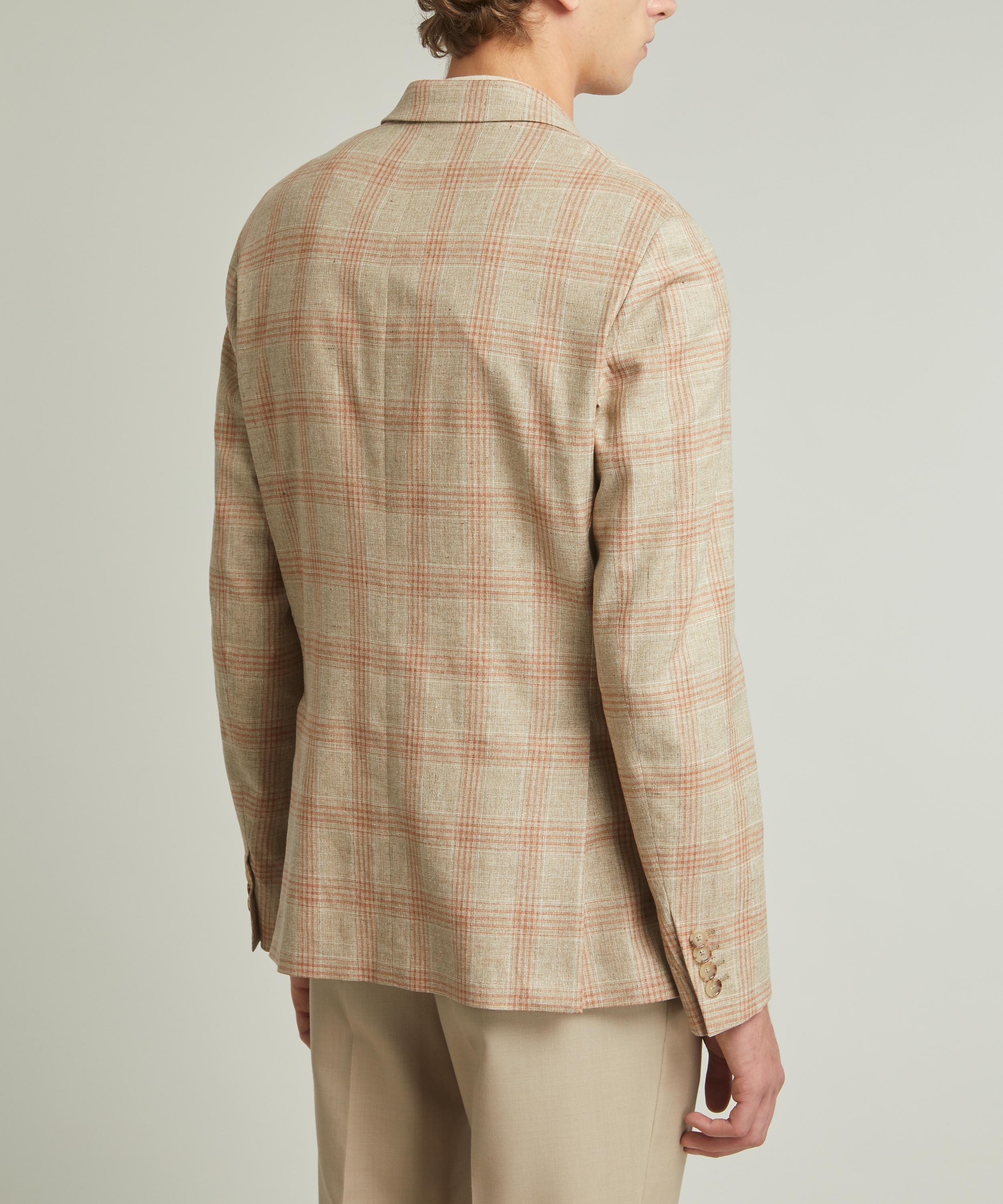 Made from a premium blend of cotton, wool, linen and silk, this sophisticated blazer displays a pink and red check pattern throughout. Finished with tortoiseshell buttons, flap pockets, and a single welt pocket to the chest, it’s cut with sleek silver buggy lining for added breathability.