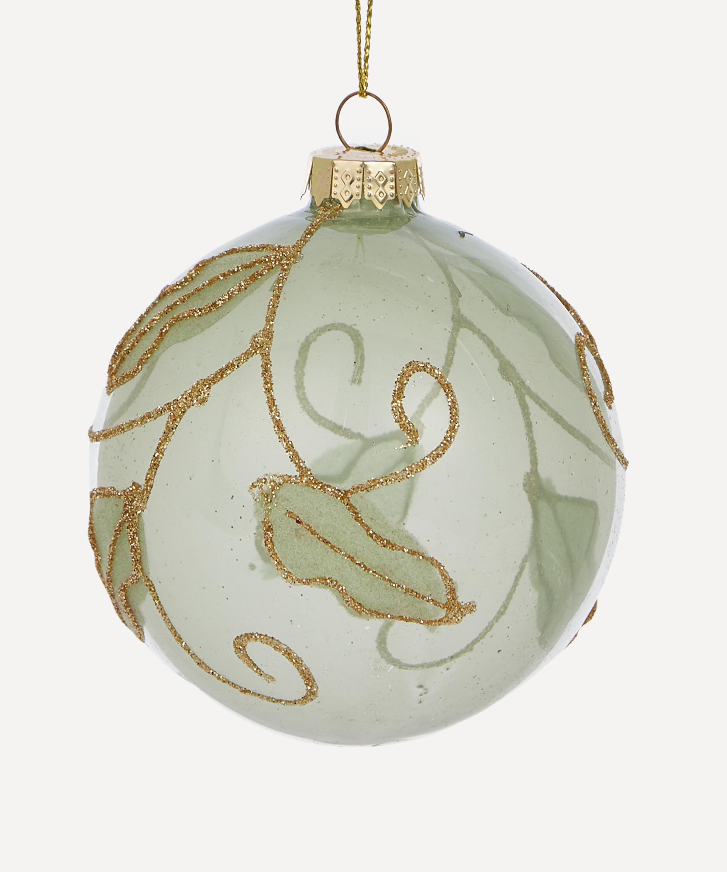 Curate a contemporary Christmas collection with this striking tree ornament. A luxurious option for those seeking a treasured heirloom piece to add to their festive collection, the bauble is crafted from glass to a classic spherical silhouette with seasonal leaf detailing.