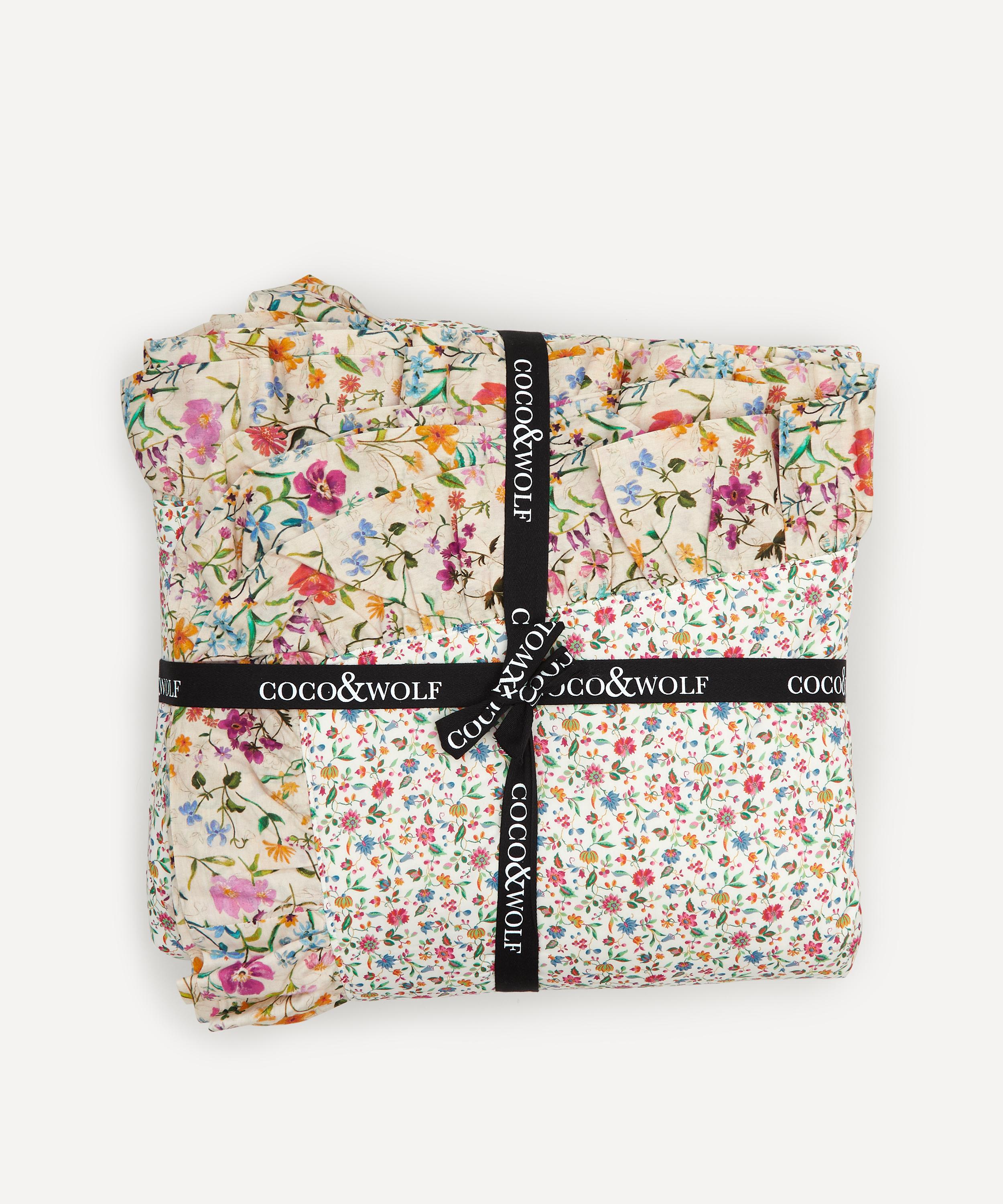 Somerset-born bedding brand Coco & Wolf is renowned for its Liberty print bedspreads, duvets and cushions, crafted from our inimitable Tana Lawn™ cotton. Beautifully trimmed with gathered frill edging, this king-size bedspread is dressed in Liberty Fabrics’ Linen Garden and Luna Belle prints from our Autumn/Winter 2021 collection, The New Collectables. Lined with hypoallergenic cotton wadding to facilitate blissful slumbers, it has a silky hand-feel that acts like second skin, making it perfect for keeping toes toasty and preventing draughts during the cooler months. Drape over the foot of the bed or an armchair to bring a hint of Liberty into your bedroom or sitting room.