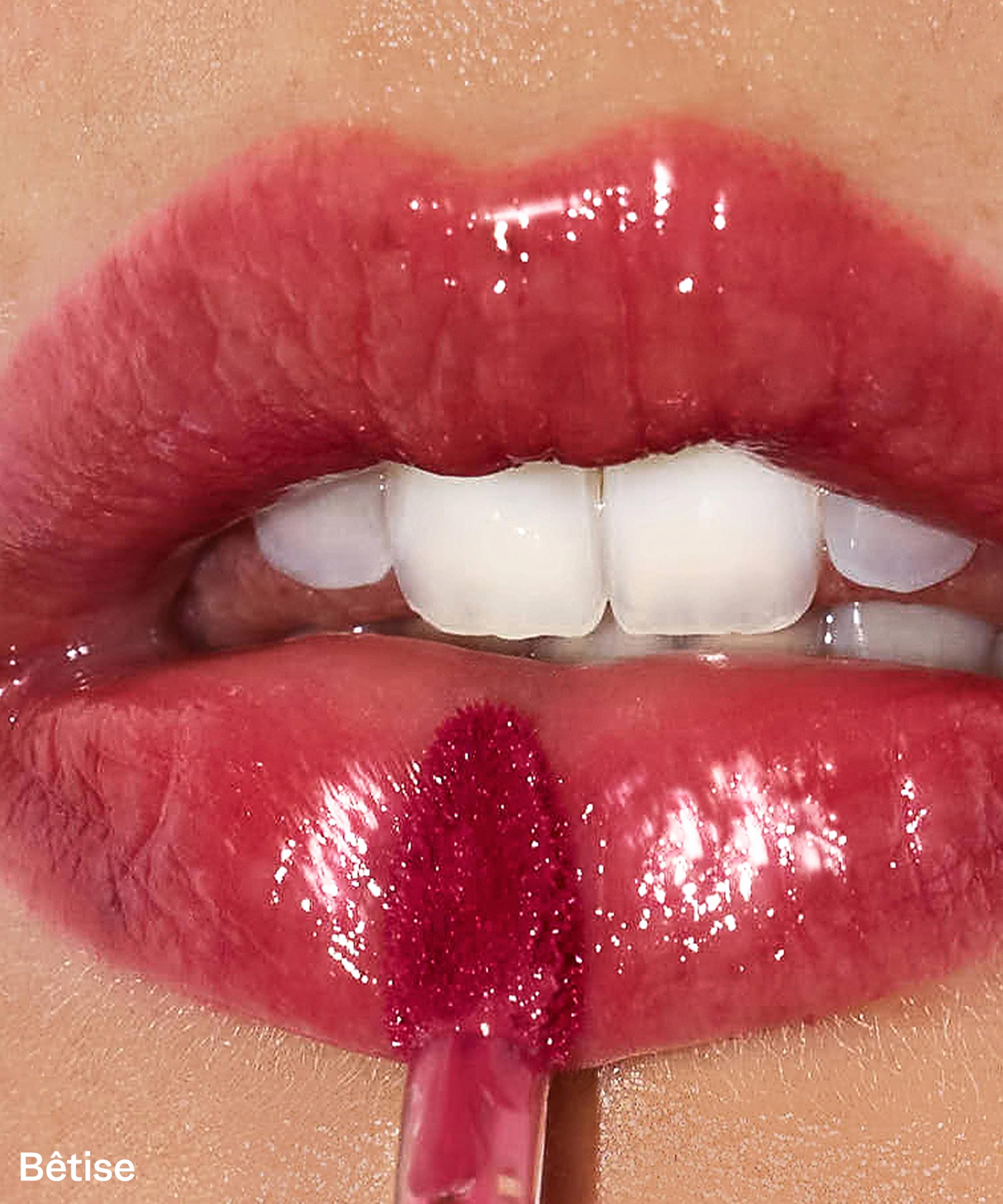 Starting at the Cupid’s bow, use the applicator to coat the lips, following their natural volume for a plumper look. This technique creates a fuller appearance. Layer multiple coats for buildable colour pay-off.