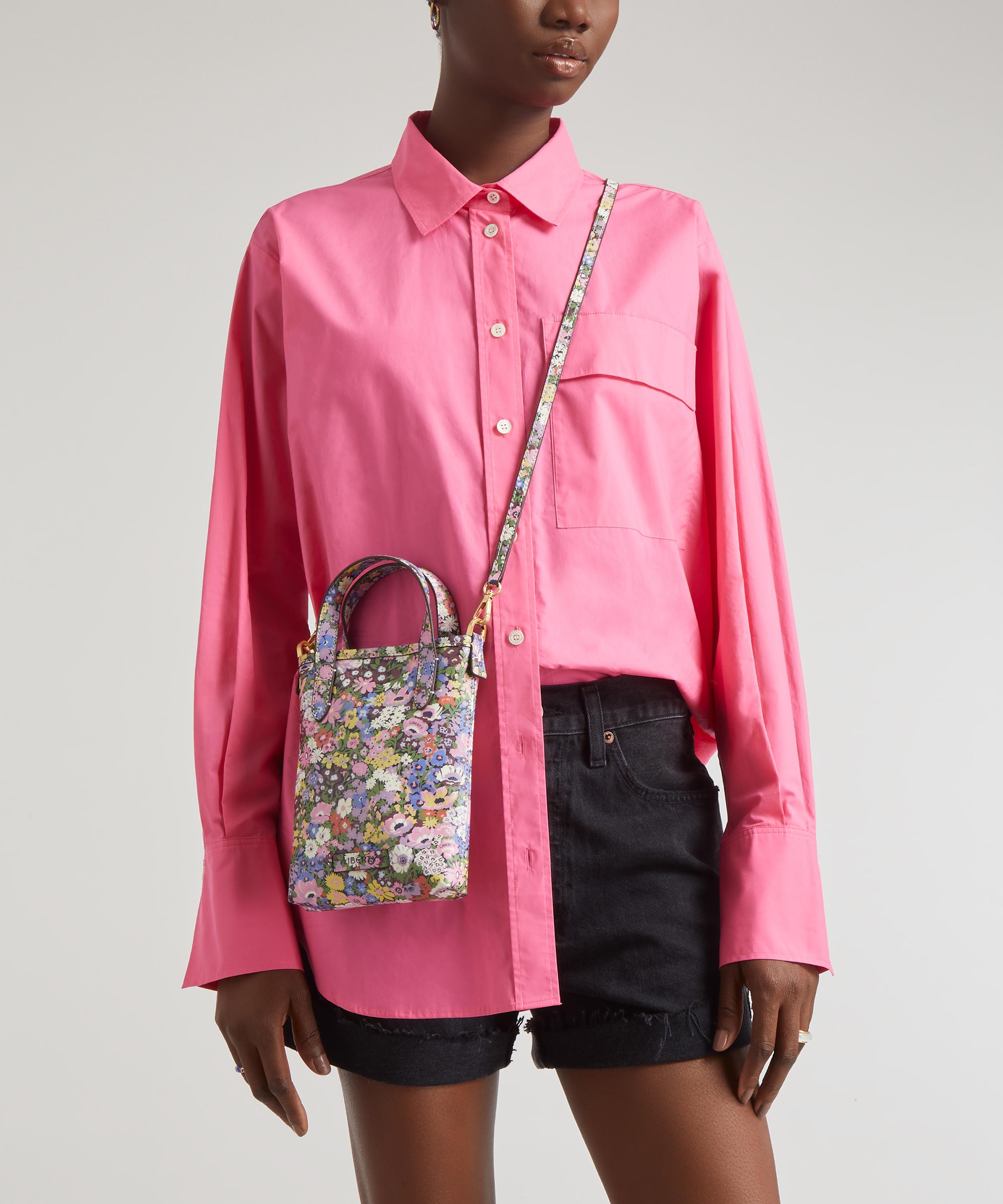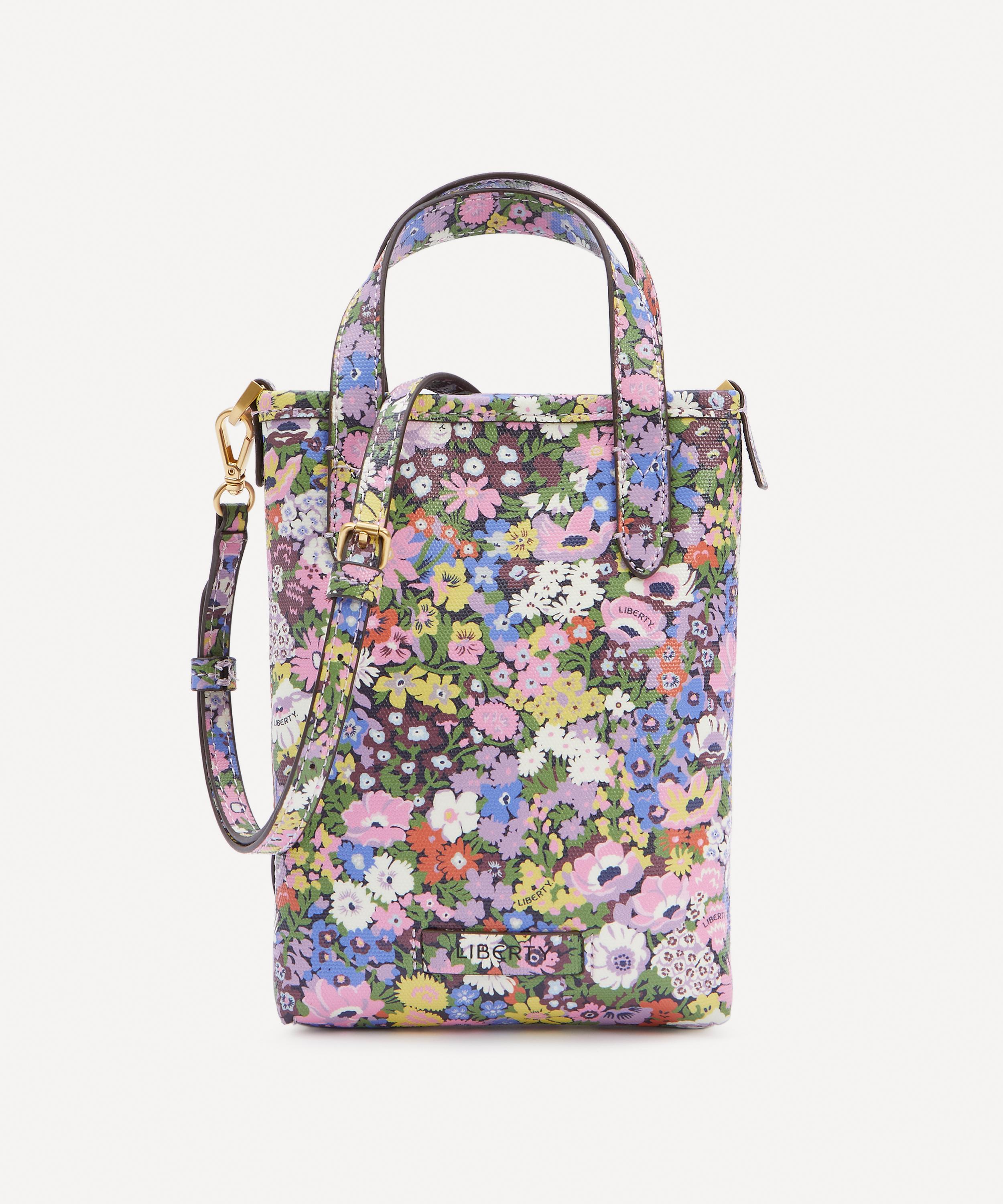Crafted from PVC cotton, this mini crossbody bag features a tote-inspired bucket silhouette, dressed in our iconic Thorpeness print. With an adjustable strap it offers a versatile wearability, meanwhile the magnetic closure and internal slip pockets keeps your essentials organised and secure. Proudly finished with Liberty London’s logo tab to the front, this ultra-wearable piece can be worn crossbody, over the shoulder, or carried by the top handle.