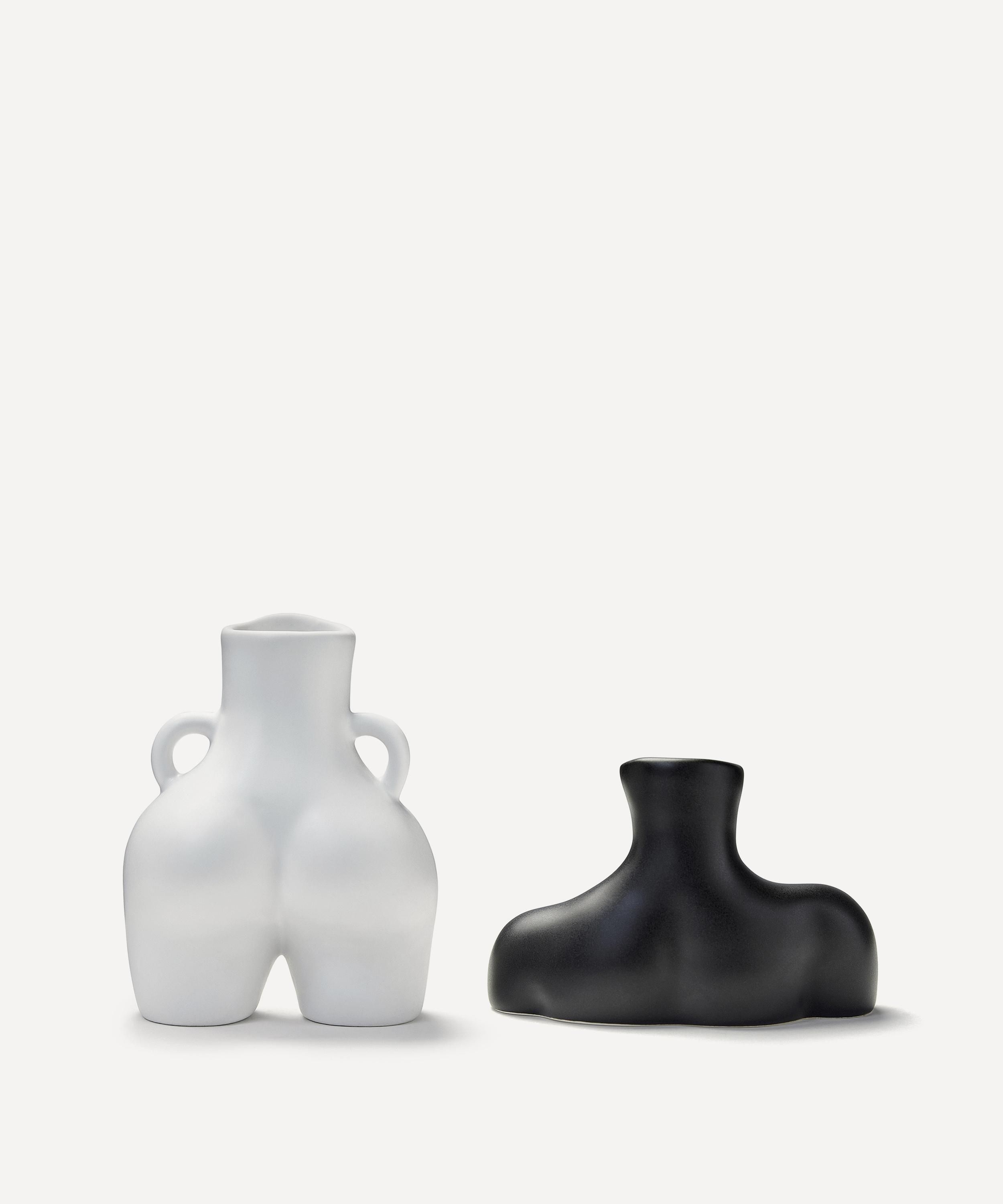 Cult Paris-born, London-based designer Anissa Kermiche brings her signature sense of naughtiness to the world of interior décor. Crafted from earthenware, this set features miniature versions of the best-selling Love Handles Vase and Breast Friend Vase. Complete with matte black and white glazes, these two voluptuous shapes are a lovely little addition to any corner of your house. Use them simply as decoration, or to hold flowers, pens and any other household bits that need a home.