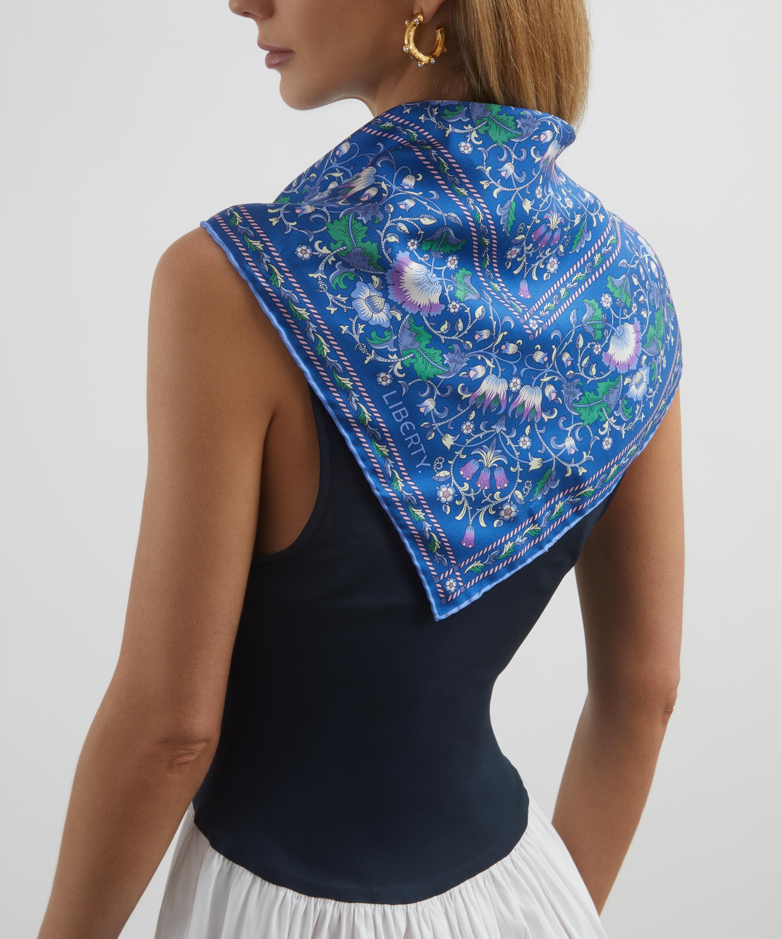 Update your look with a statement piece that is steeped in history; beautifully decorated in Lodden Liberty print, a design from 1884 credited to William Morris. When Morris & Co. closed down in 1939/40, the printers Stead McAlpine bought the original blocks, and Arthur Steward Liberty arranged for permission for a number of Morris designs to be used for Liberty. Here the original design has been transformed into this perfectly petite silk square scarf. Modernise the look by styling it creatively; think knotted onto bag handles, peeking from the neckline of a leather jacket or simply draped open around the neck.