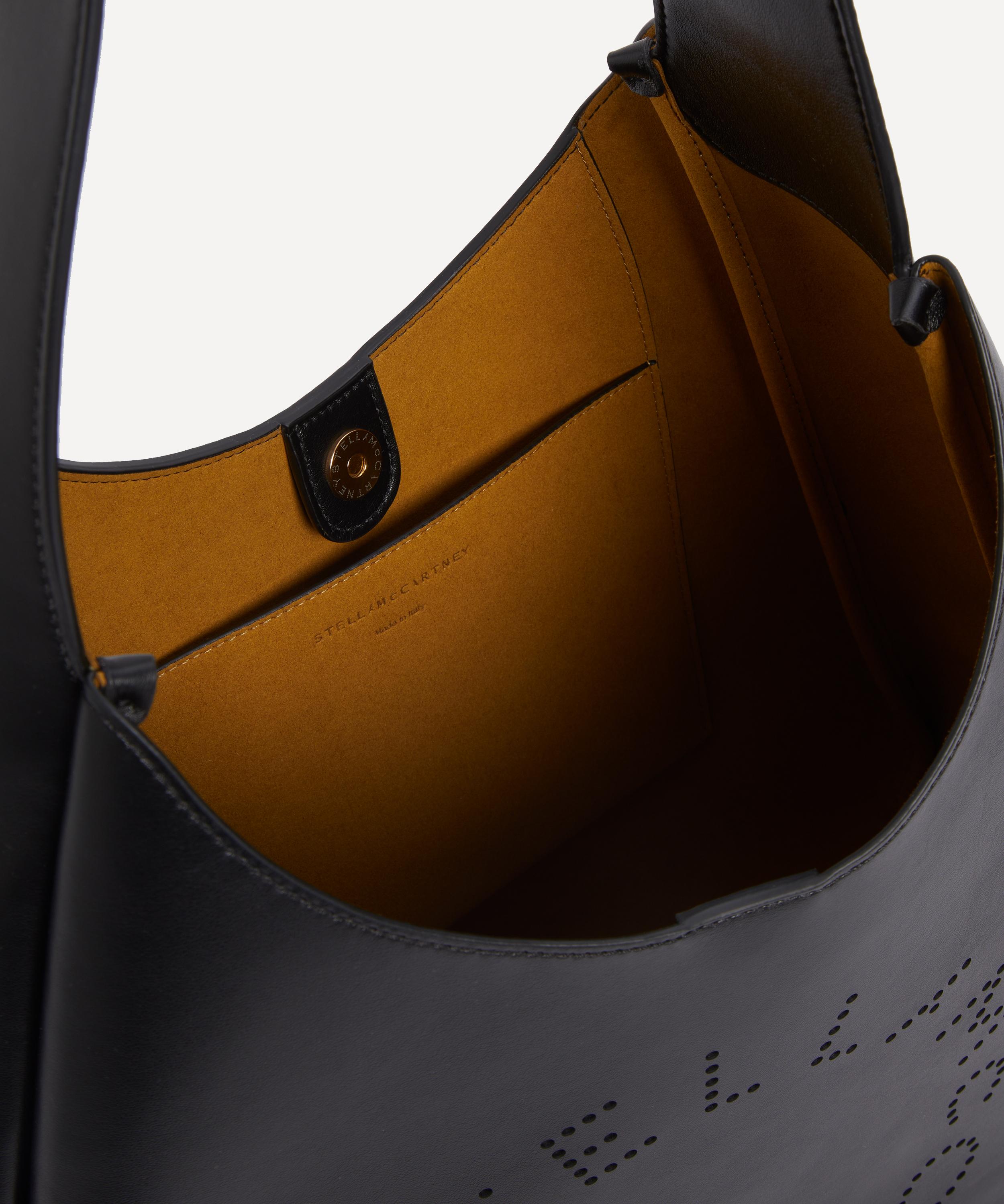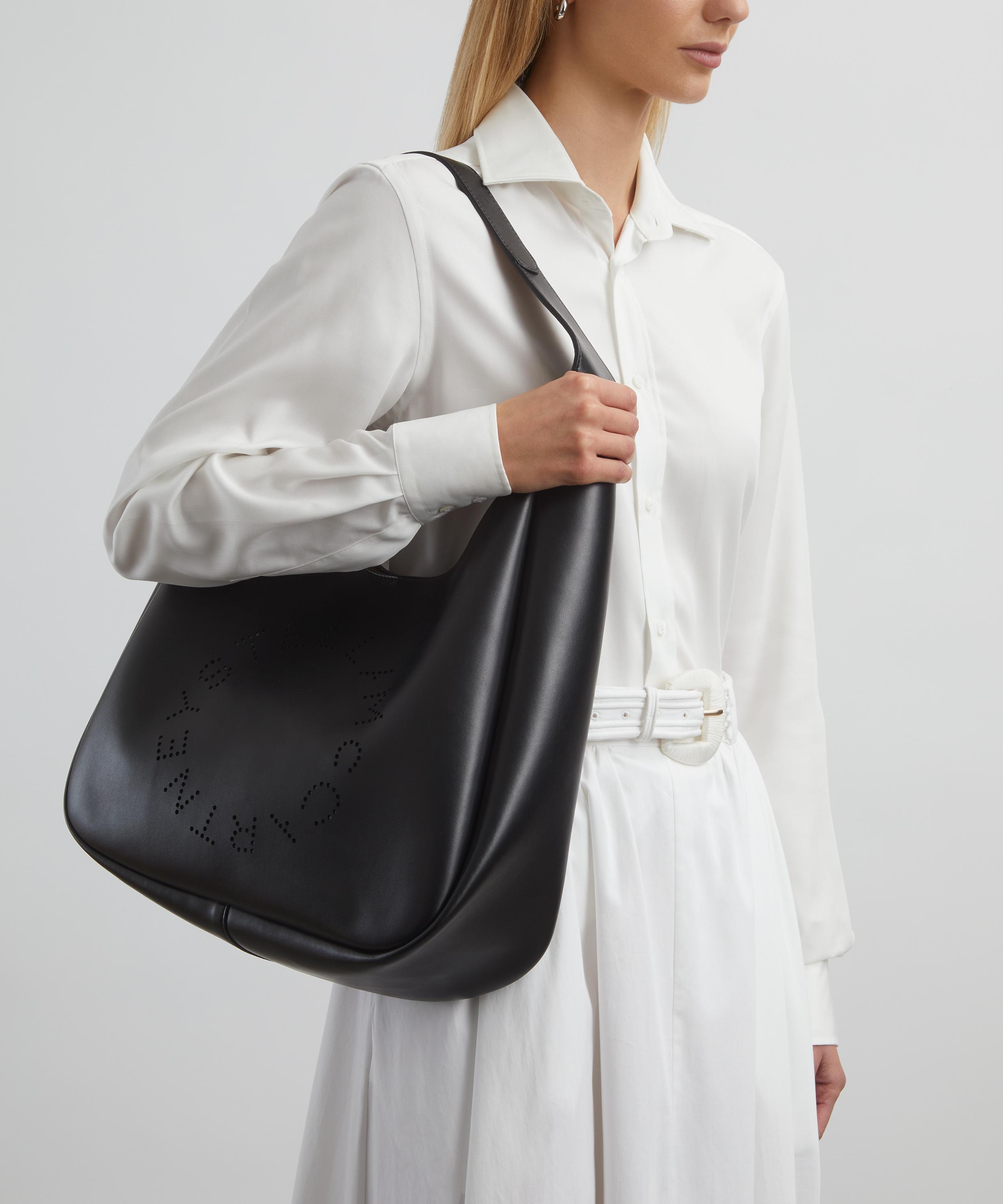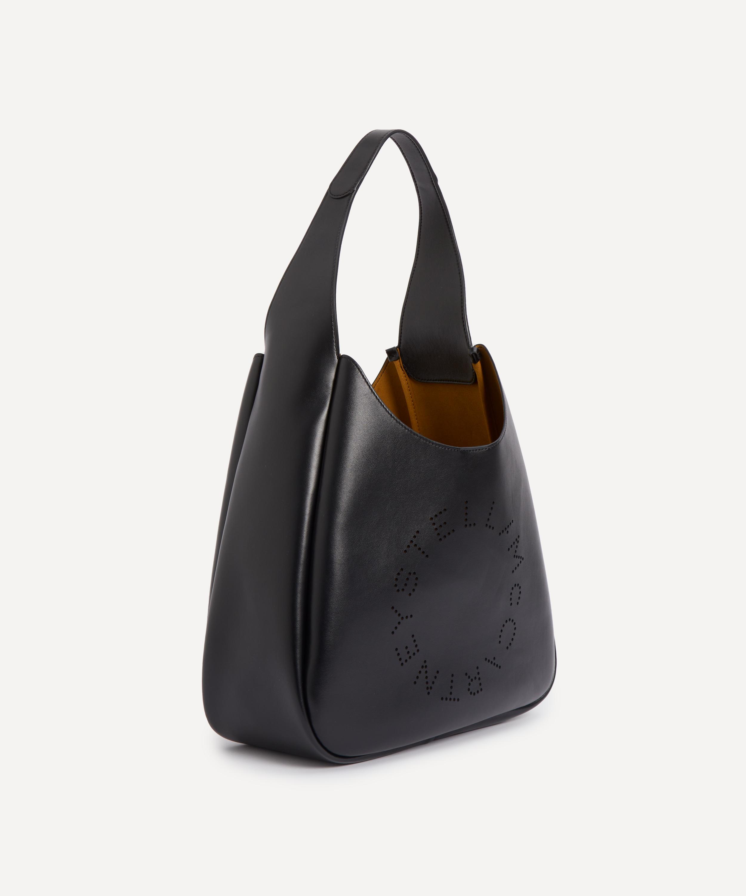 Characterised by a classic slouched silhouette, this hobo bag features an interior complete with a zipped internal pocket, magnetic clasp fastening and flat top handle, and is complete with the distinctive perforated brand logo that appears throughout the Stella Logo collection.
