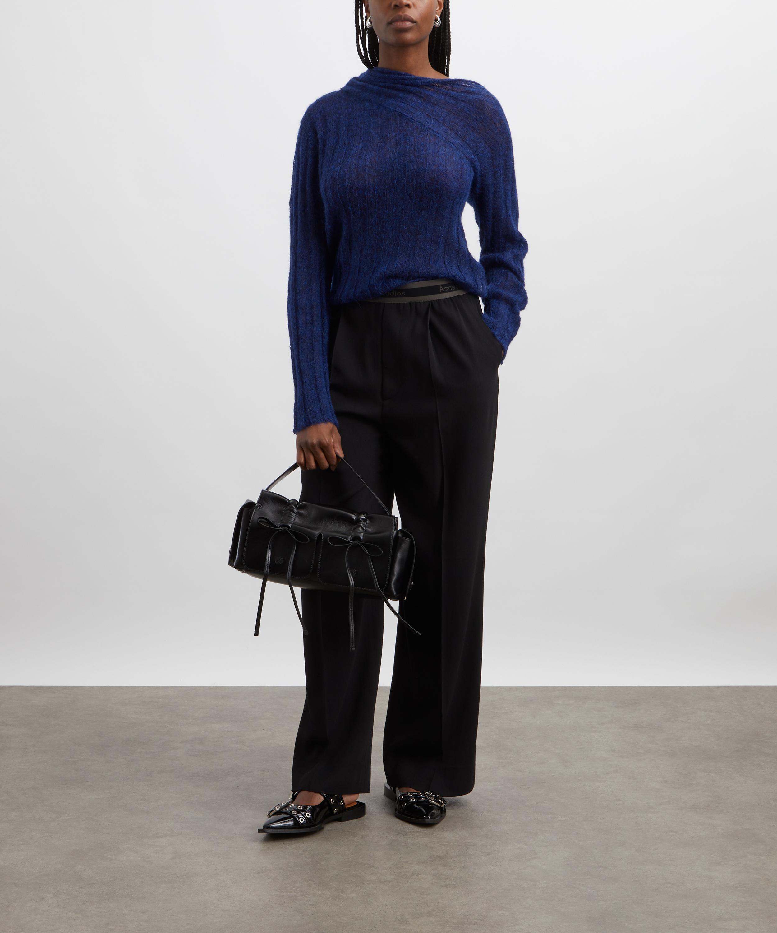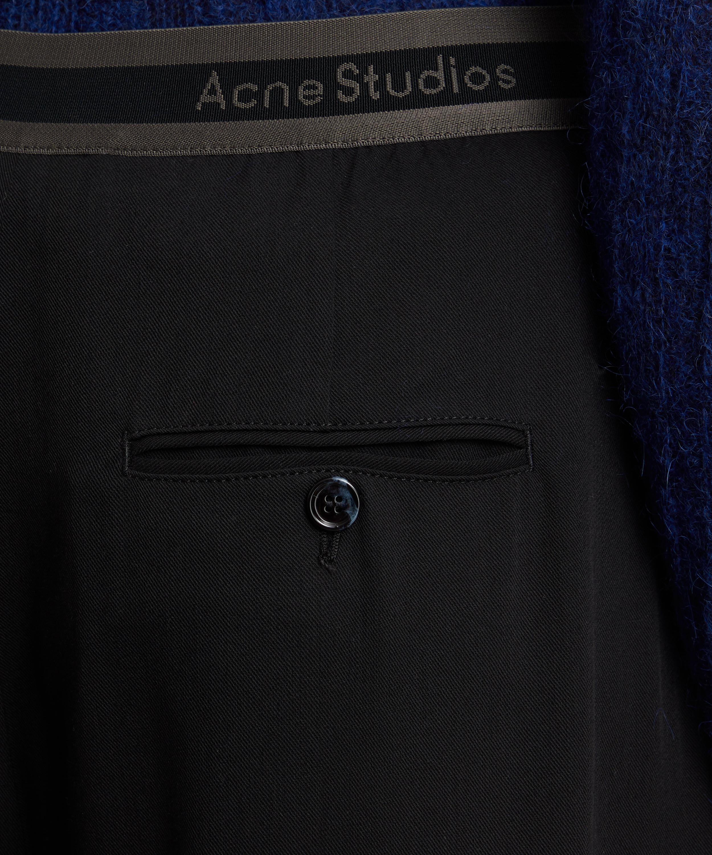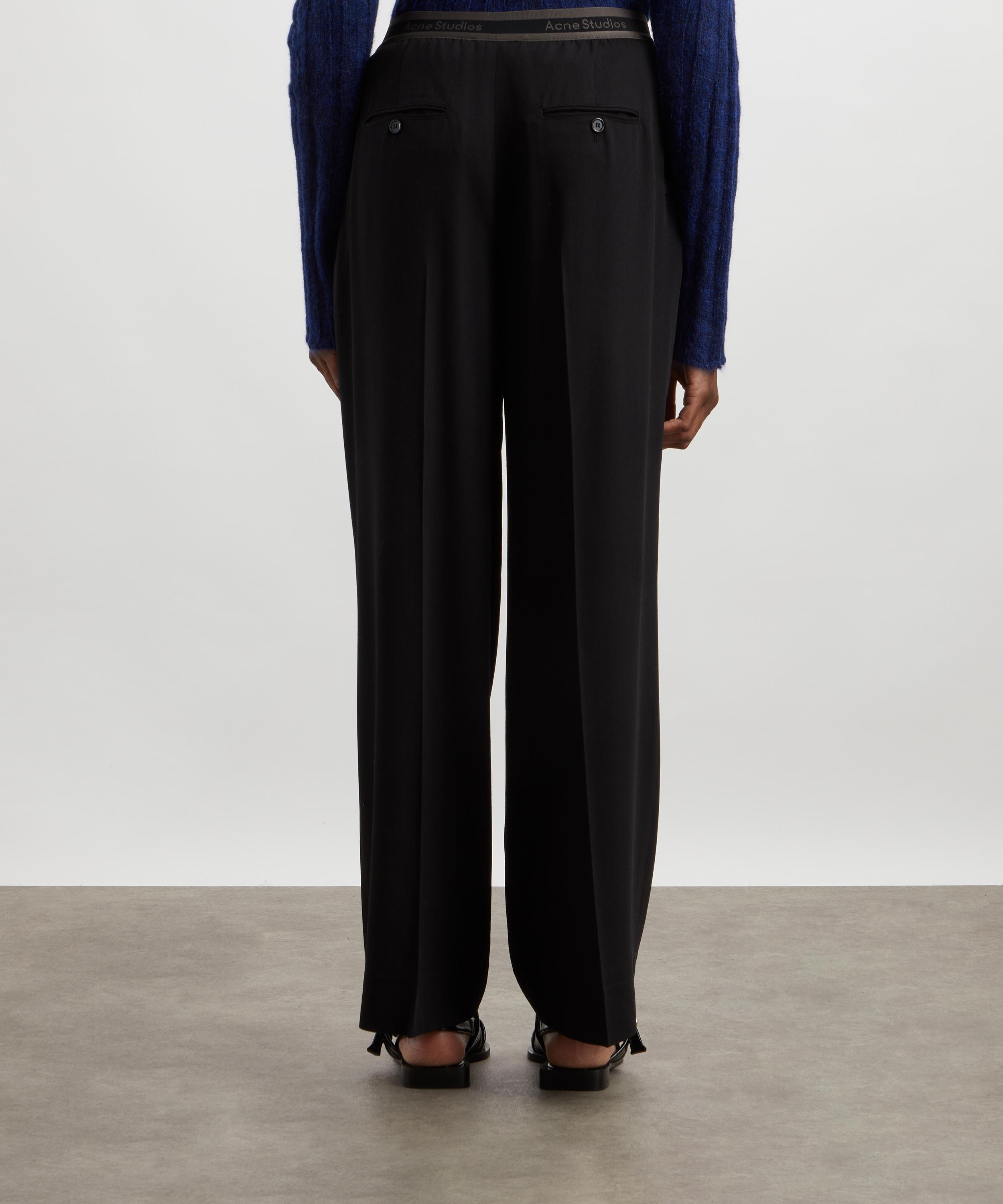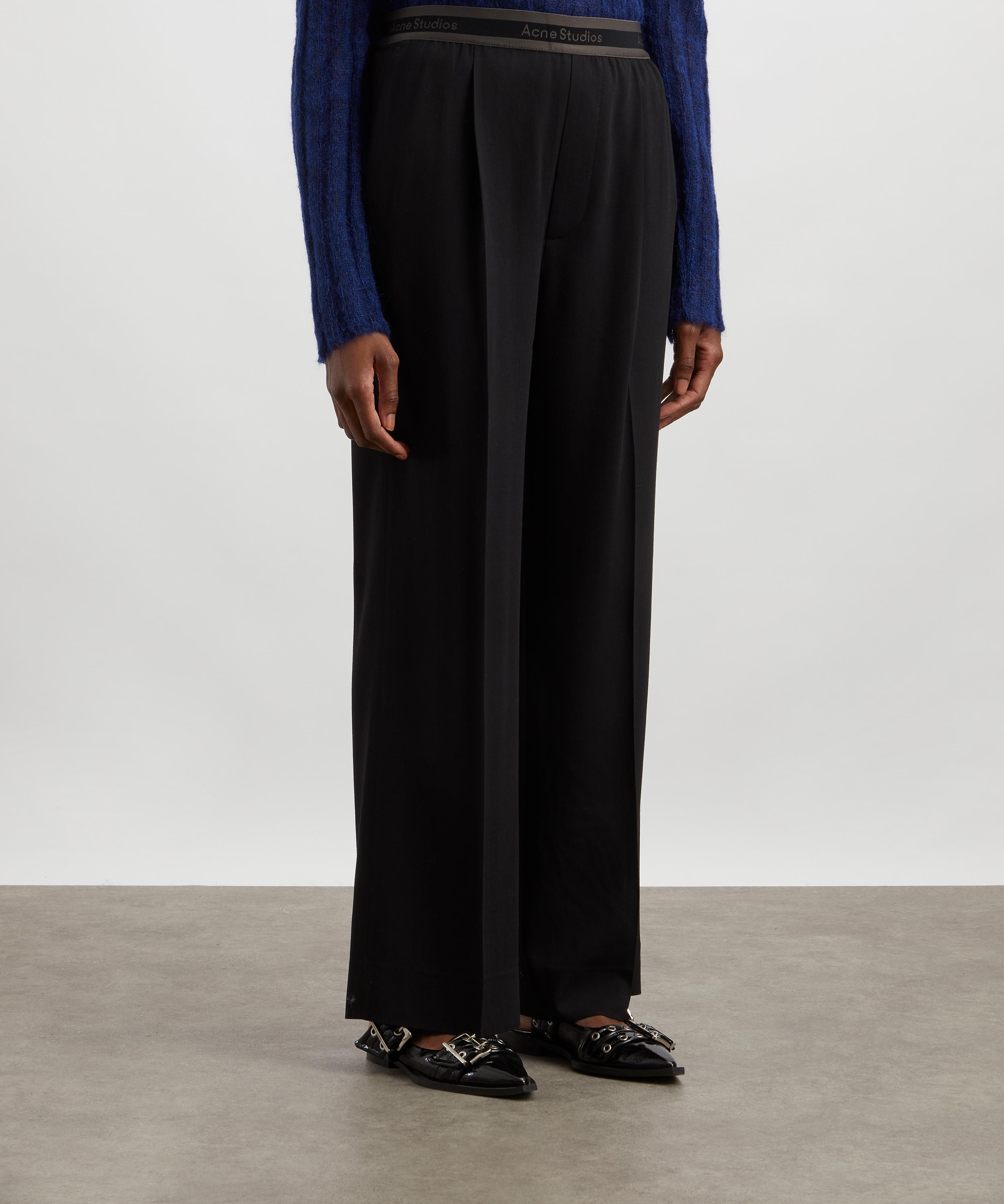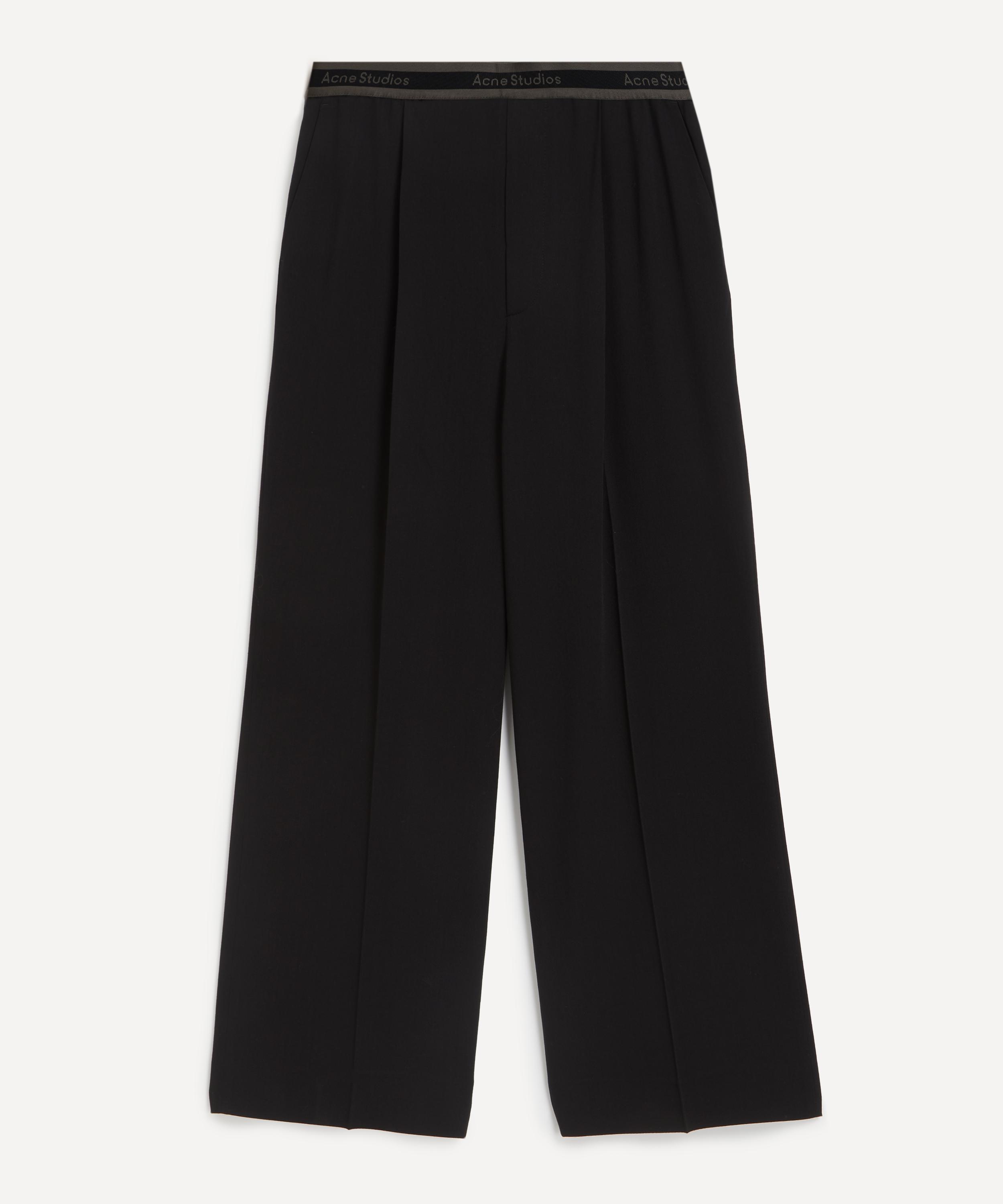 Crafted from a luxurious wool-blend twill for a fluid drape, these relaxed fit trousers boast a wide leg silhouette and mid-rise waist, detailed with a logo tape elasticated waistband and pleat details that accentuate the long length.