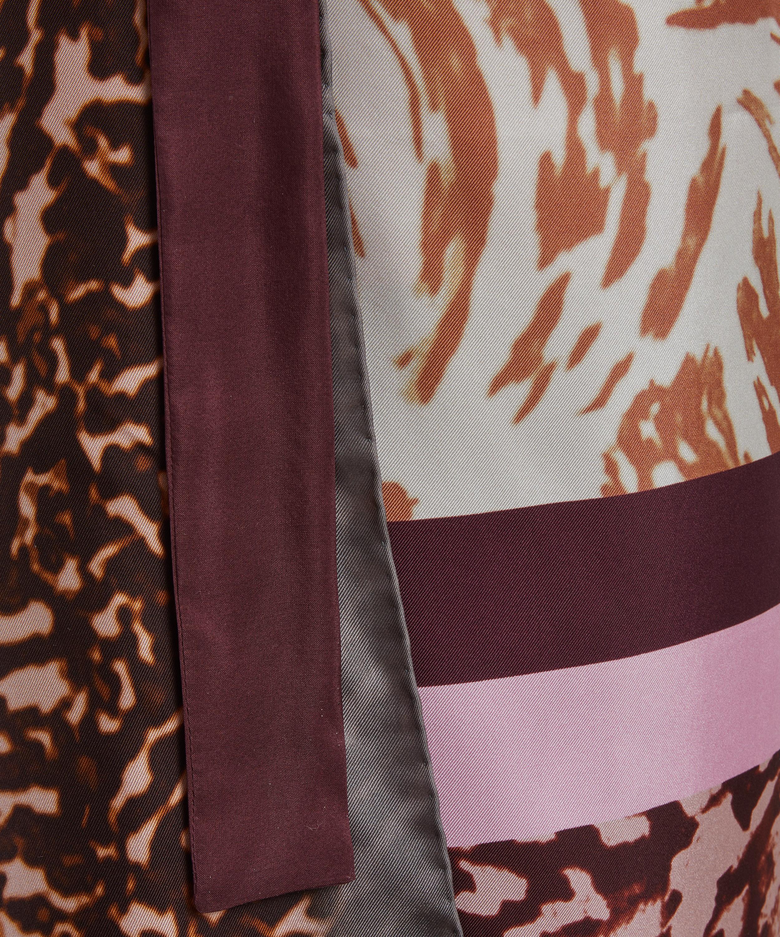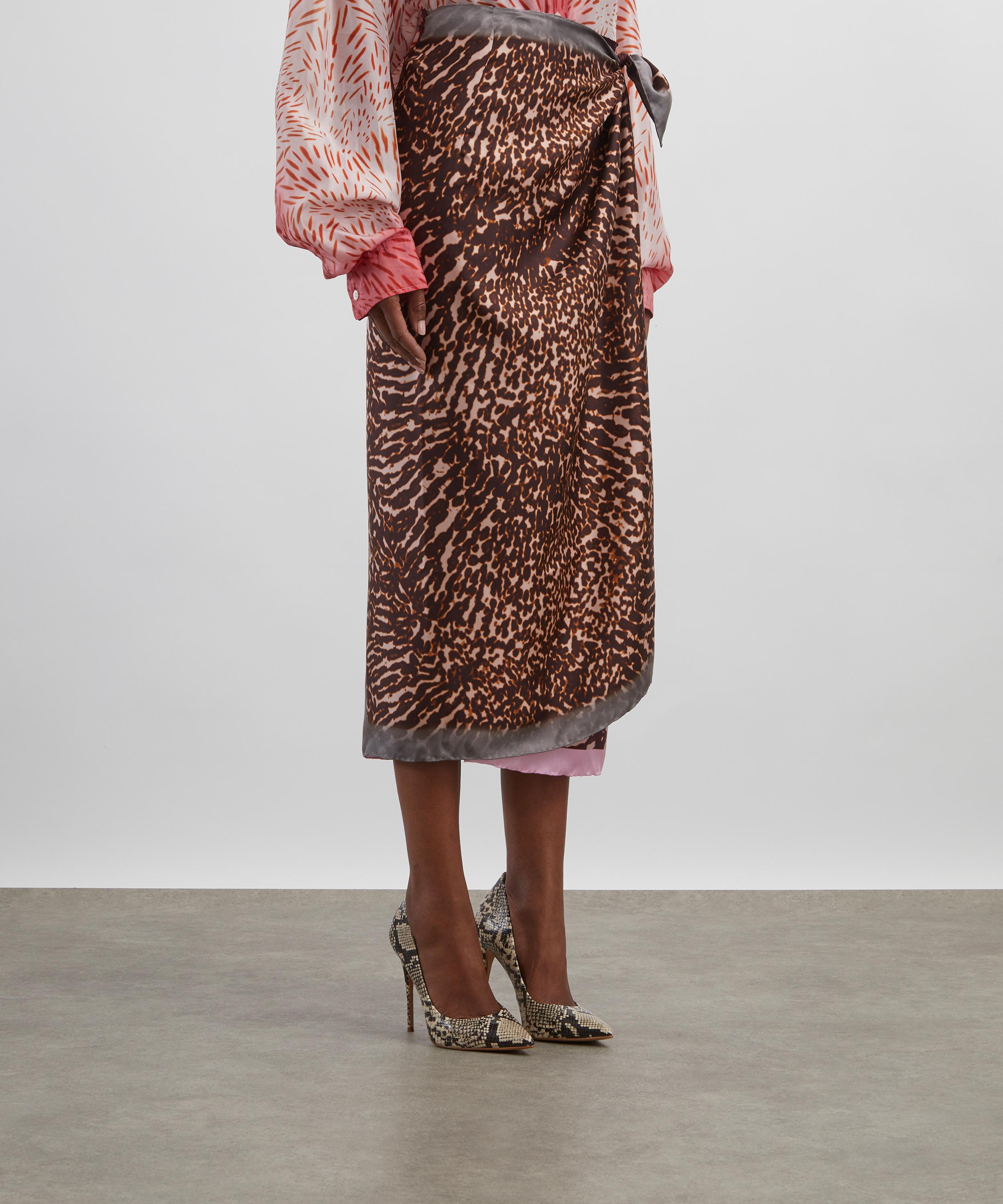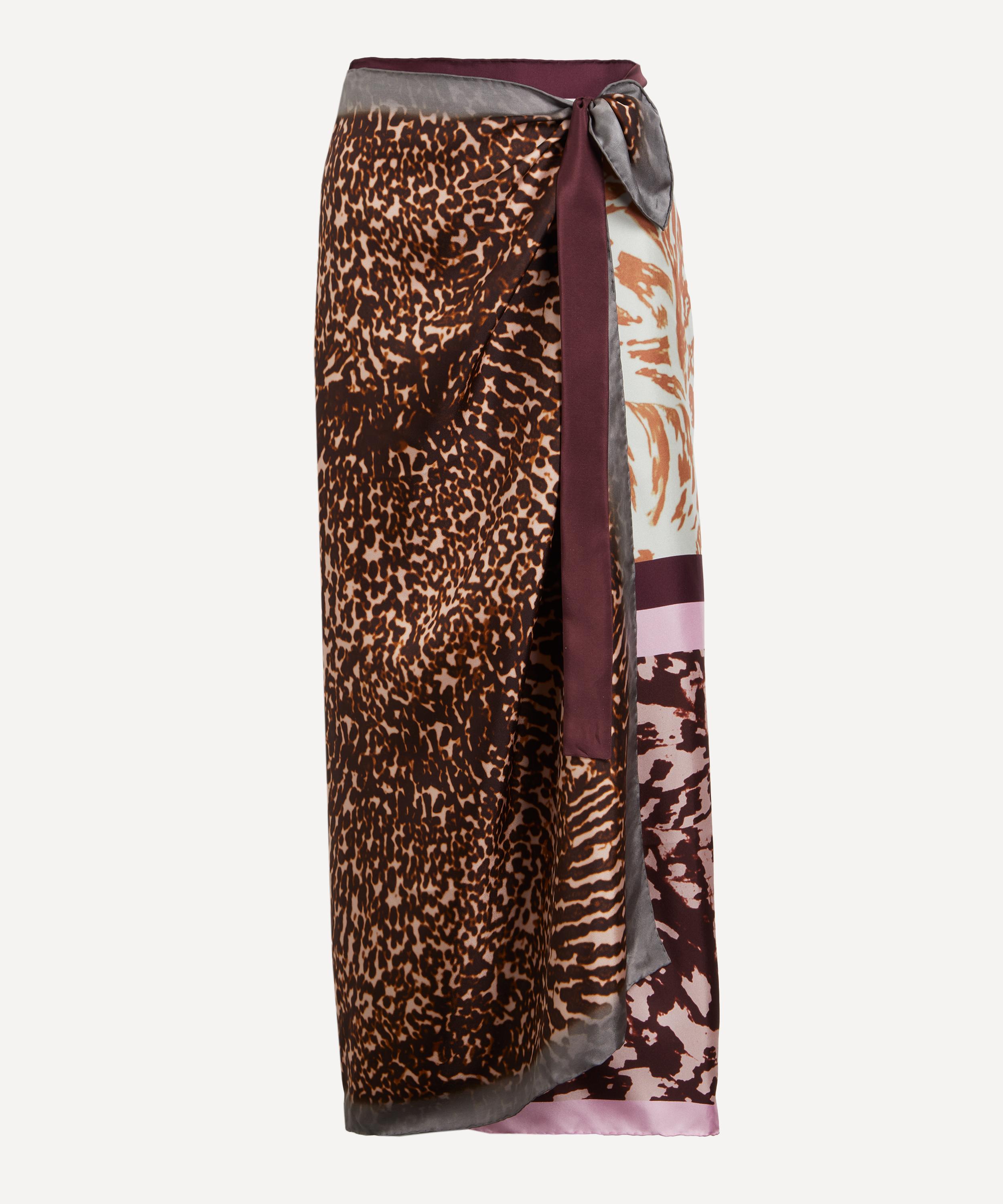 Constructed from an eclectic mix of floral collage scarves, this silk midi skirt showcases a refined wrap design, secured with waist ties for a customisable, tailored fit.