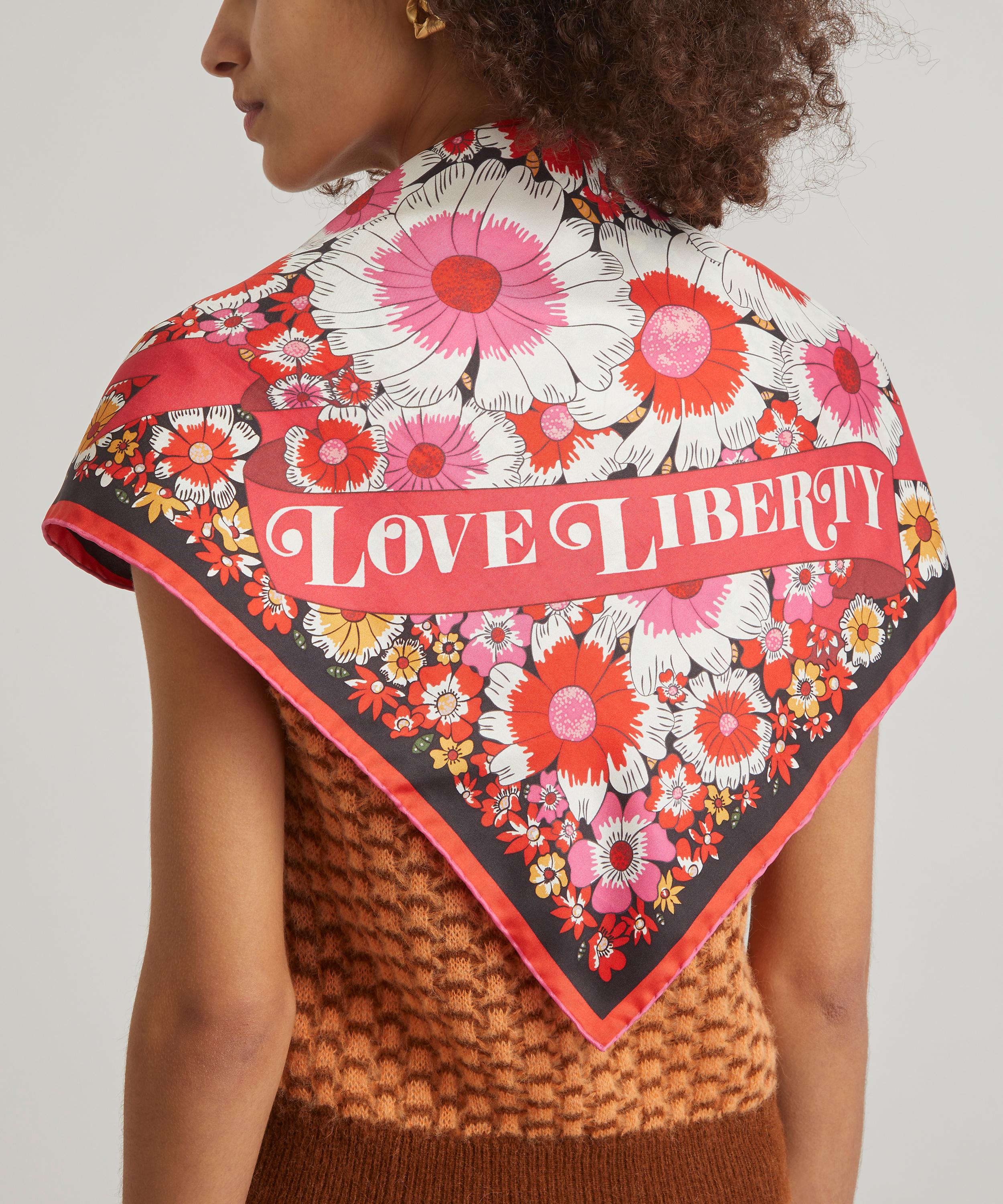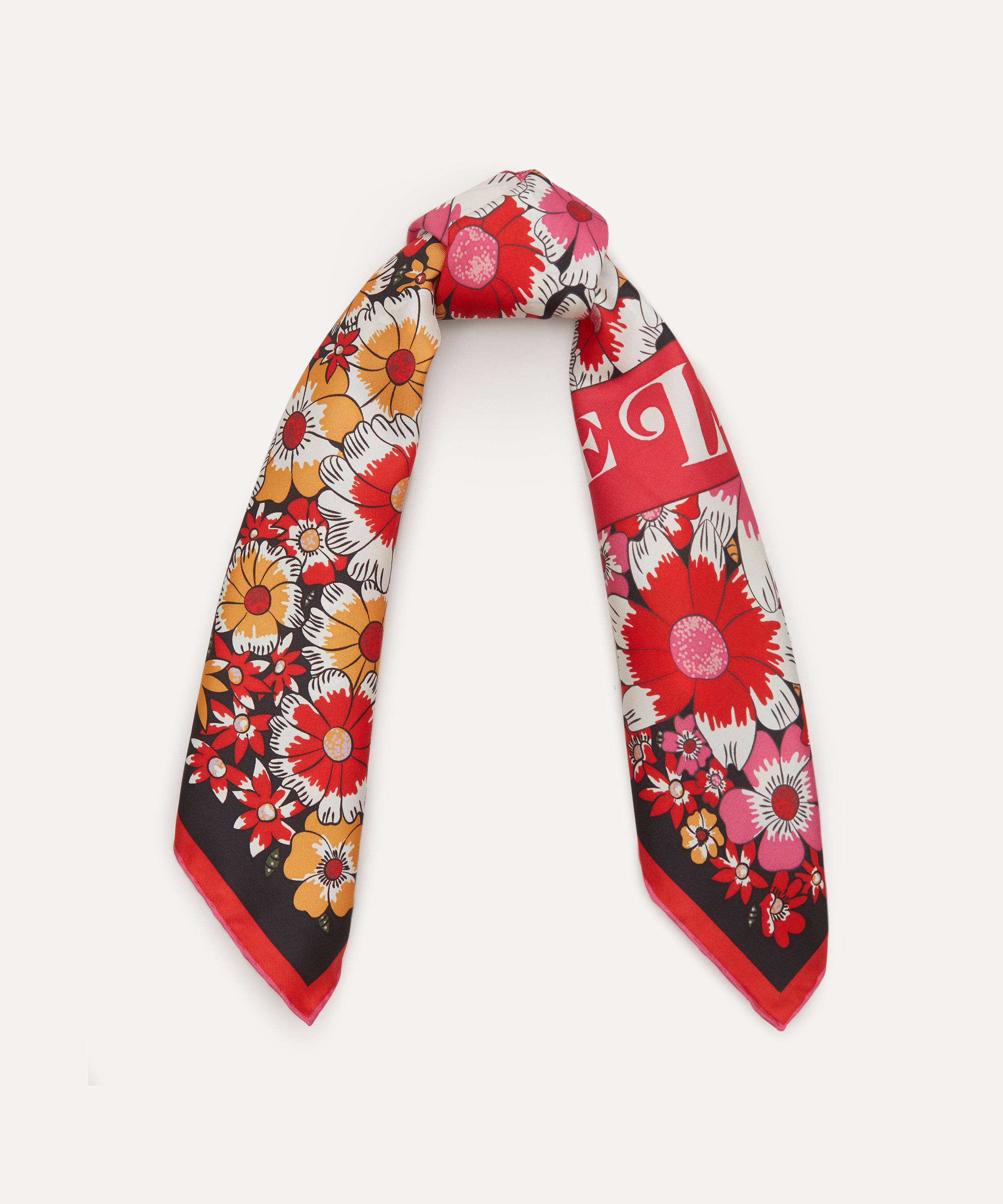 Designed in celebration of Valentine’s Day 2022, this charming scarf has been crafted from luxurious and durable silk twill in a versatile square silhouette featuring a tattoo-style, floral heart erupting out of a sea of Liberty flowers. Complete with hand rolled edges, try draping it over neutral outerwear for a burst of contemporary colour, or knot it close to the neck to lock in warmth.