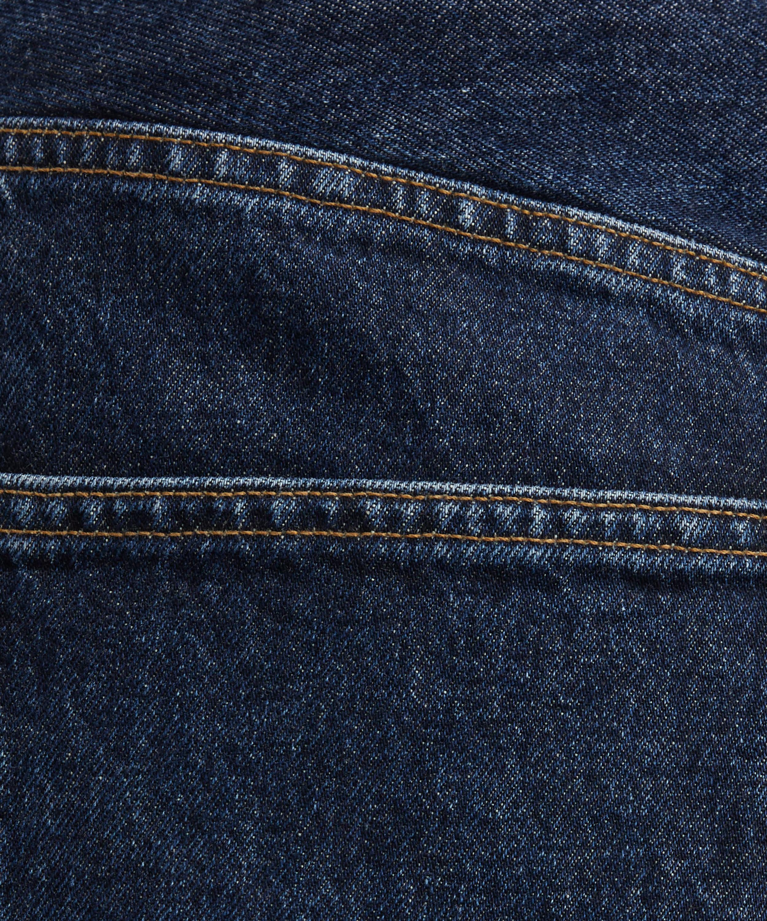 Crafted from clean, deep indigo non-stretch denim, the Low Curve jeans feature a mid-rise waist and a subtly curved outseam that tapers at the leg - creating a refined yet effortlessly modern silhouette.
