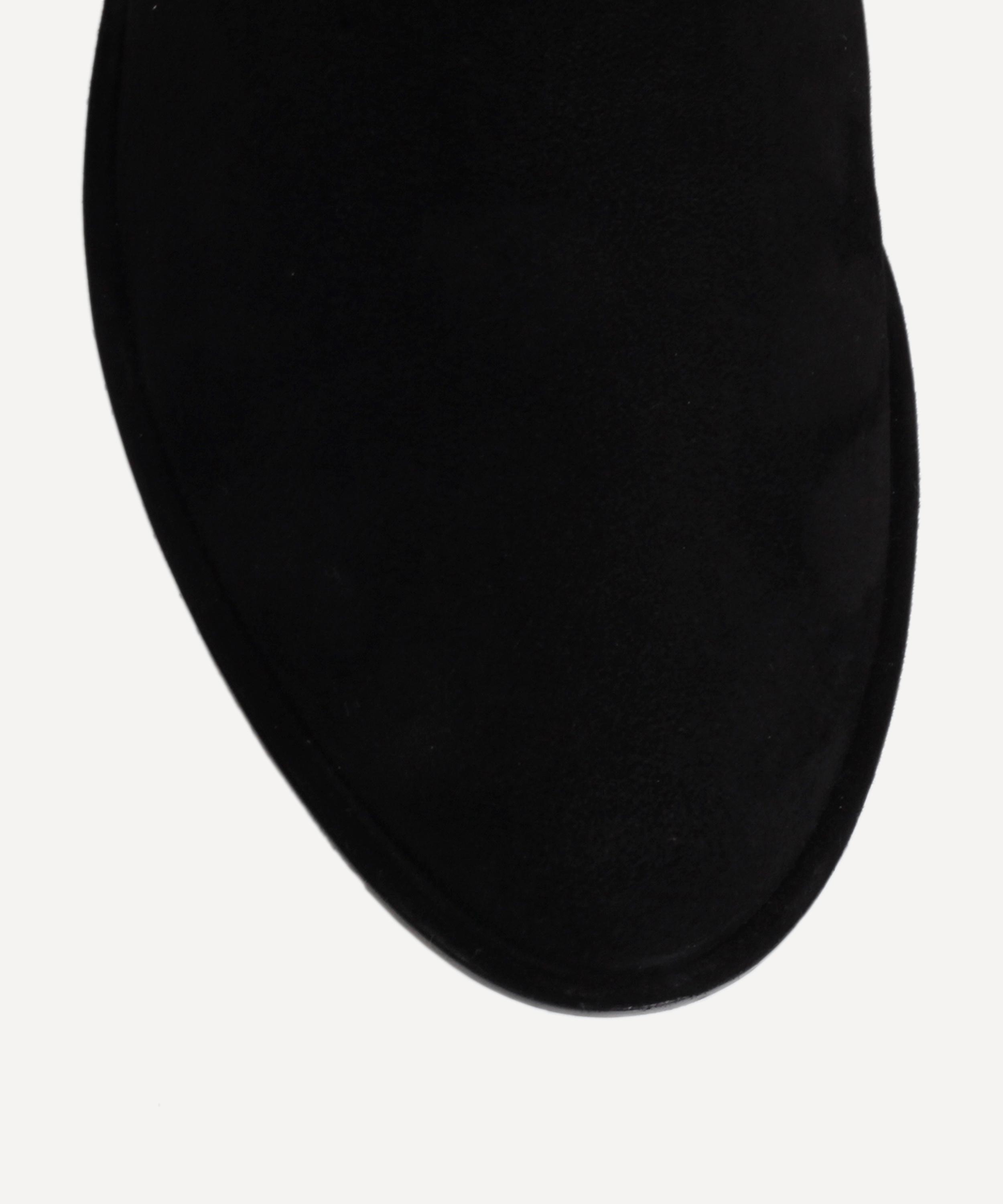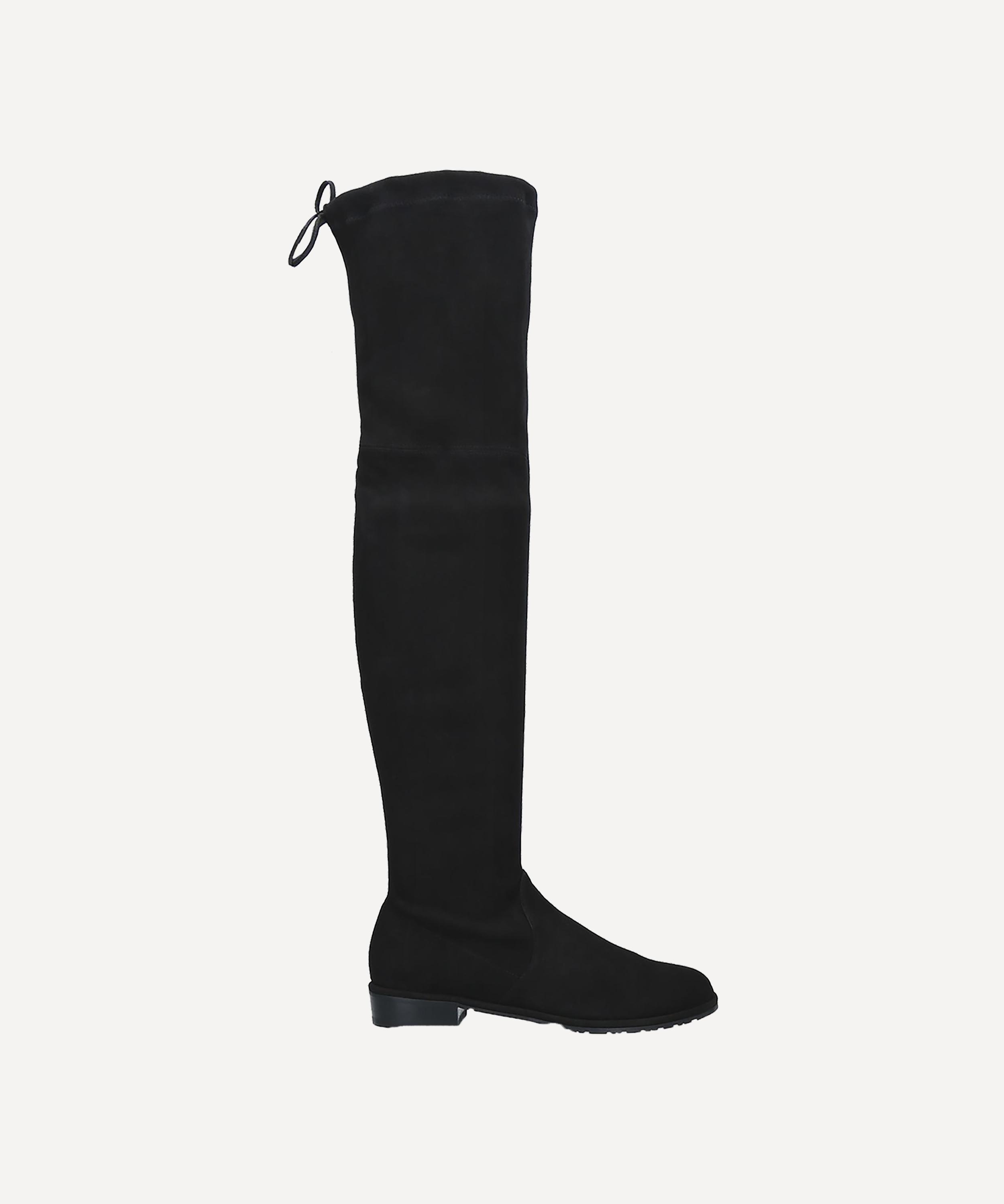 Stuart Weitzman’s Lowland boots are sculpted from smooth suede and rise to a low-thigh length. The high top panel fastens securely with a handy tie and the back of the leg. The block heel and rounded toe add a contemporary edge. In an easy pull-on style, they are perfect for comfortably layering over your favourite drainpipe jeans or wool leggings.