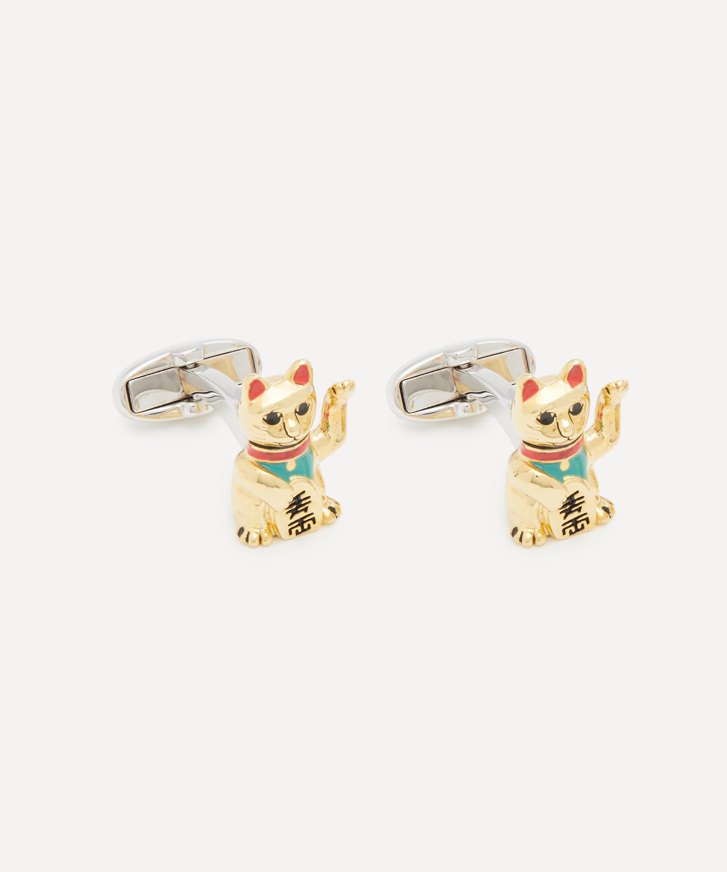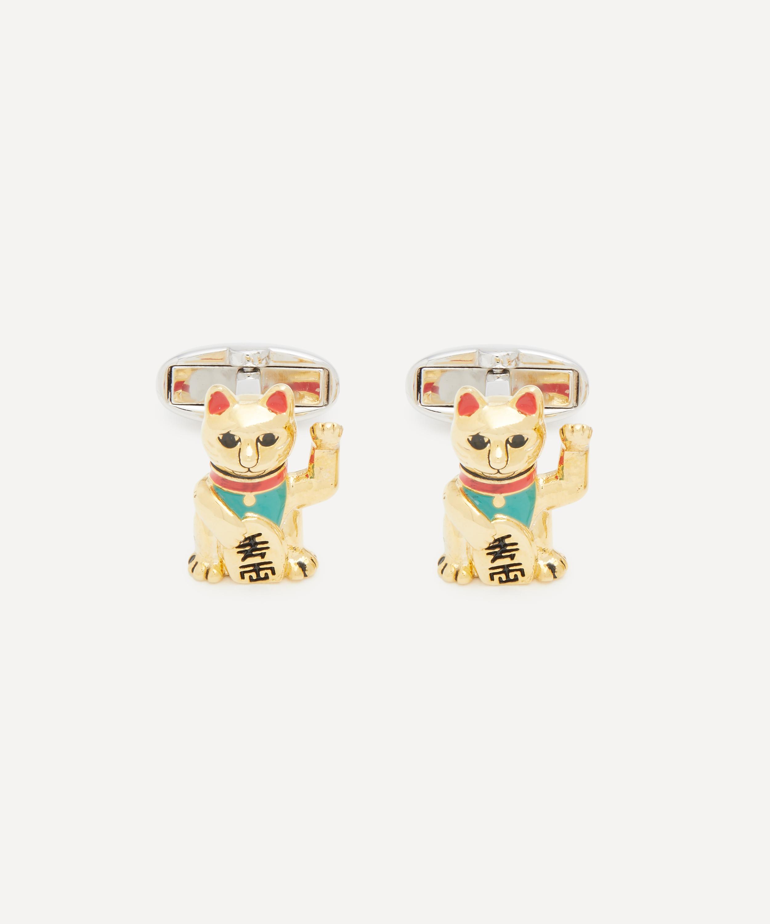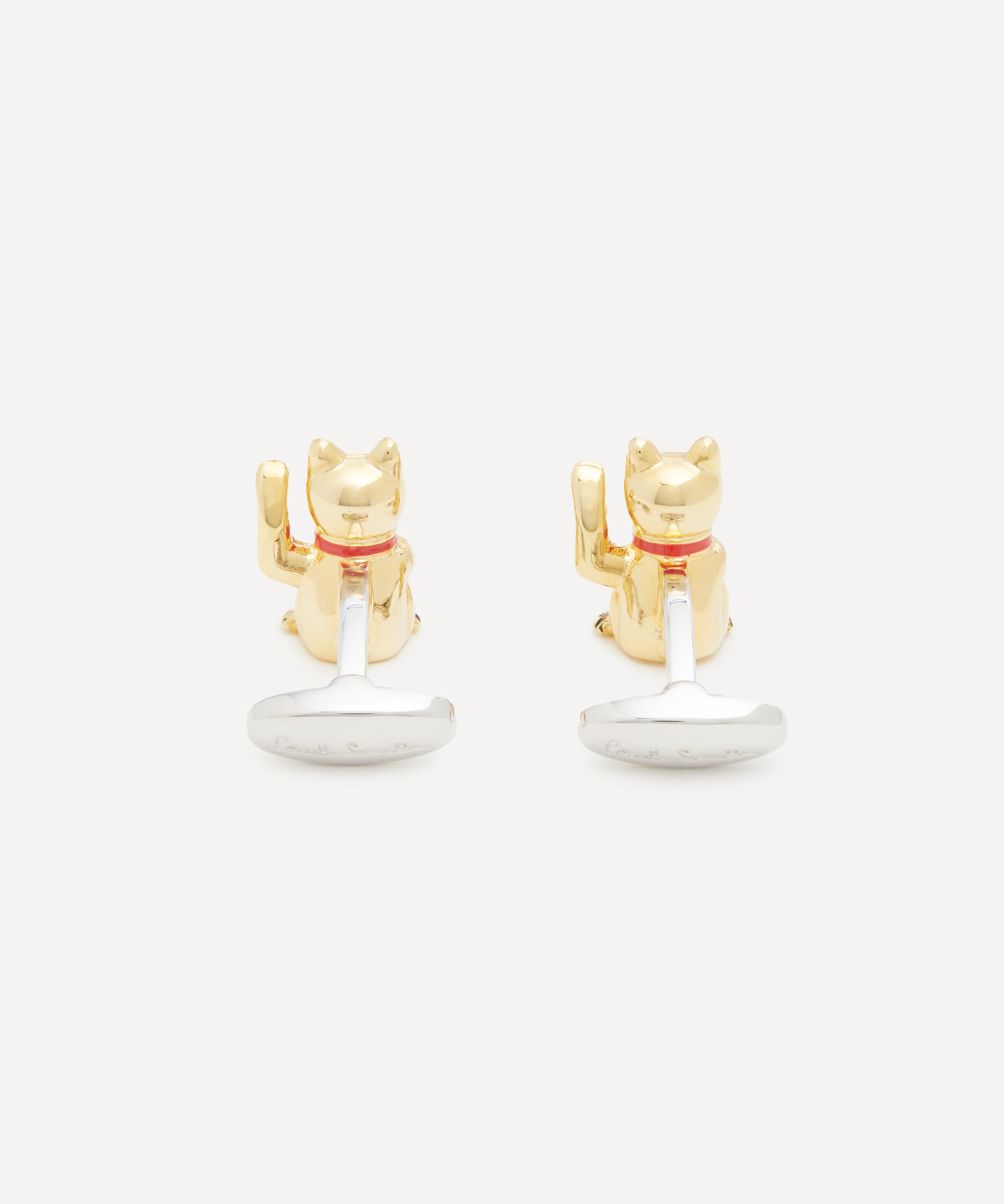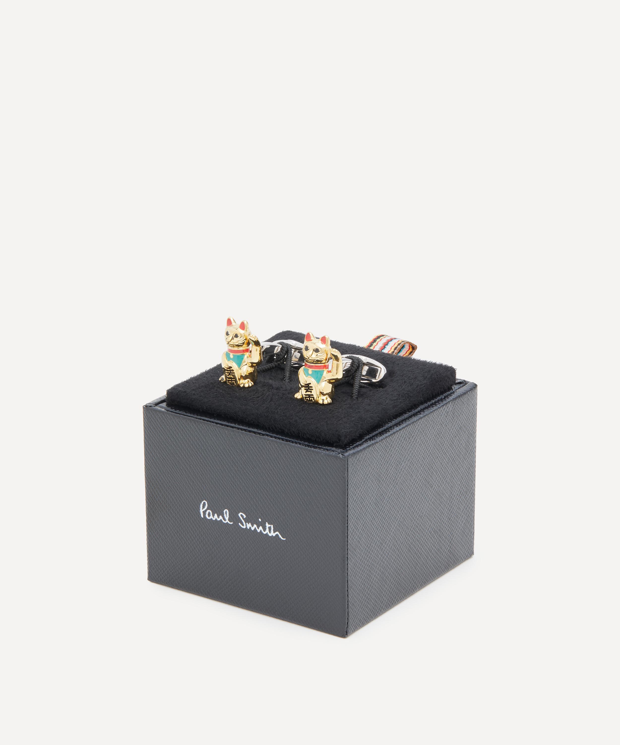 Injecting playfulness and vibrant pops of colour into your sharp sartorial edits, Paul Smith’s Lucky Cat cufflinks are an ode to the label’s distinctive sense of humour. They’re meticulously crafted with a polished silver-tone finish and shaped with Lucky Cat motifs. A simple yet stylish way to bring further energy to formal dressing, they’re fitted with logo-embossed T-bar fastenings.