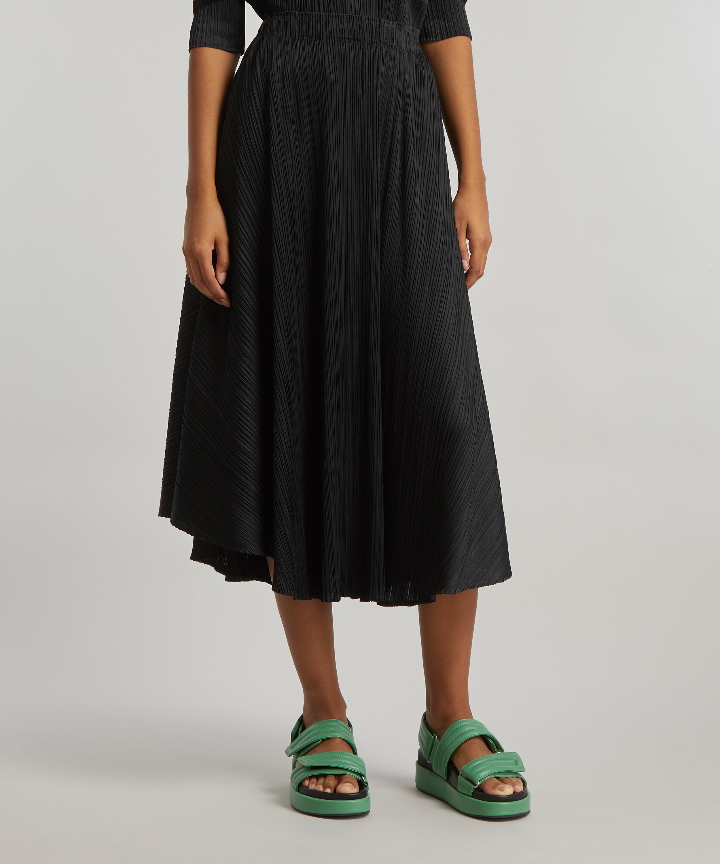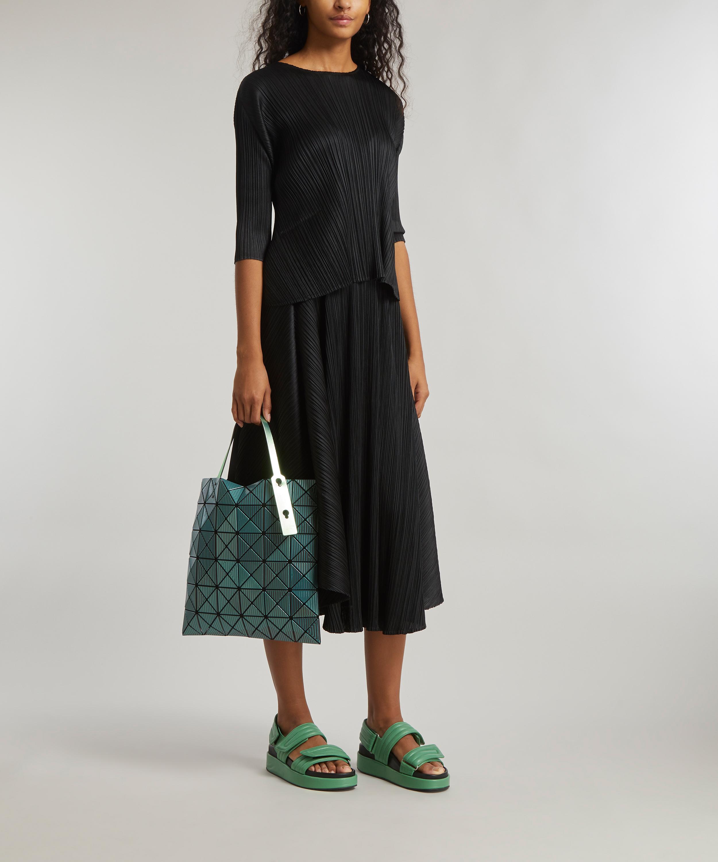 This sculptural skirt from PLEATS PLEASE is the perfect showcase for Issey Miyake’s innovative pleating technique. Cut to a flattering A-line silhouette with an elasticated high-waistline, the Luster skirt features Issey Miyake’s unique HUG style of vertical pleating. Pair it with the matching HUG cardigan for a voluminous edit.