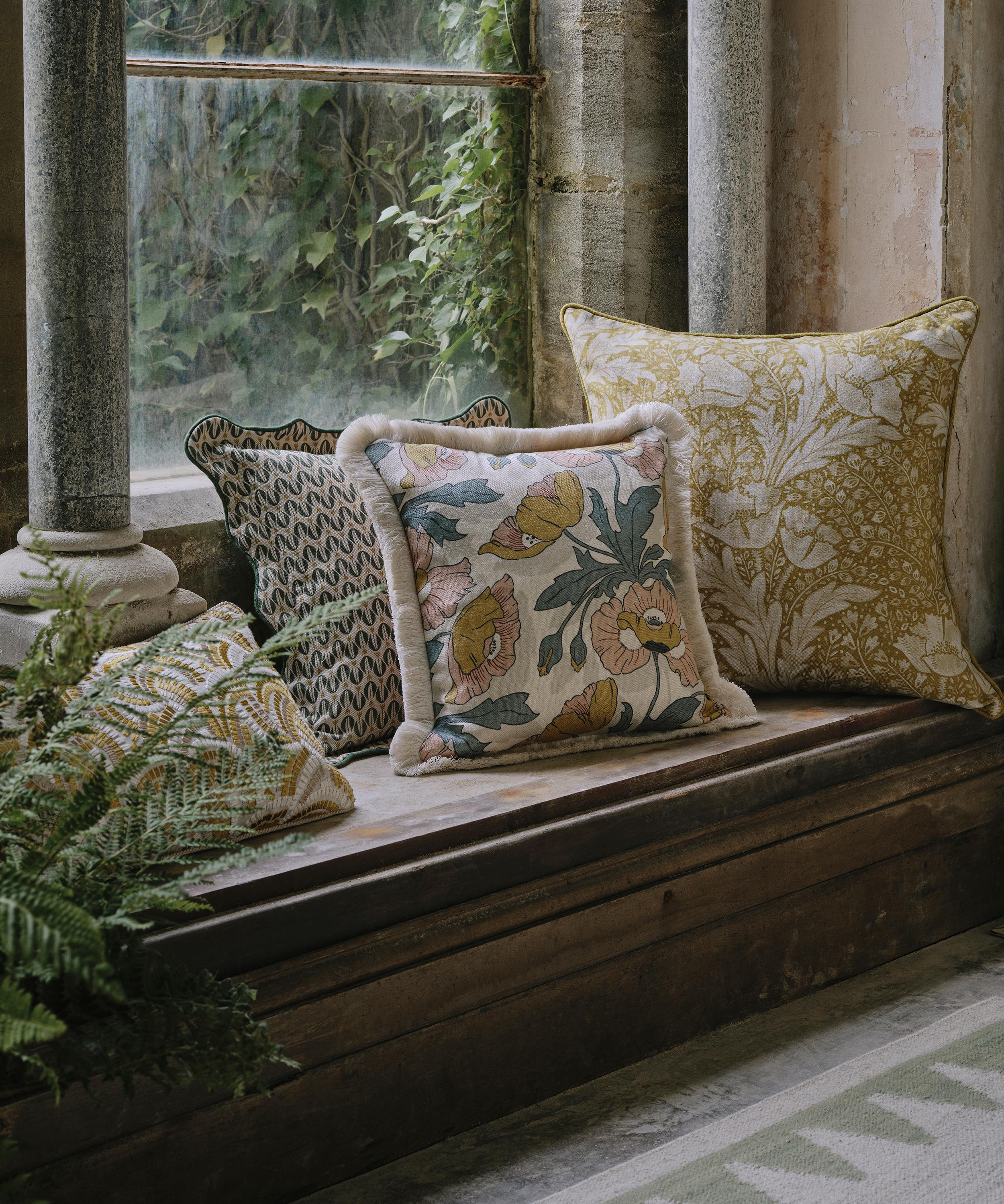 The Botanical Atlas fabric collection celebrates our historic lineage of craftsmanship and design through a cross-pollination of styles and visual narratives. Richly layered embroideries, opulent textured weaves, and contemporary printed velvets and linens are juxtaposed with a selection of elegant stripes and mesmerising geometrics - expertly crafted using traditional and cutting-edge techniques in Italy, Belgium, and India. Lutea’s simple yet versatile floral geometric is the perfect complementary design.