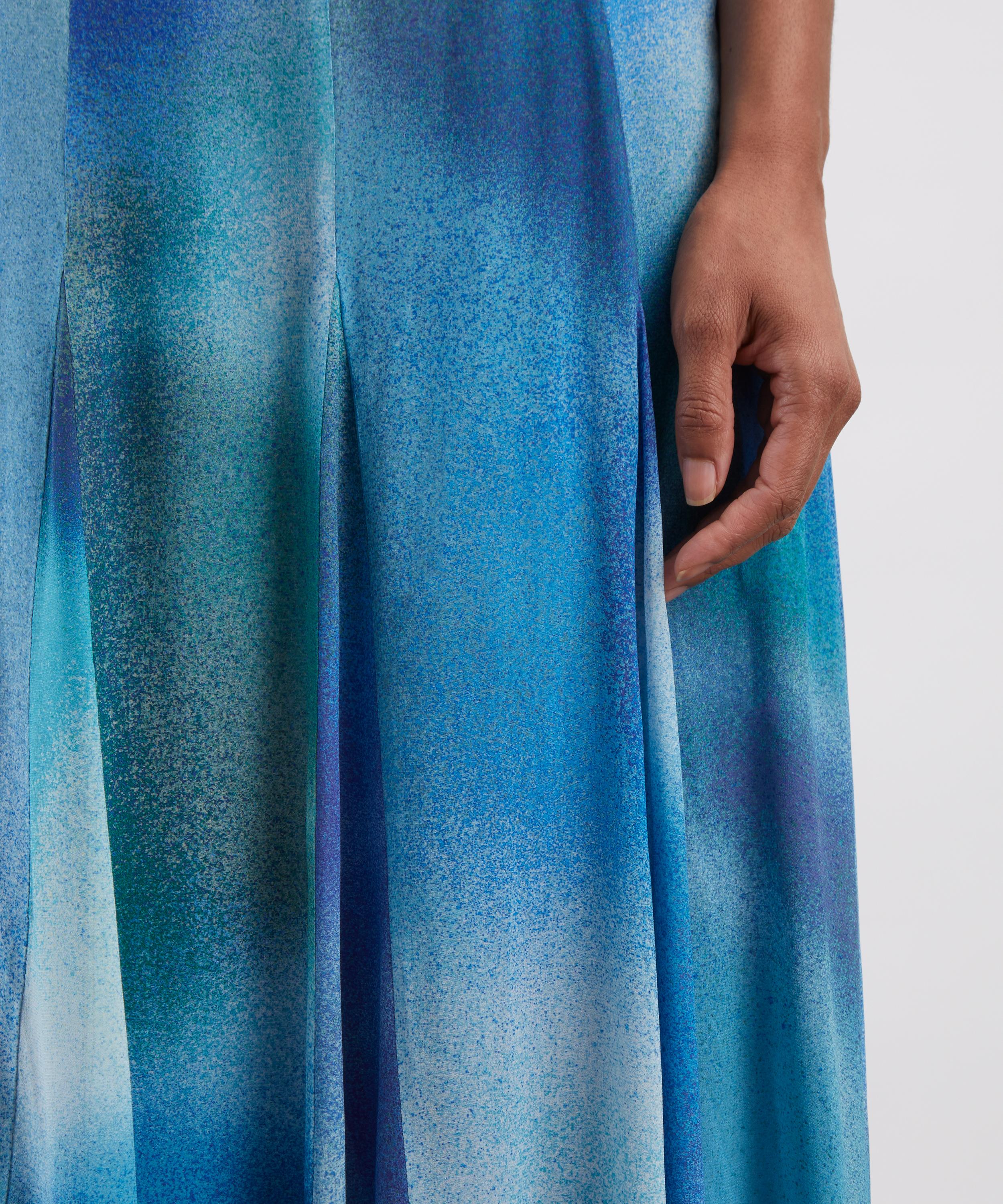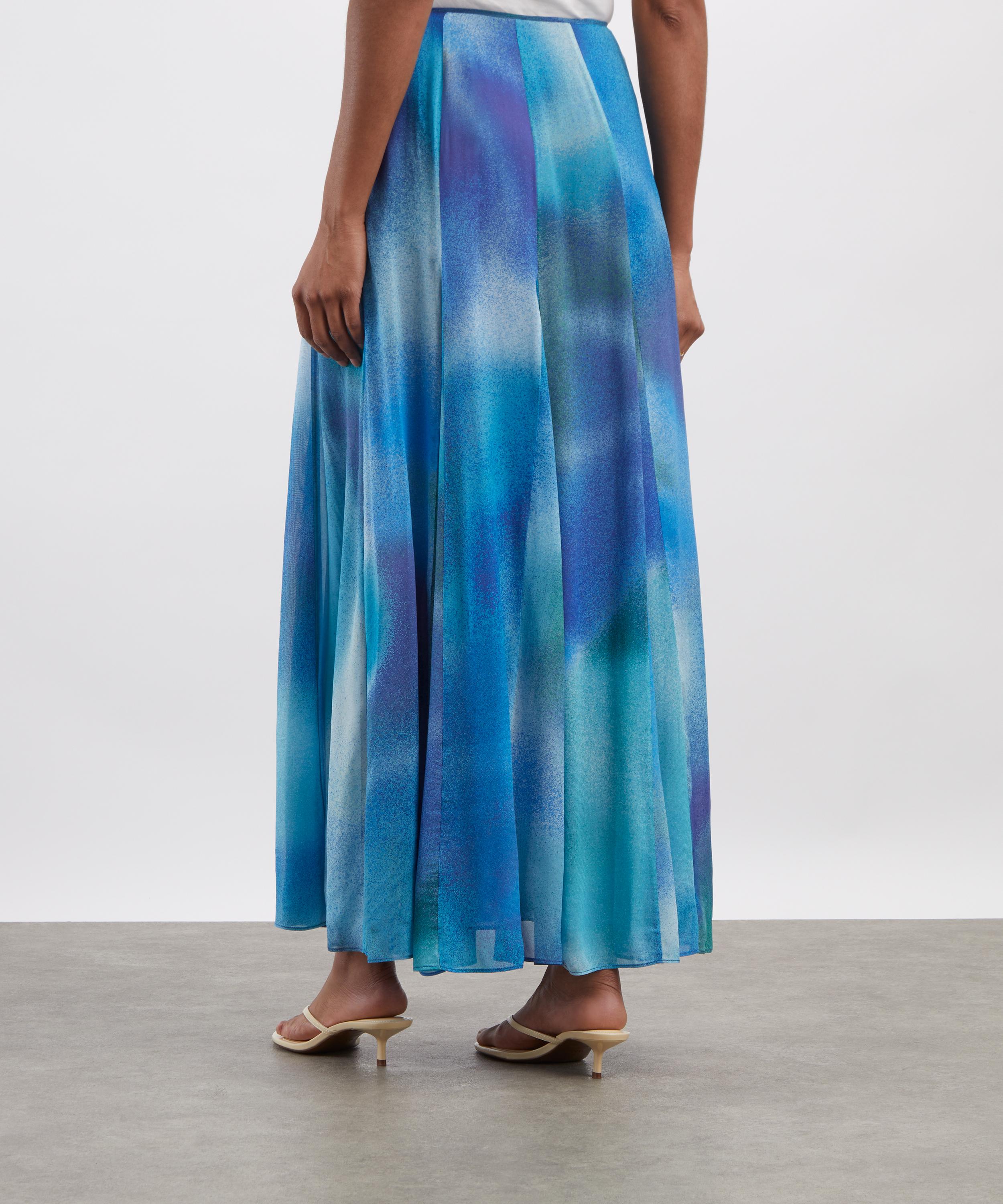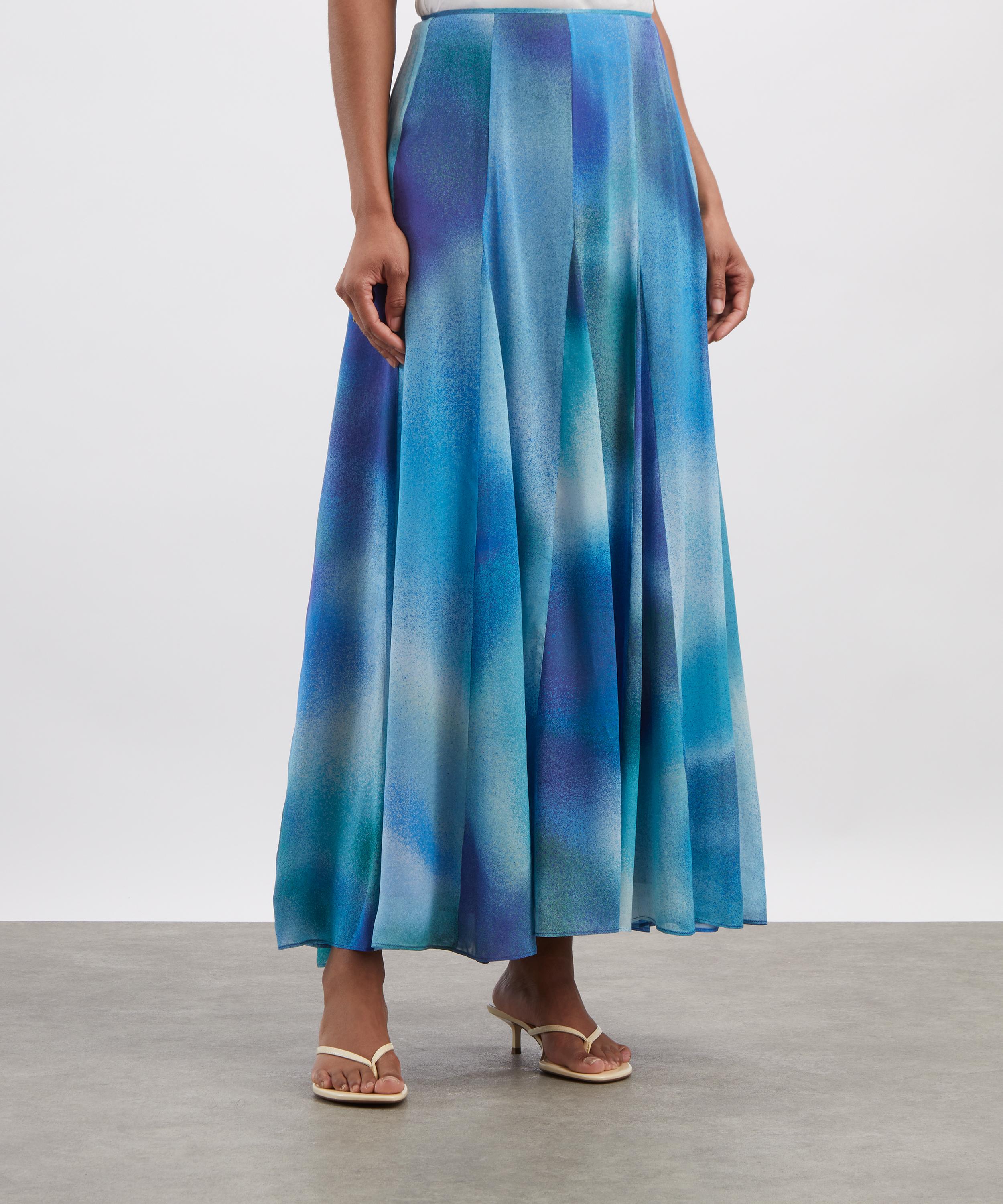 Adorned with a bold blue ombré Liberty London print, this floaty midi skirt is crafted from lightweight georgette and features a flowing, full silhouette that skims the ankle for a breezy finish.