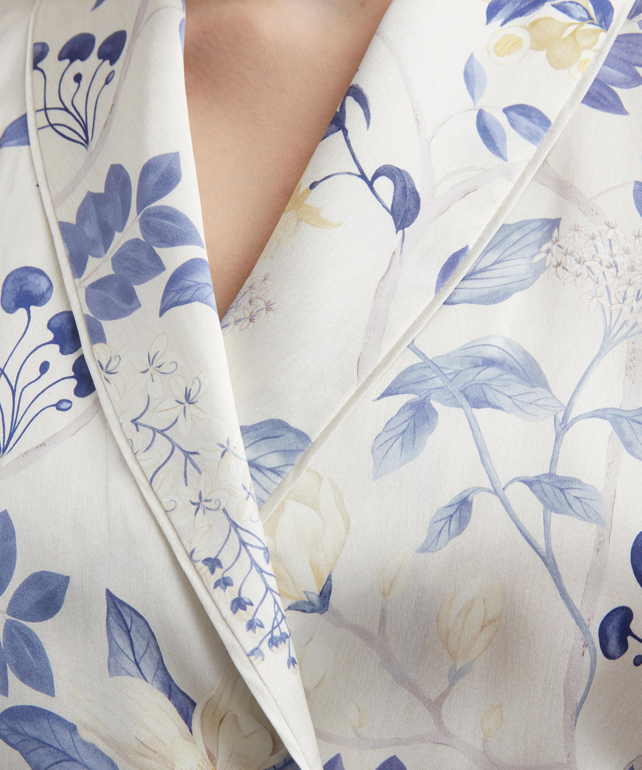 Printed in our very own cutting-edge Liberty fabric mill in northern Italy, this particular robe showcases the Magical Plants print - hand-painted in the Liberty Design Studio, Magical Plants features an exquisite illustration of a majestic trailing garden filled with magnolias, wisteria, lily of the valley and other assorted florals adorned on leafy branches.