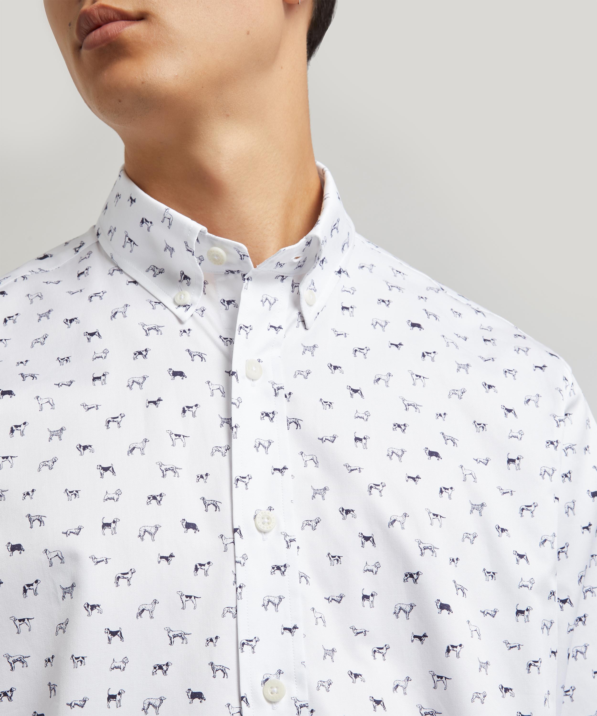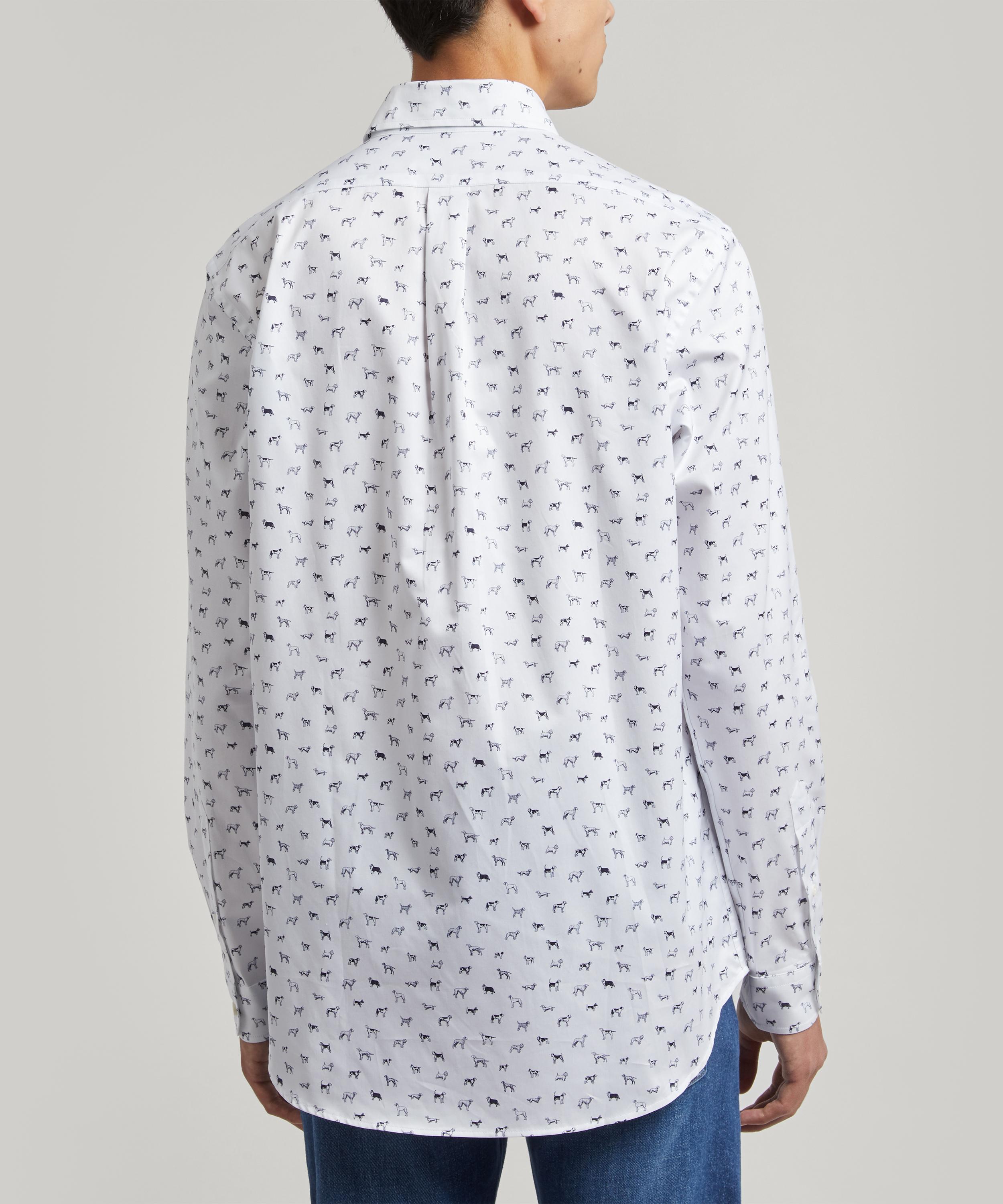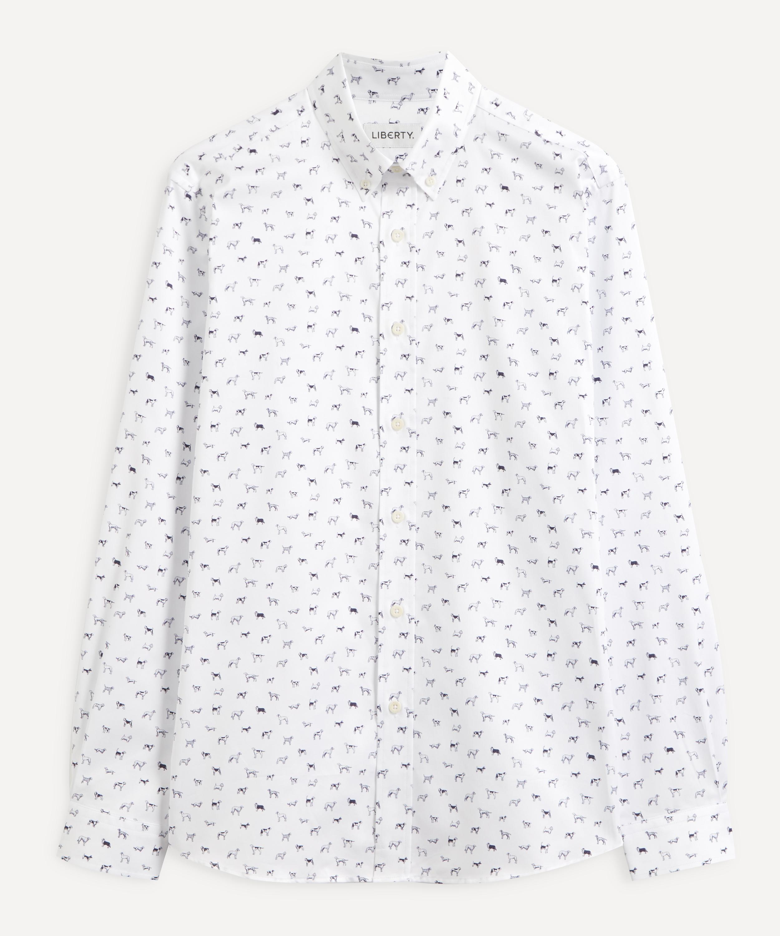 Developed to complement every build, our Alex men’s shirt has a classic silhouette that looks equally good fully buttoned or undone as an overshirt. Constructed from heavier-weight 185gsm cotton twill and finished with corozo nut buttons, the shirt is expertly printed in Italy with our archival Man’s Best Friend design – a witty canine conversational, reimagined in the studio from an archival 1989 scarf layout. For your off-duty edit, layer the long-sleeved shirt over a clean white tee with shorts and sneakers, or elevate with suit trousers and a jacket for a classic look.