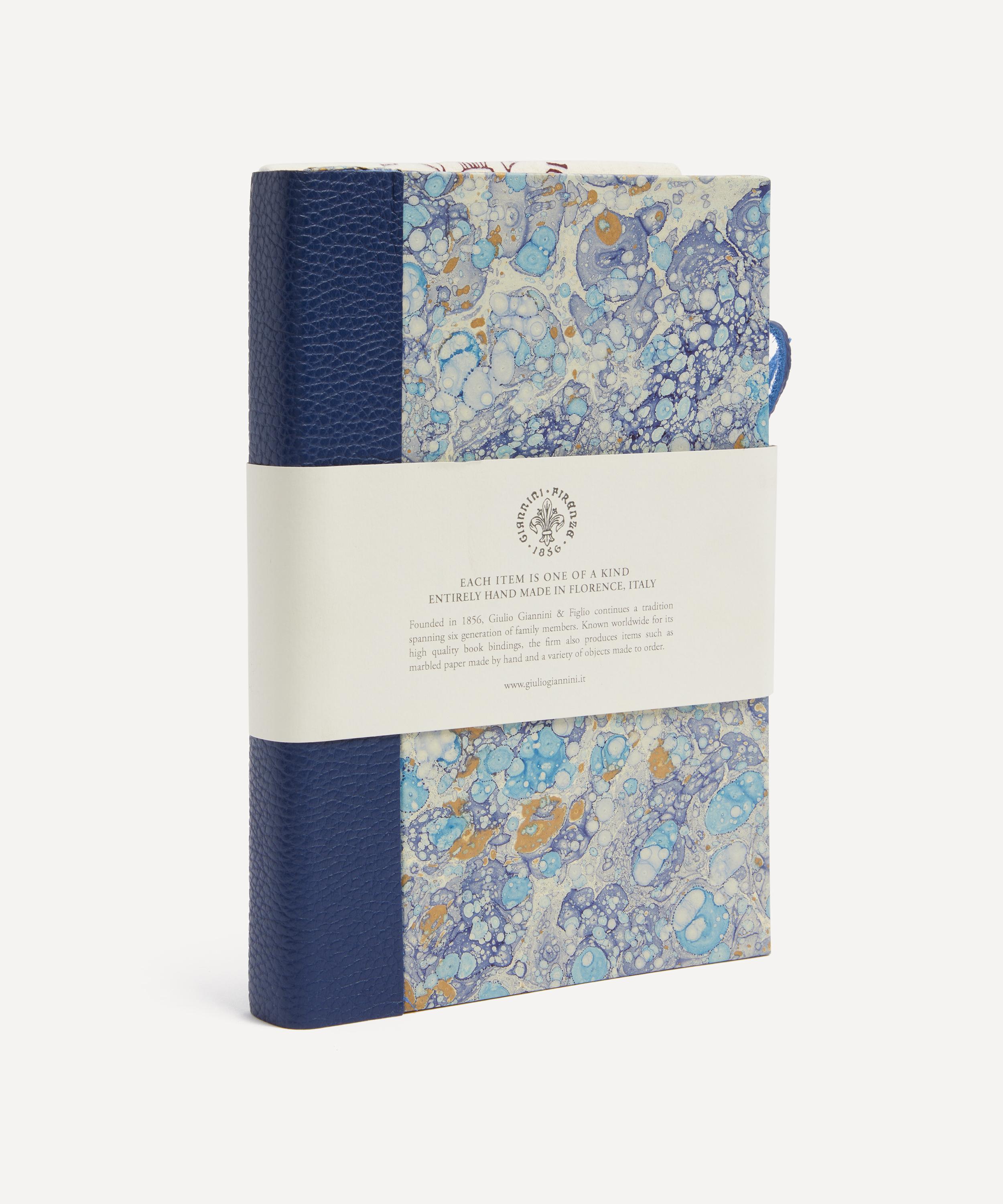 Hand marbled in Florence, this notebook has been meticulously crafted using an expertise that has be honed for generations by city natives Giannini at their family-run Bottega d'Arte. Featuring a naturally tanned leather spine and tie with creamy ivory pages, keep this notebook on hand for those sudden bursts of inspiration.