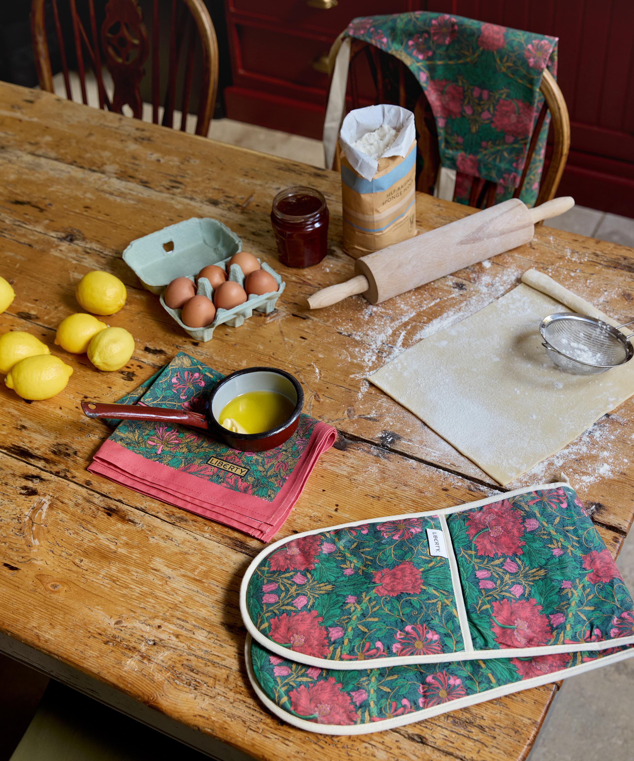Liberty’s apron is part of a trio of kitchen staples that enrich your cooking space and bring added warmth to the heart of your home.