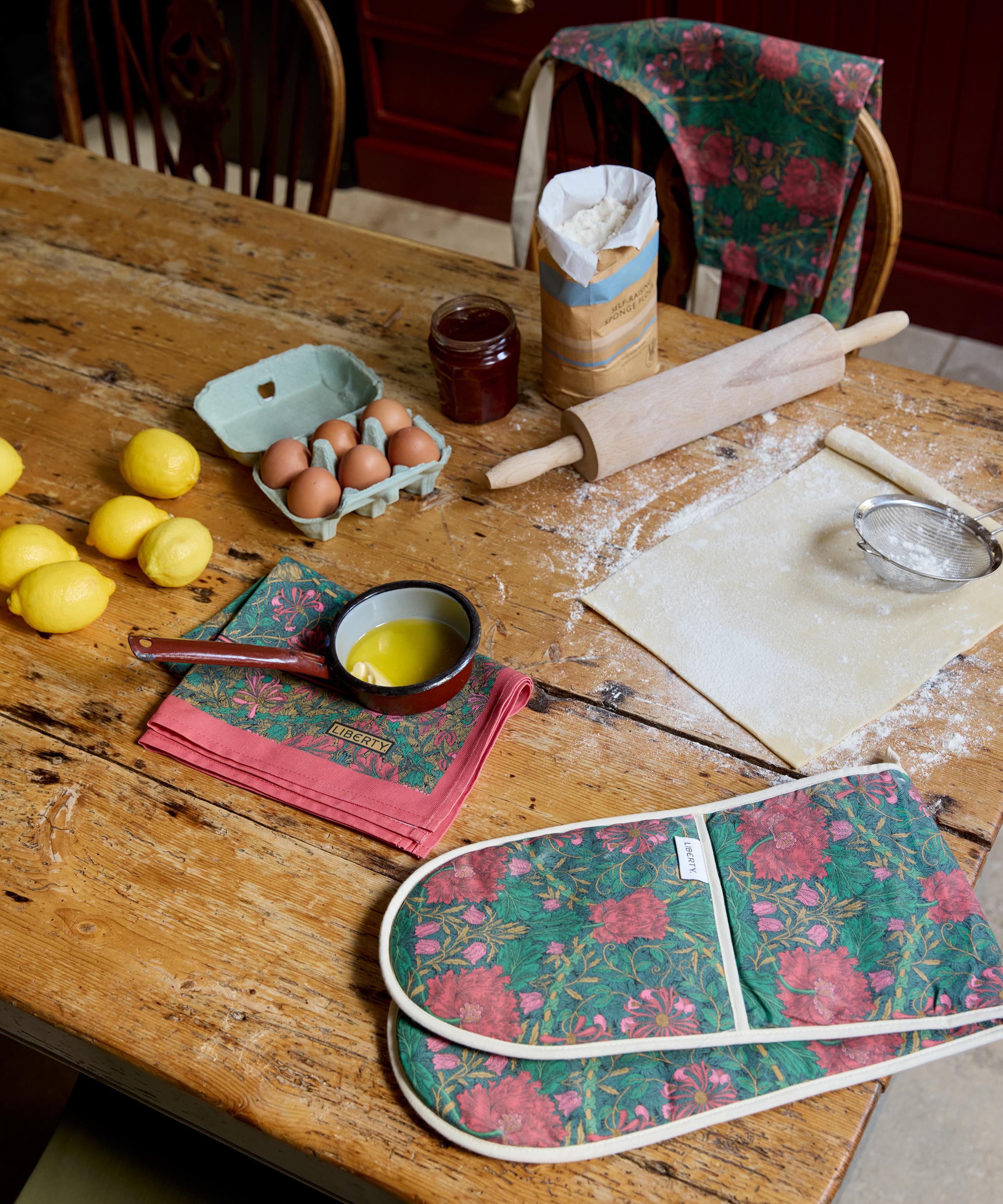 Liberty’s double oven mitt is part of a trio of kitchen staples that enrich your cooking space and bring added warmth to the heart of your home.