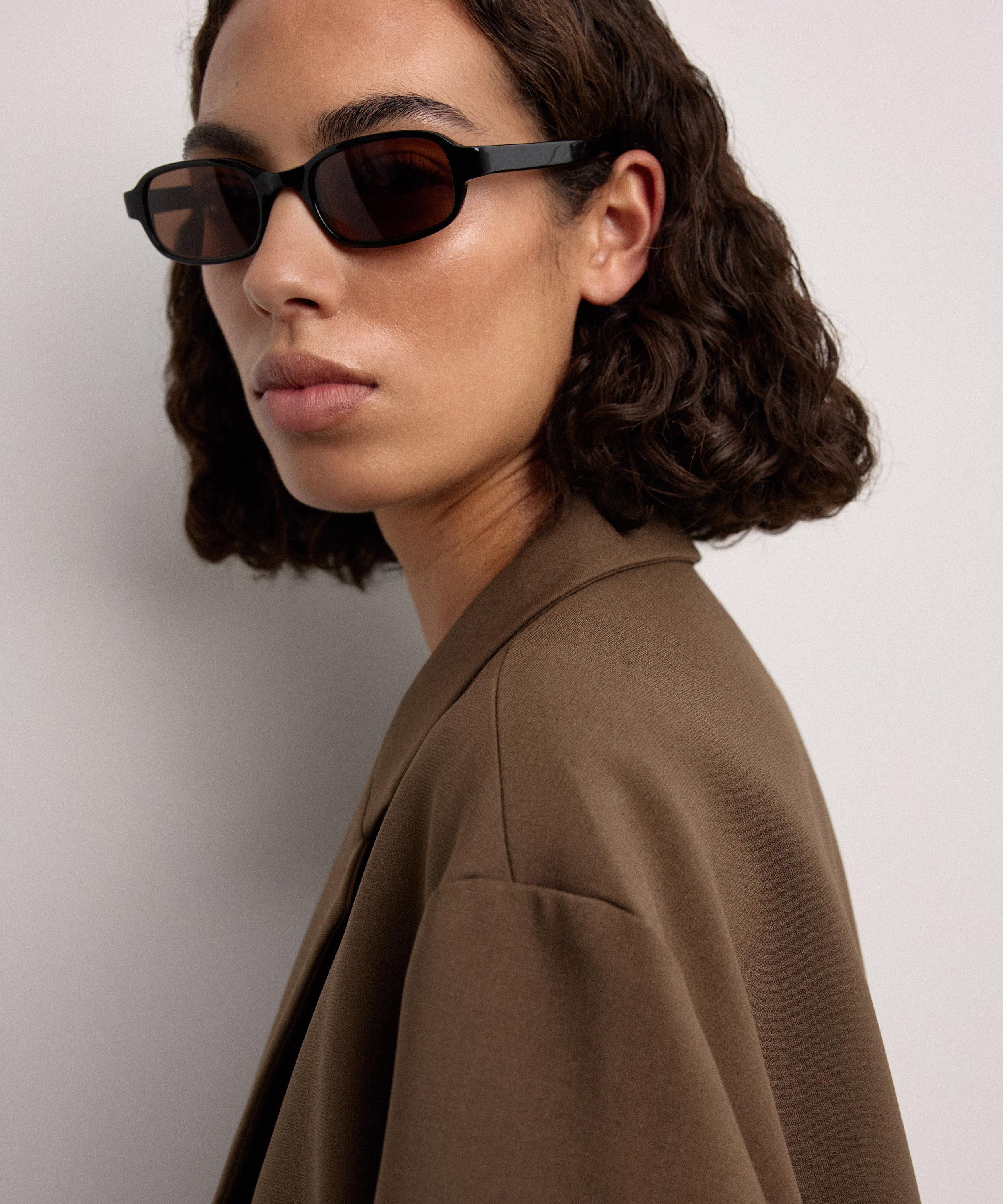 Bring a sophisticated finishing touch to your look with the Margot rectangle sunglasses from British eyewear brand DMY Studios. Evoking an elegant, timeless design and impeccable craftmanship, this pair feature a slim, oval silhouette with soft curved crafted from cellulose acetate in a sleek black colourway. Fitted with brown-tinted lenses and complete with subtle branding to the temples, they’re perfect for elevating everyday looks.
