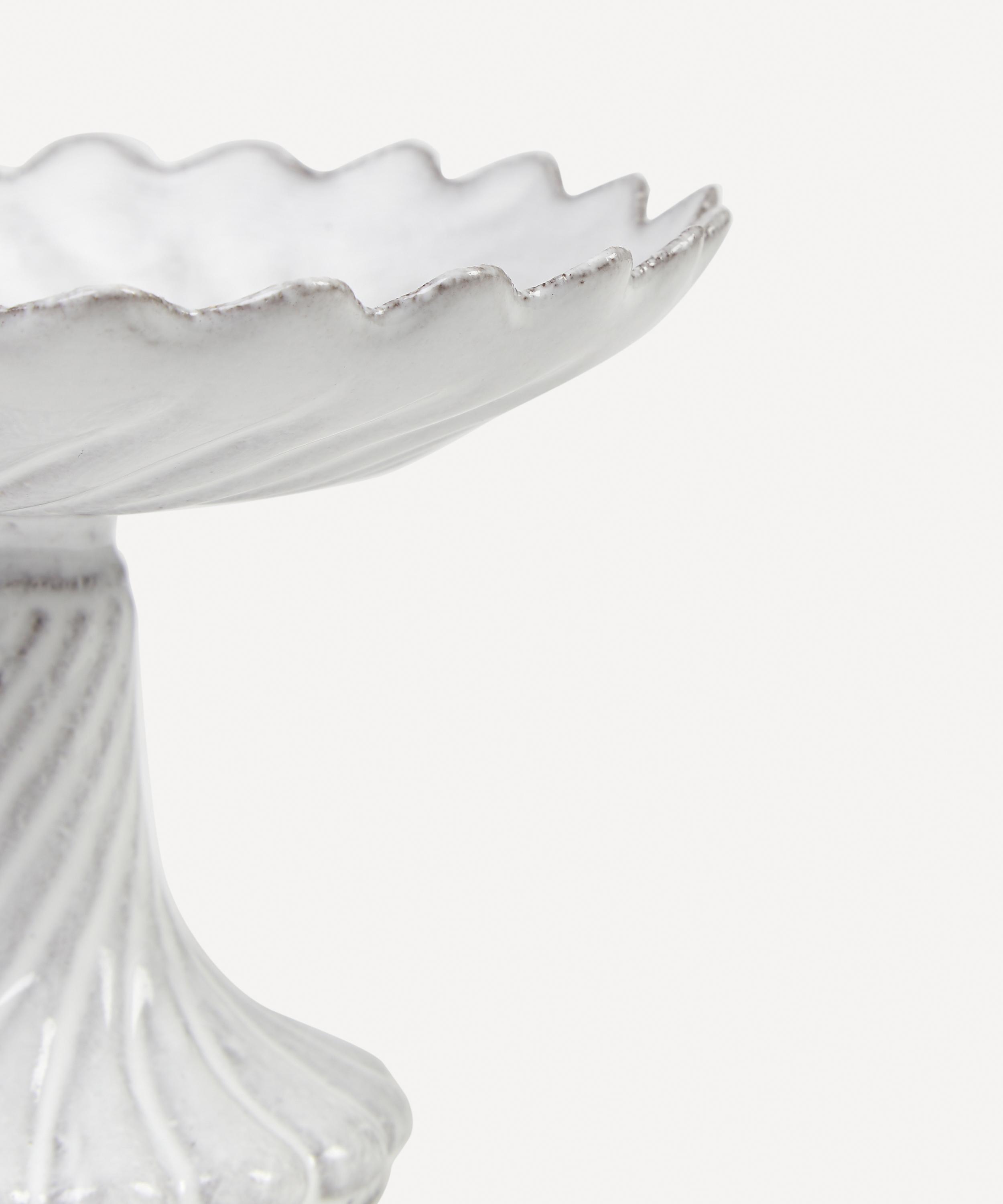 Votary of pre-industrial fabrication, Astier de Villatte is celebrated for being the one and only studio in Paris to hold and harbour the traditions of artisanal ceramic production. Restoring the ancestral systems of moulding and stamping, the Marguerite stand is made using techniques from the Middle Ages which involve moulding a sheet of handmade clay, double firing the ‘biscuit’ piece and glazing the product in white enamel – a lengthy process that requires a drying time of up to one month. Characterised by an undulating rim and an opulent ridged base, the stand is engraved with the brand’s signature crest - depicting an interlacing A & V - alongside the initials of one of the 40 master artisans who created it. Each handmade piece tells a beautiful story, it romances and imparts a sense of nostalgia into its owner. Pair with other ornate pieces from the collection for a coordinated decorative approach.