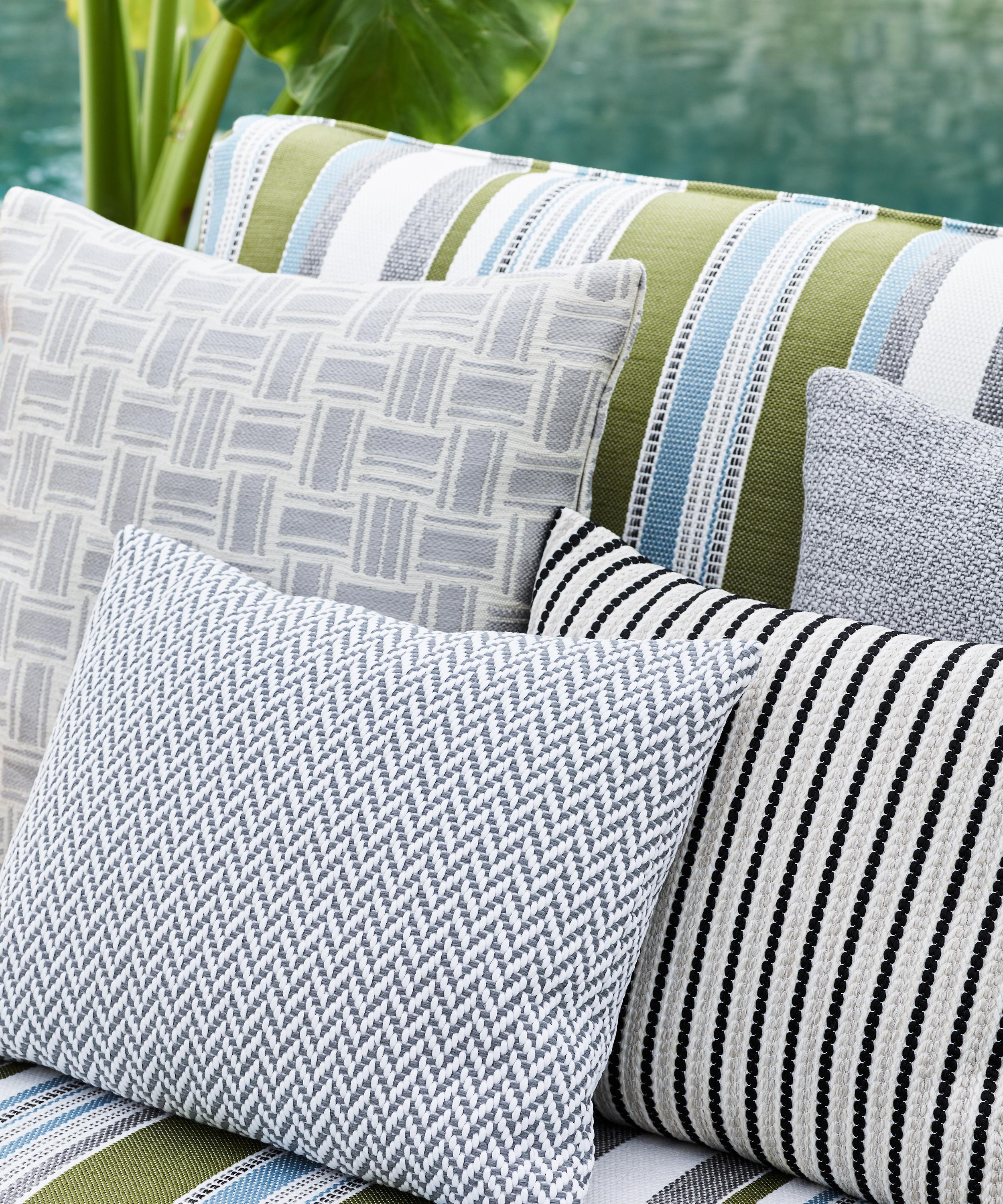 Marquee Painswick is a simple coordinating quality woven in Italy using the finest performance yarns. This vibrant and highly versatile furnishing fabric coordinates across all prints and jacquards in the collection. Offering clean lines and simple graphic forms, the textural weave is suitable for a wide range of outdoor applications, from day beds to cushions.