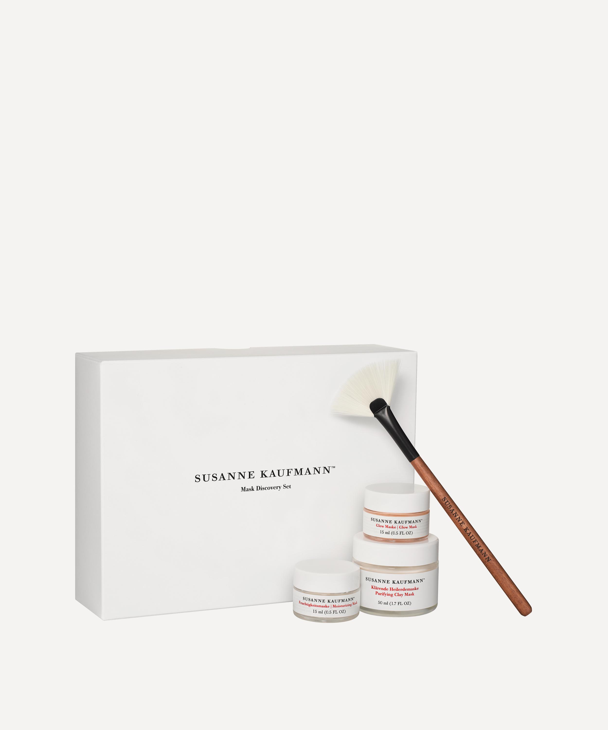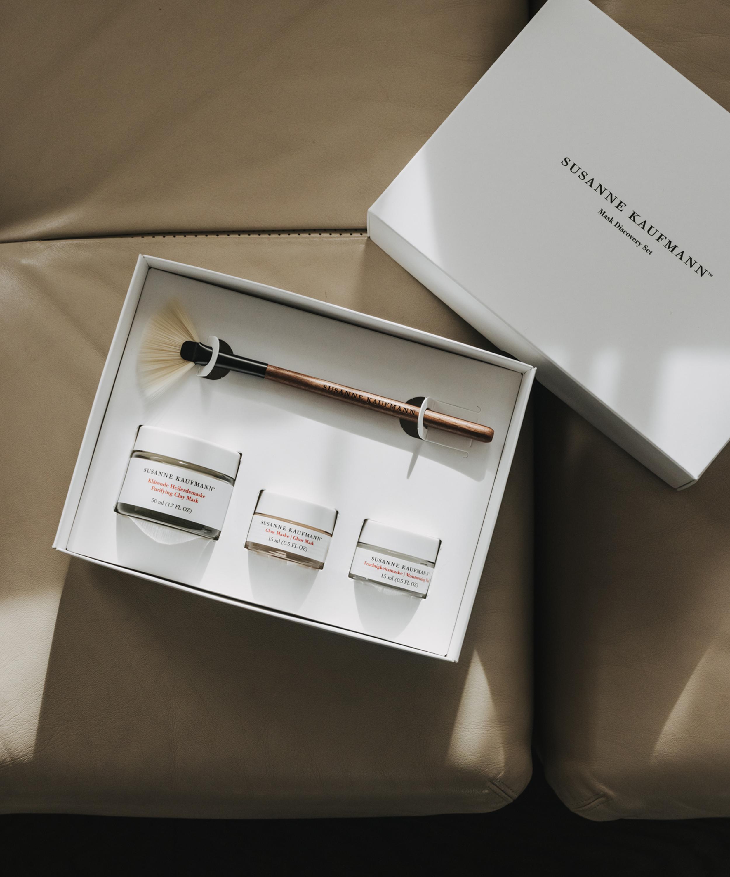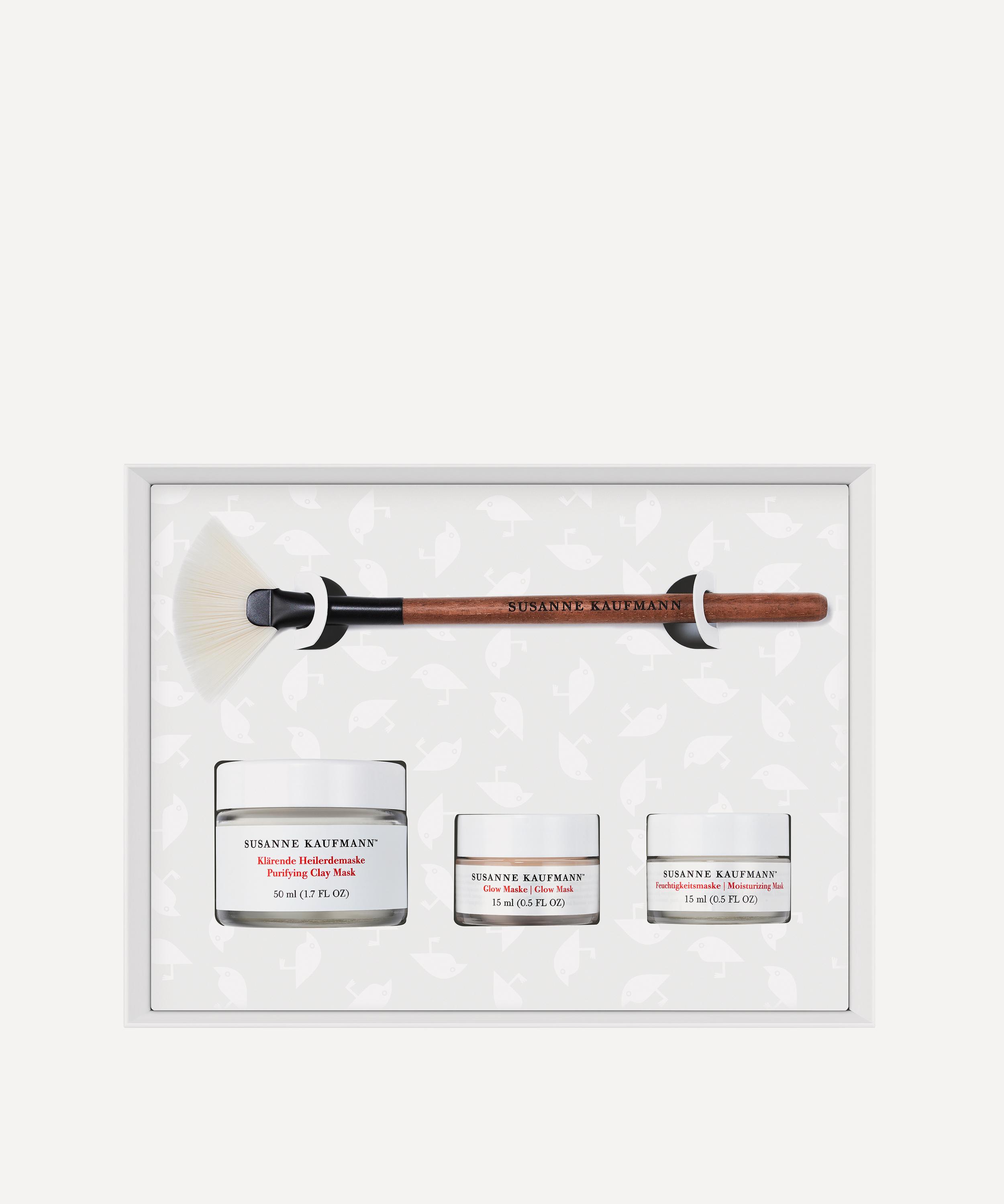 Give your skin some TLC with Susanne Kaufmann’s Mask Discovery Set, featuring three targeted skin care masks and a handmade brush applicator.