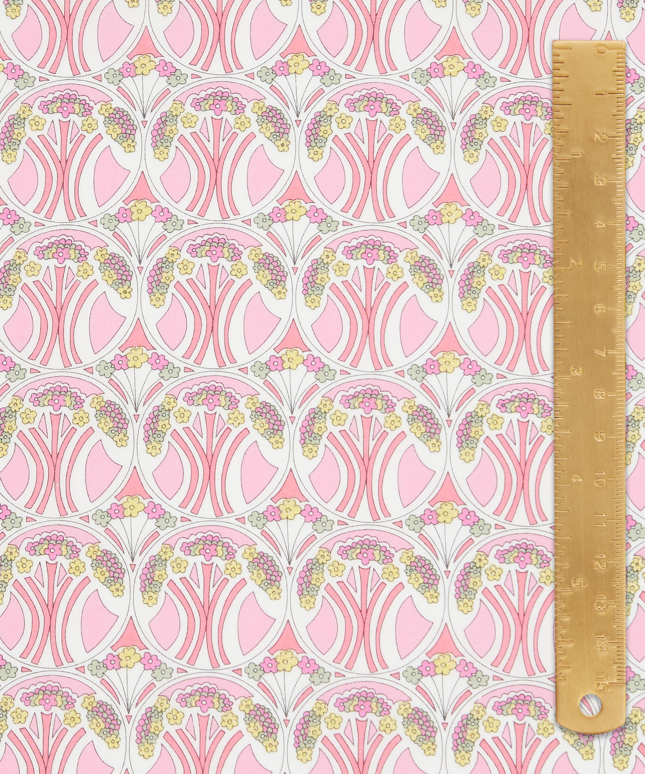 Originally created by the Liberty design studio for the Autumn/Winter 2007 collection, this Art Nouveau-inspired botanical features small, stylised floral clusters framed within finely drawn circles. Reimagined with a sparkling metallic overlay, Mauverina reflects the organic movement and structural elegance characteristic of Liberty’s iconic Ianthe print.