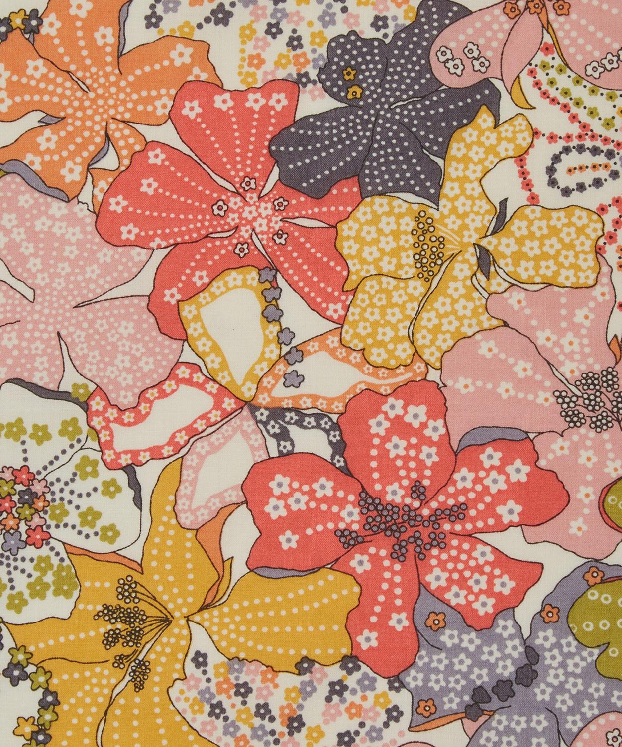 Bright and unabashedly exuberant, Mauvey has a happy-go-lucky appeal. The design is based on a mixture of the flowers of the mallow shrub and sequins, designed by Liberty London’s in-house studio for the Spring/Summer 2008 seasonal collection. It has been rescaled and recoloured for the Classic Tana range.