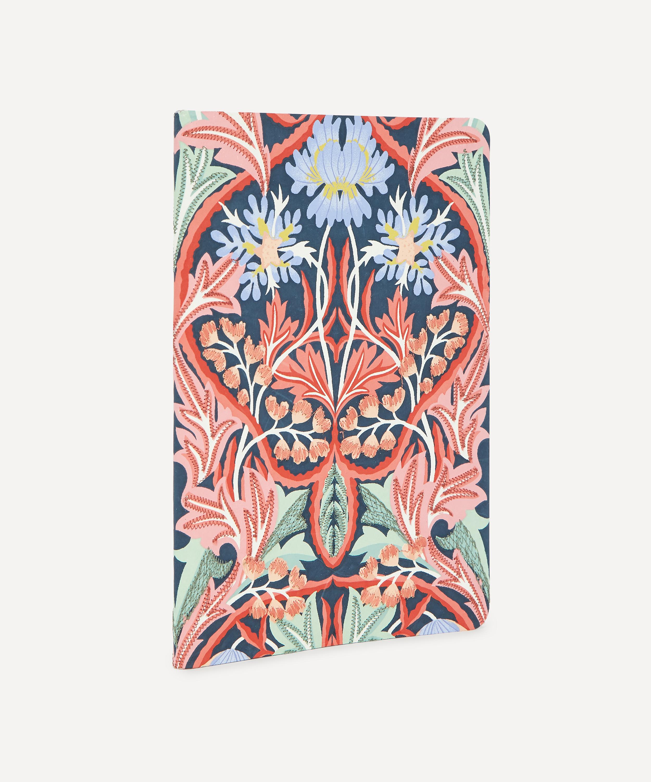 Handmade in India, this journal is decorated with intricate, textural embroidery. Inside are 100 lined pages, finished with a sewn binding. The notebook features May – drawing inspiration from a classic William Morris layout, it has been reinvented and hand-painted by our designers in the Liberty studio to feature underwater flowers and seashell buds.